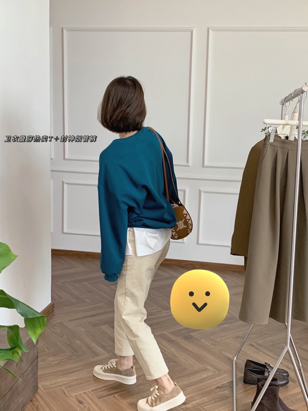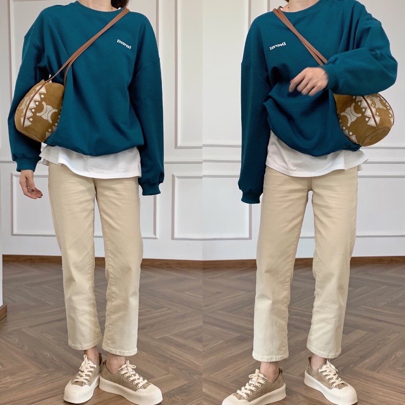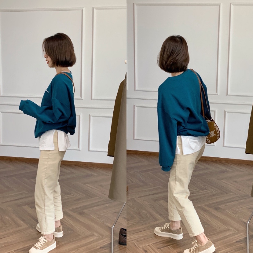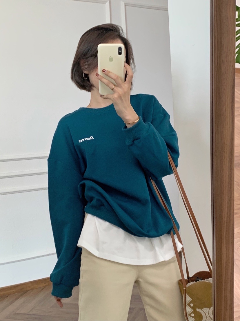 孔雀蓝复古简约字母卫衣,面料超级舒服 日常不挑人穿搭,很显白。