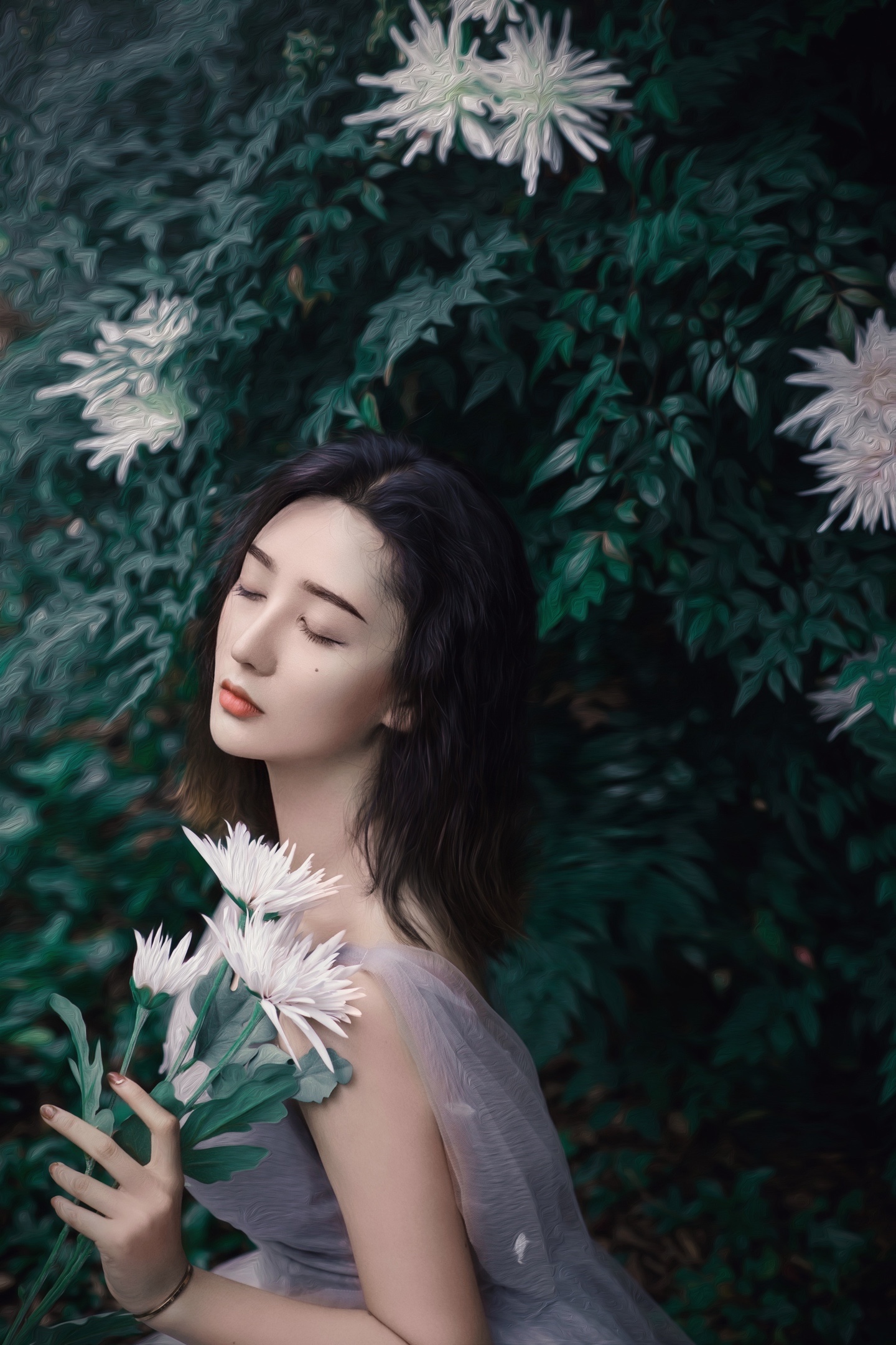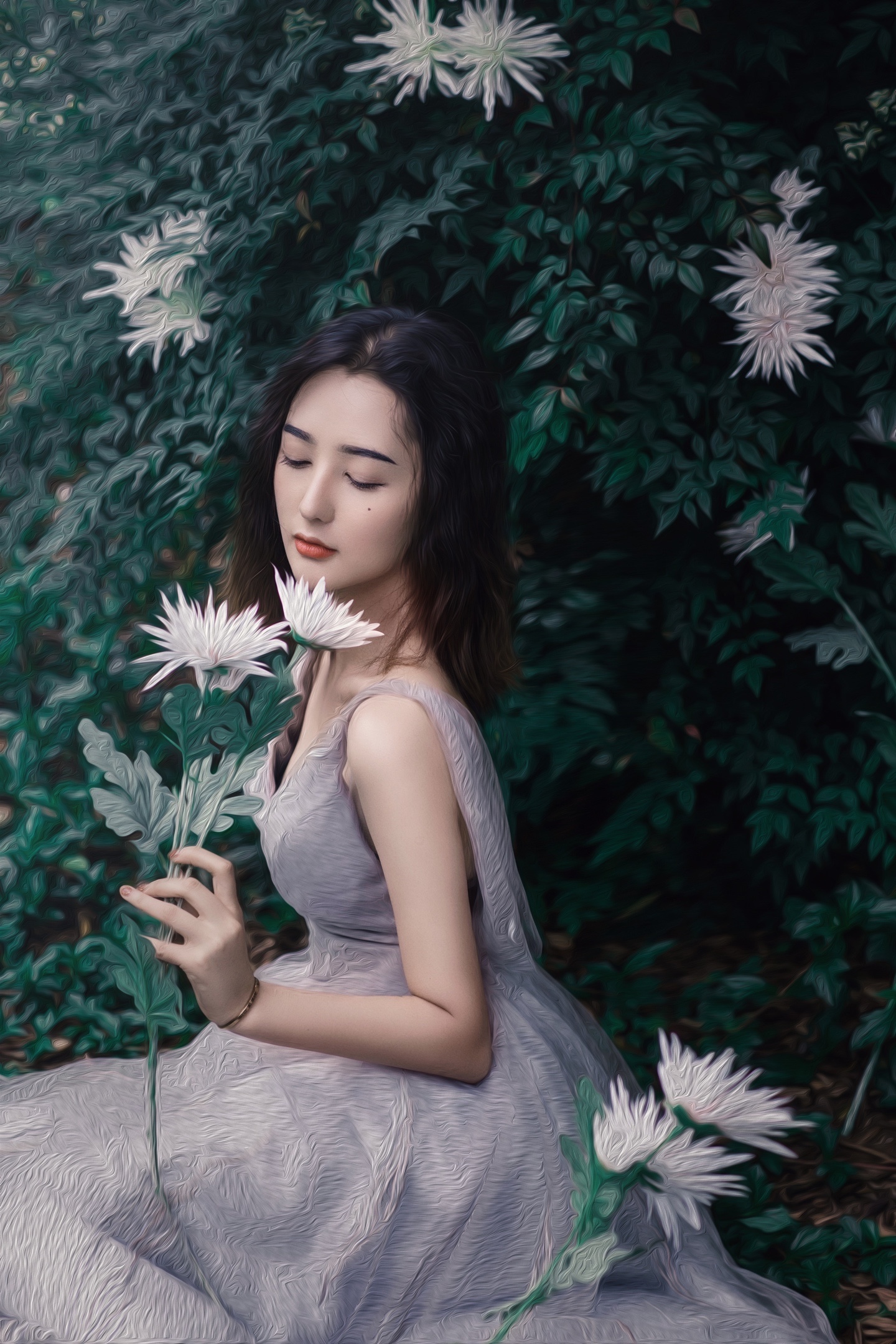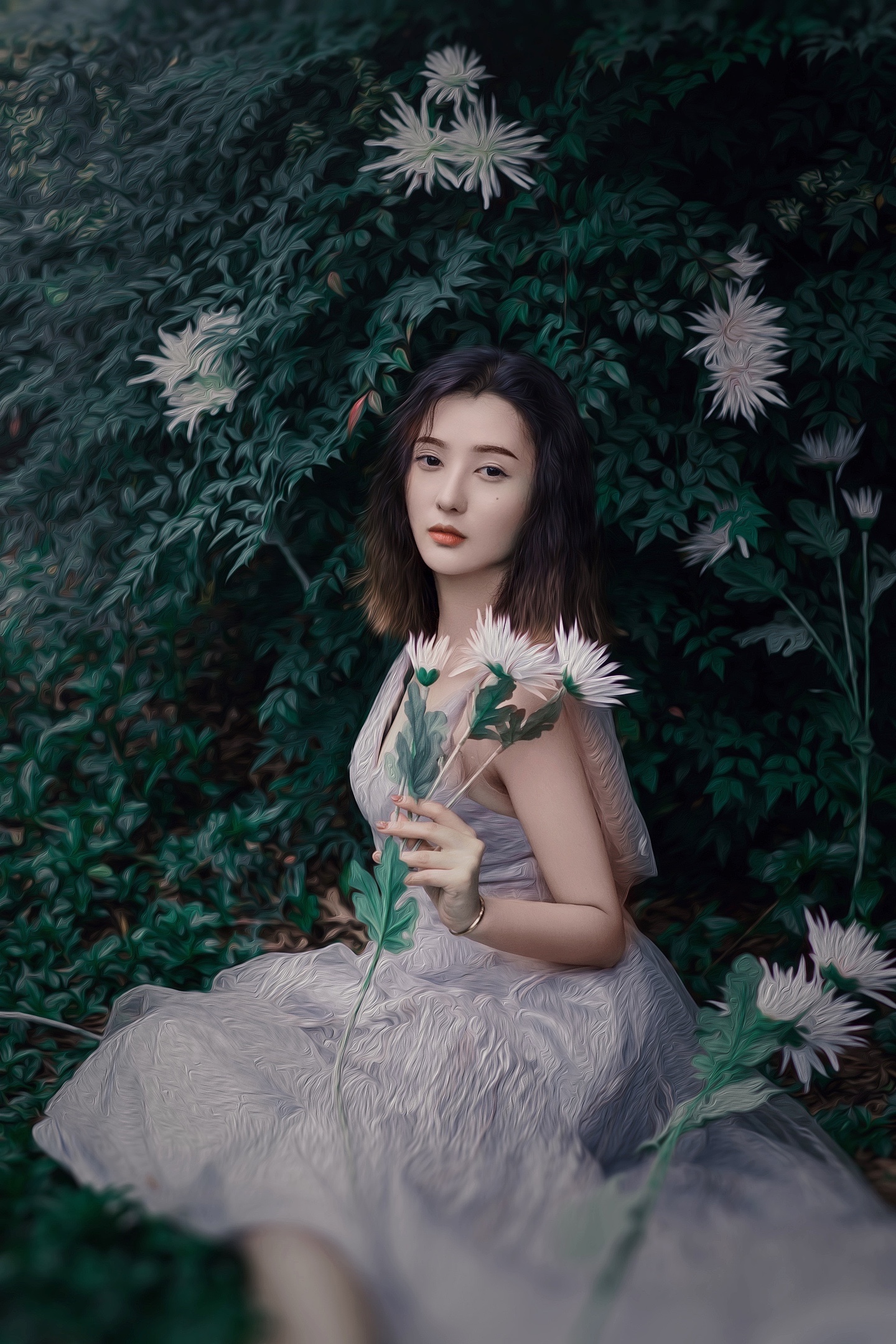 被繁花绿叶簇拥的森系少女🍃