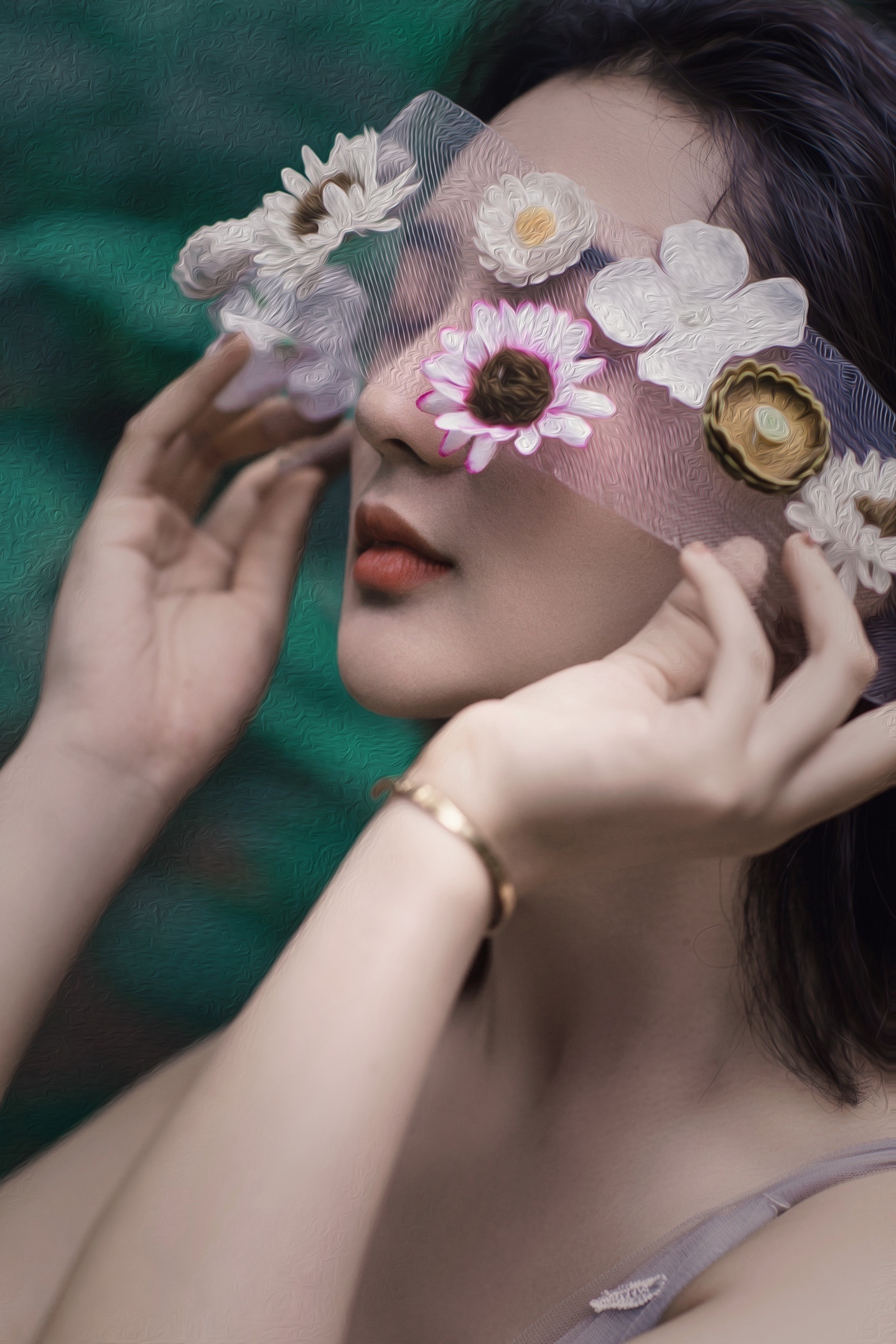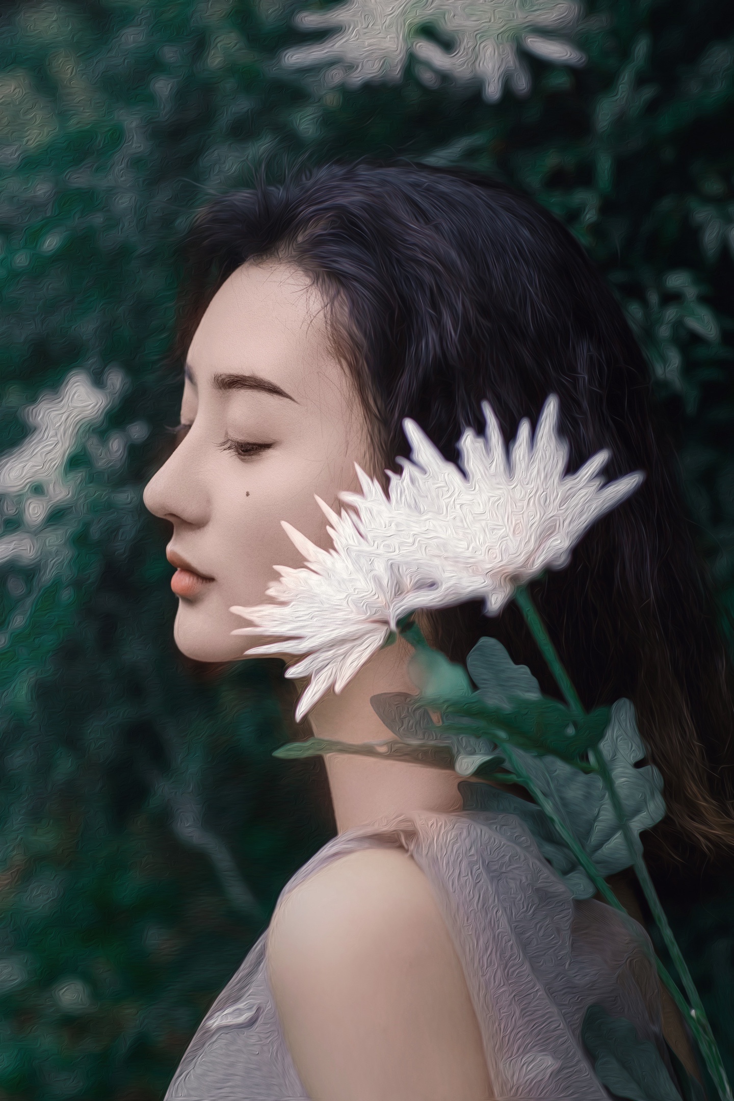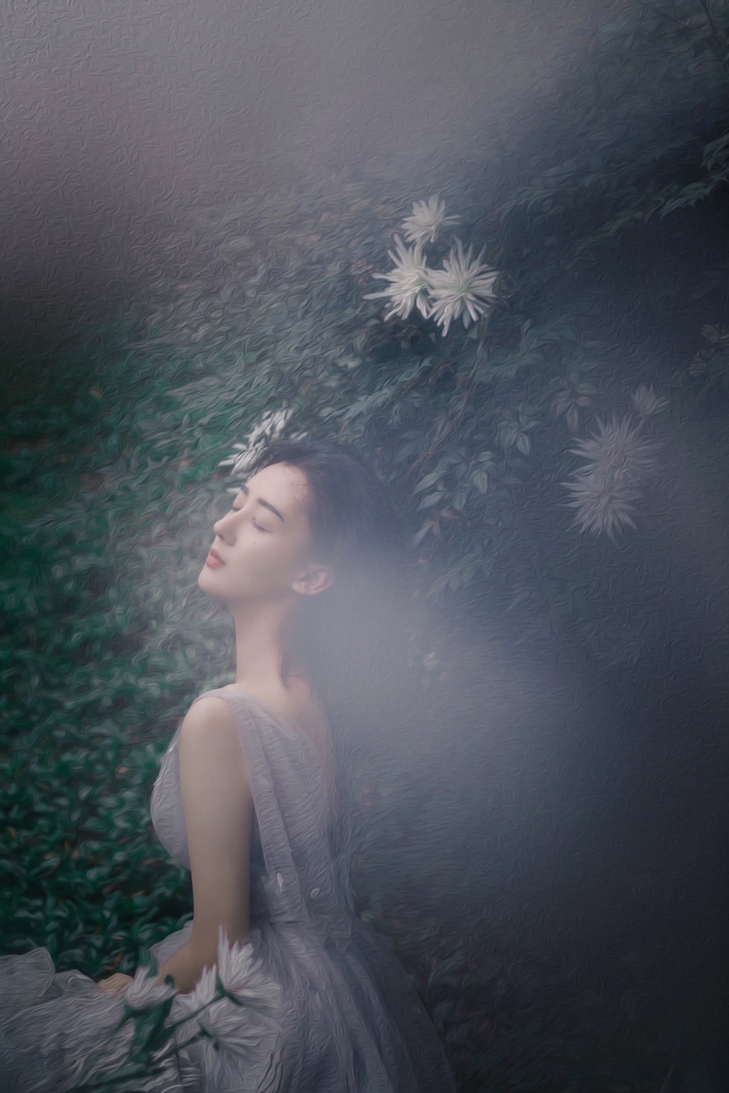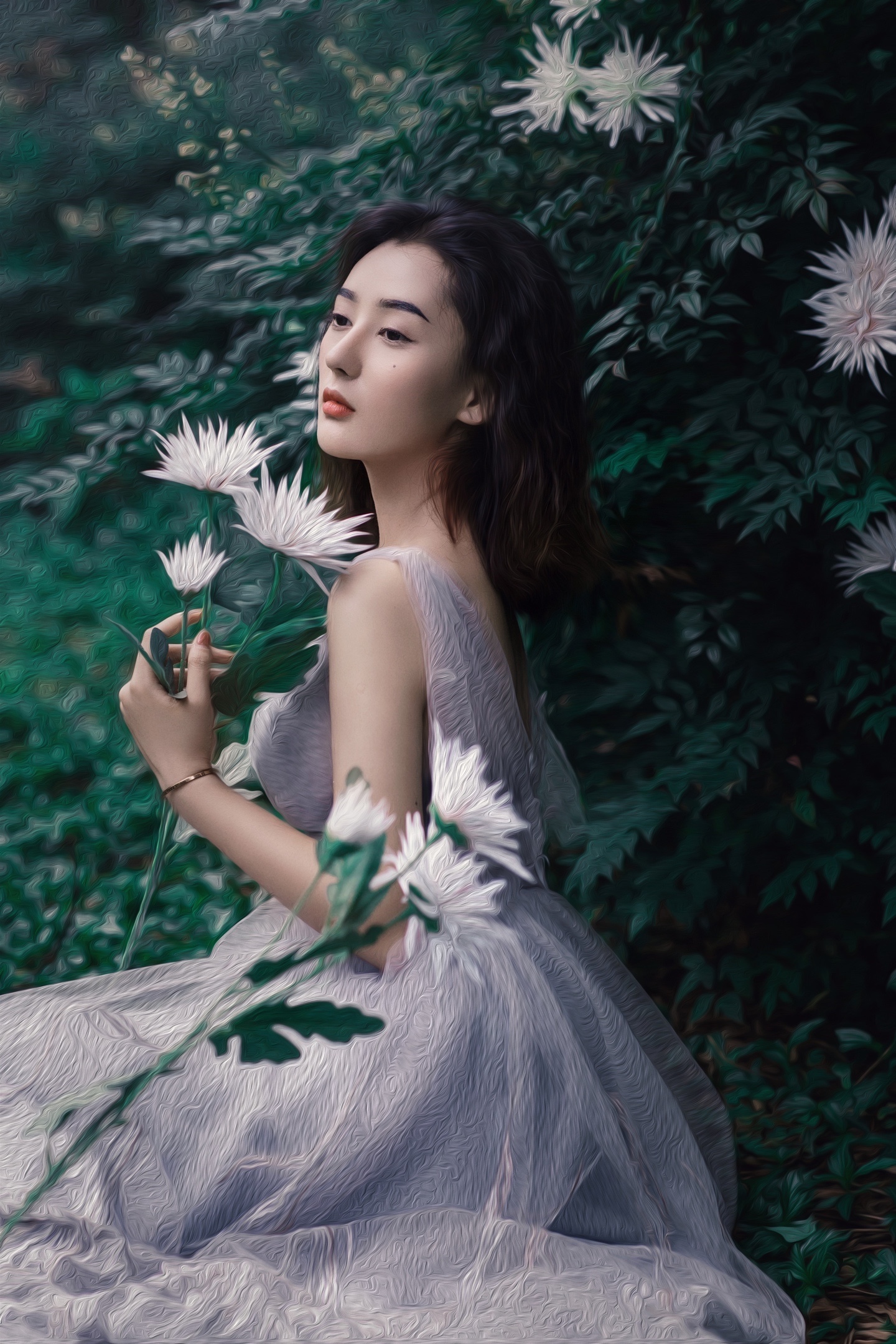 被繁花绿叶簇拥的森系少女🍃