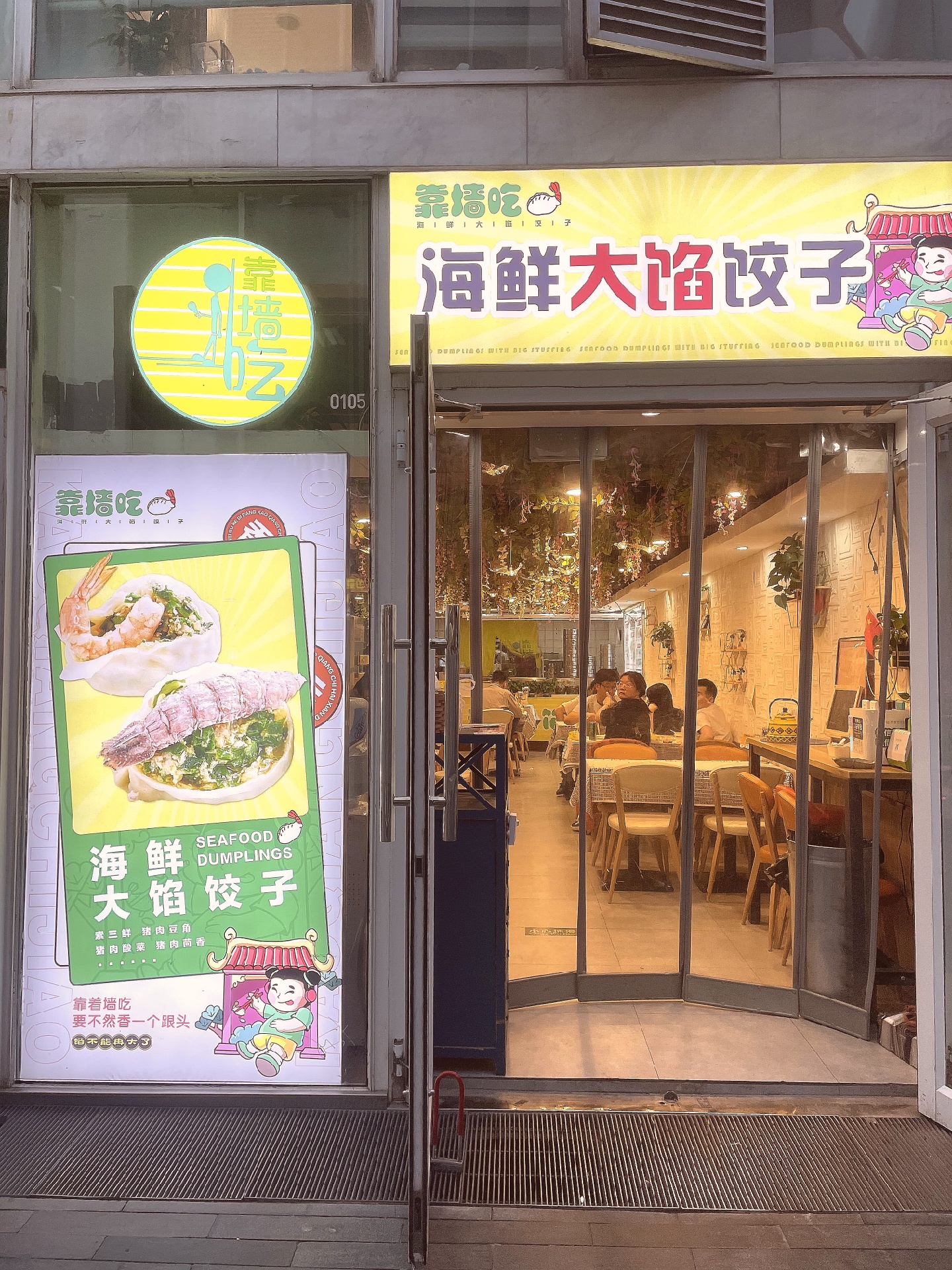 🏘店名:靠墙吃·海鲜大馅饺子(国贸店)