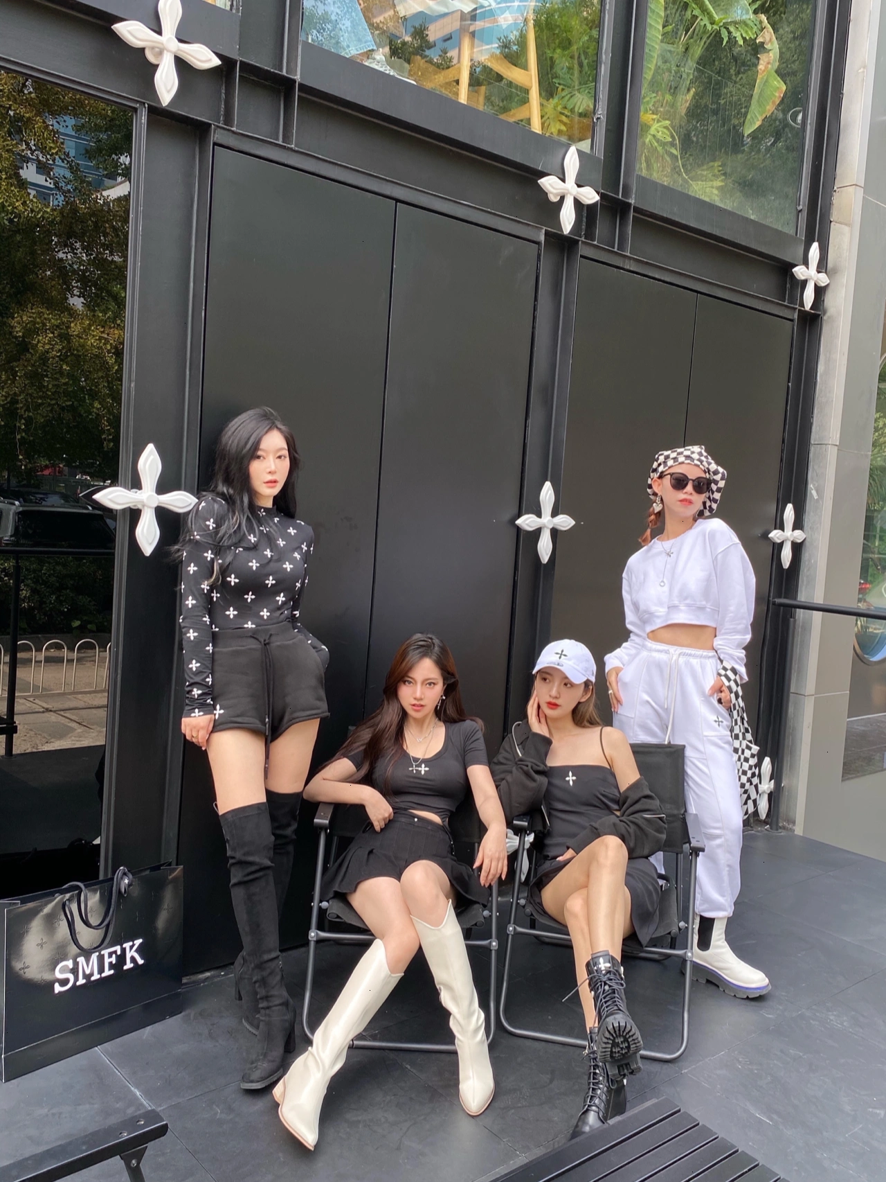就在三里屯机电院里整个打眼的狠,店铺外观以“花园”做为灵感整体黑色加上以玉兰花为灵感,创作的十字花形成的矩形图案让你路过不会错过.SMFK做为国货之光,简直是辣妹集合地一进去都是好看的小姐姐,连店员都很好看店铺里还分有美妆区、服装区、饰品区、鞋袜区应有尽有,我这次还购入了一双过膝靴穿上腿长两米,推荐大家去试试,跟高合适还有拉长腿部效果,喜欢喜欢SMFK的姐妹们快冲.