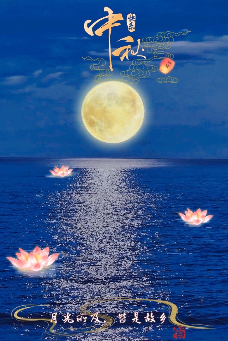 月亮风景|中秋节大月亮配方|中国潮色青花蓝|莲花灯古风元素使-美图社区-美图秀秀