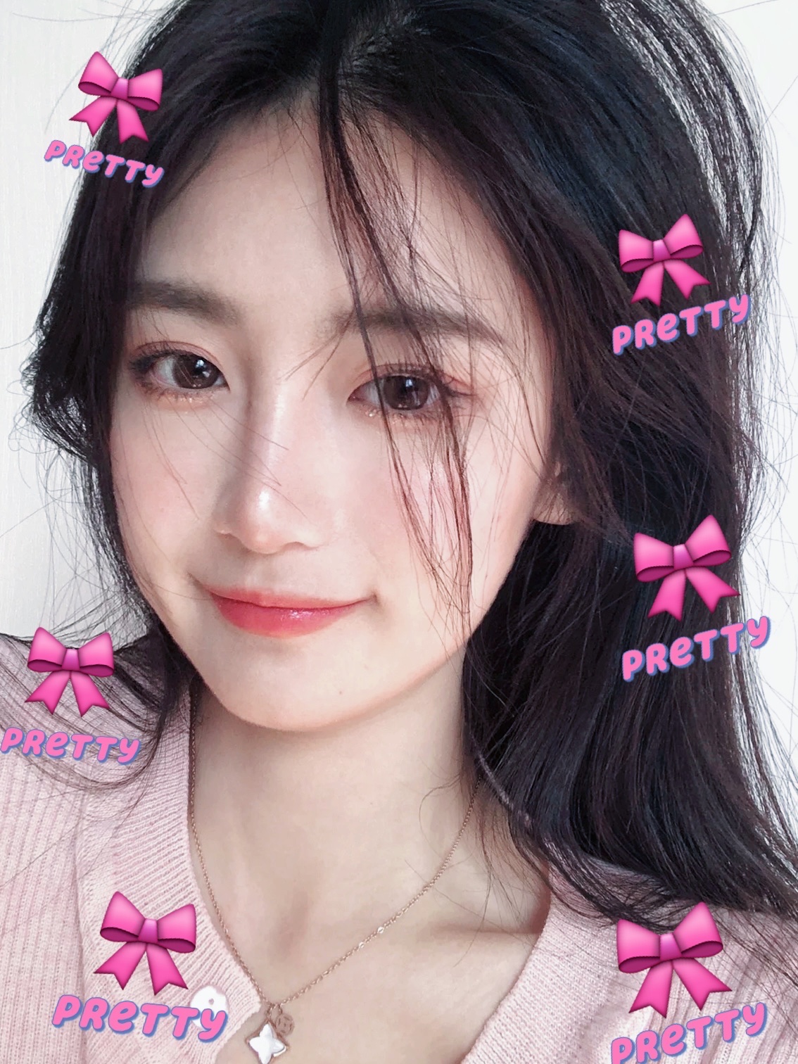 emoji粉色蝴蝶结女生自拍图片来自小九学妹侵删-美图社区-美图秀秀