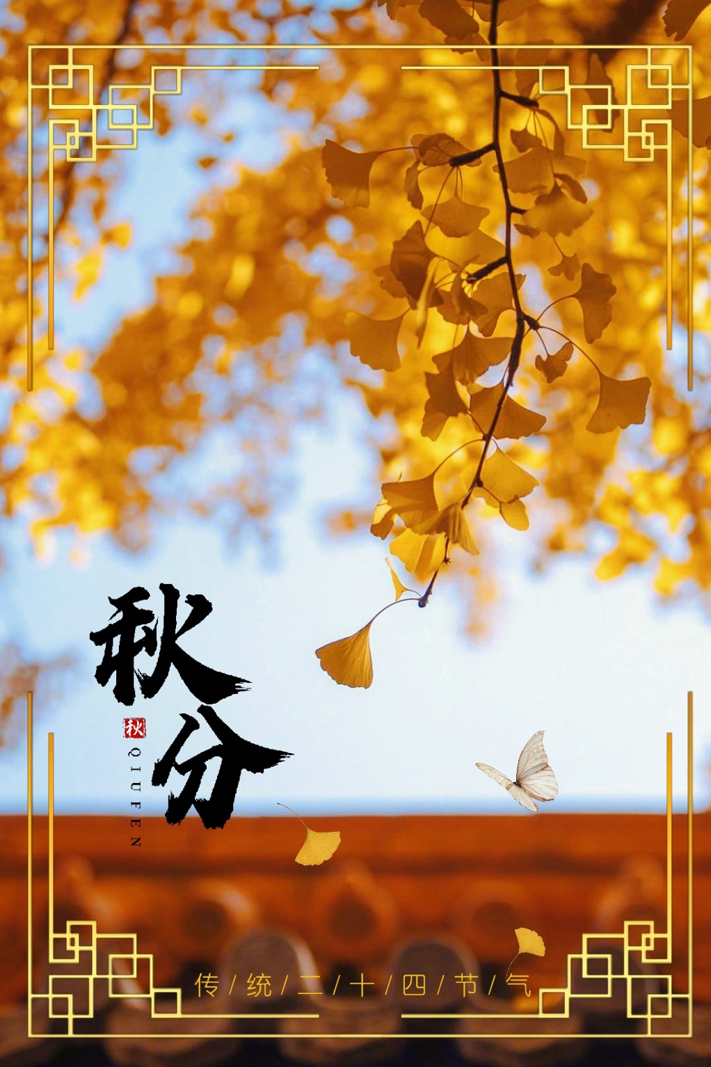 秋分美色/中国潮色藤枝黄传统节气红墙银杏暖色调国风边框[建议-美图社区-美图秀秀
