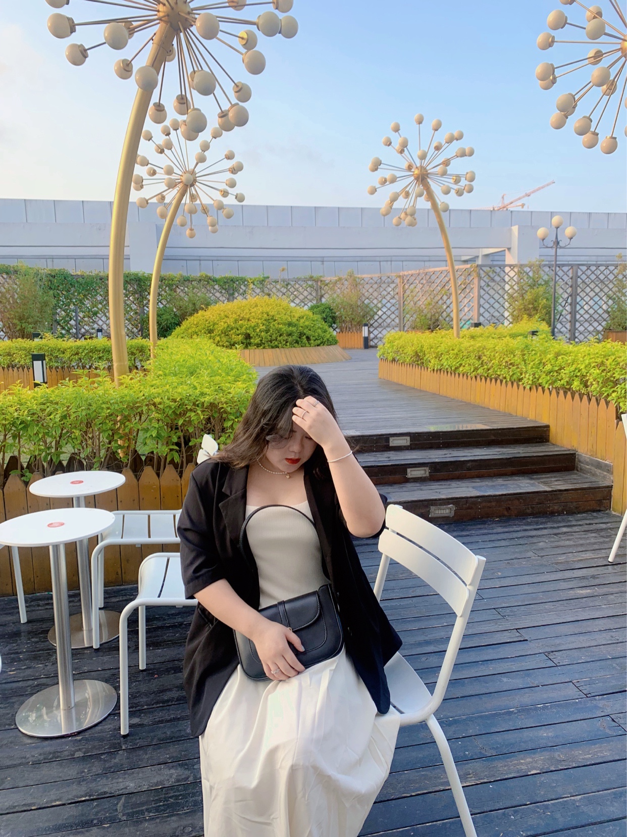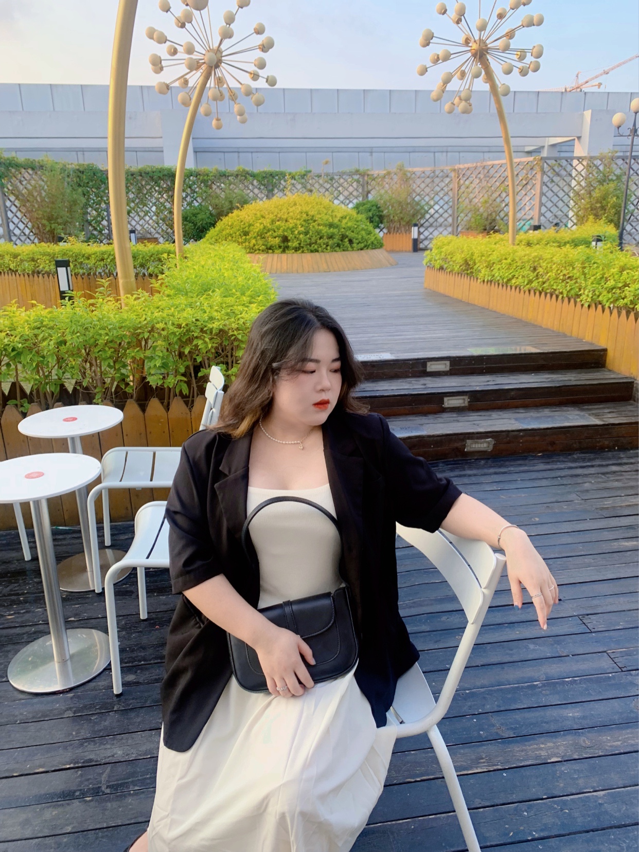 白色吊带连衣裙➕黑色西装外套