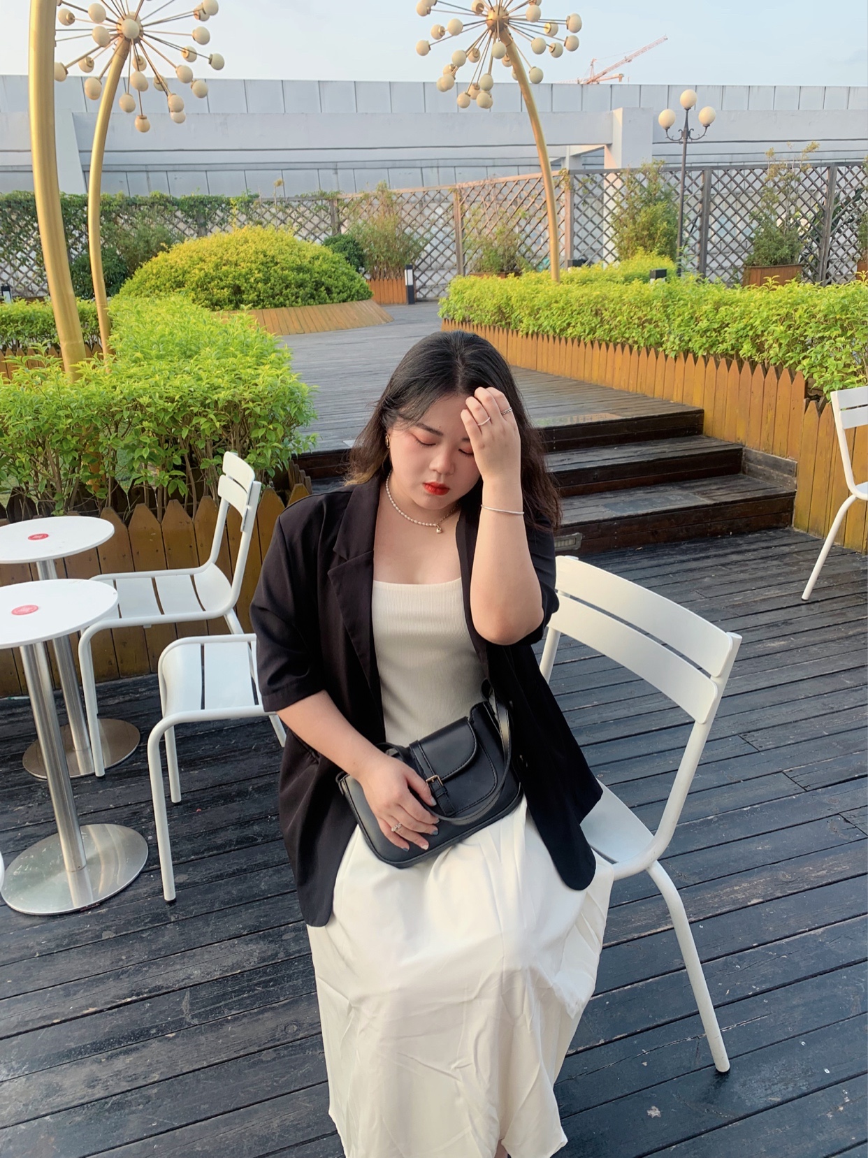 白色连衣裙真的好显瘦,好有气质,搭上黑色西装外套简直就是绝绝子!