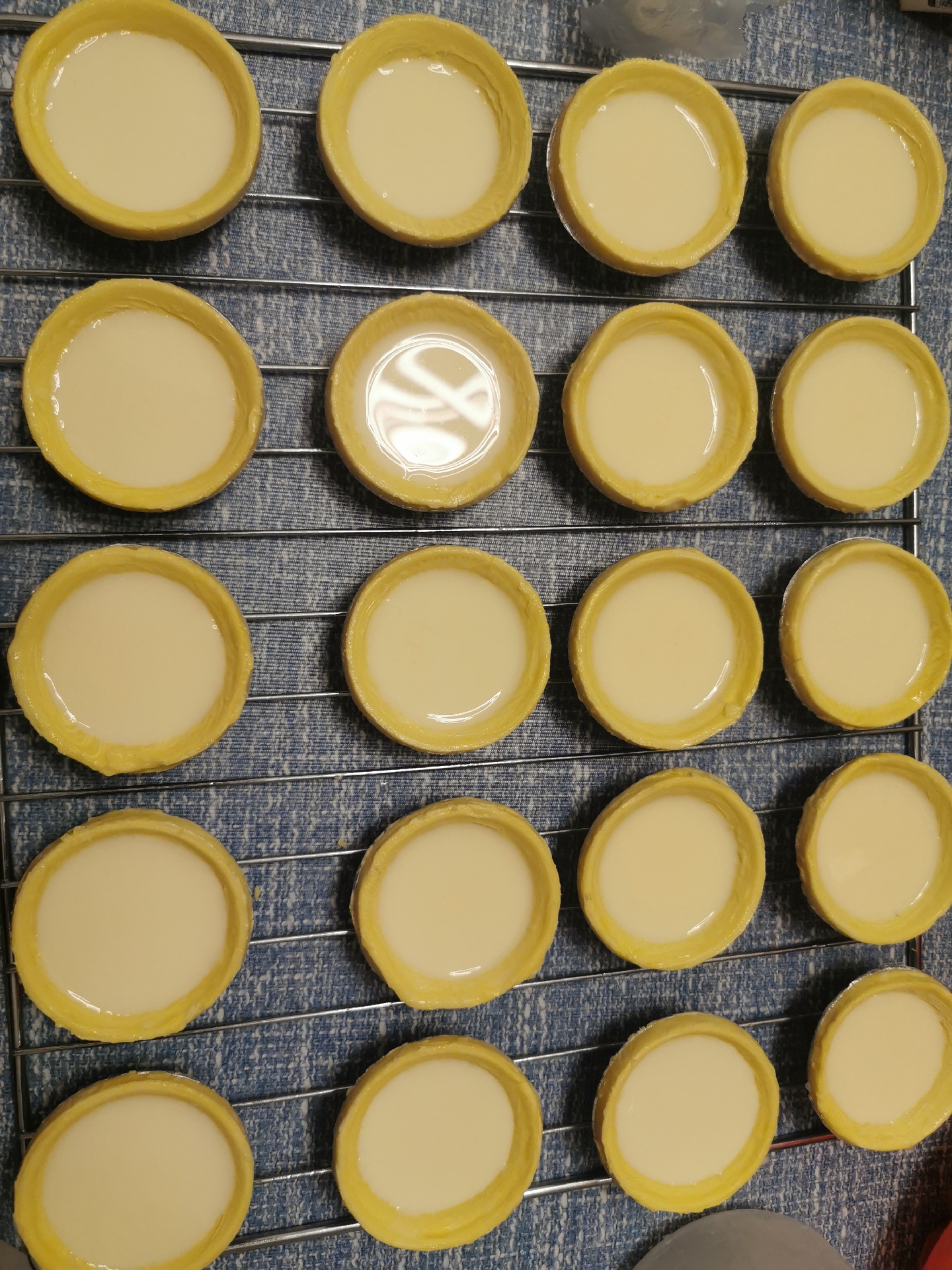 将蛋液倒入蛋挞皮中,八分满即可,我可以做20个,因为很小,分两次烤