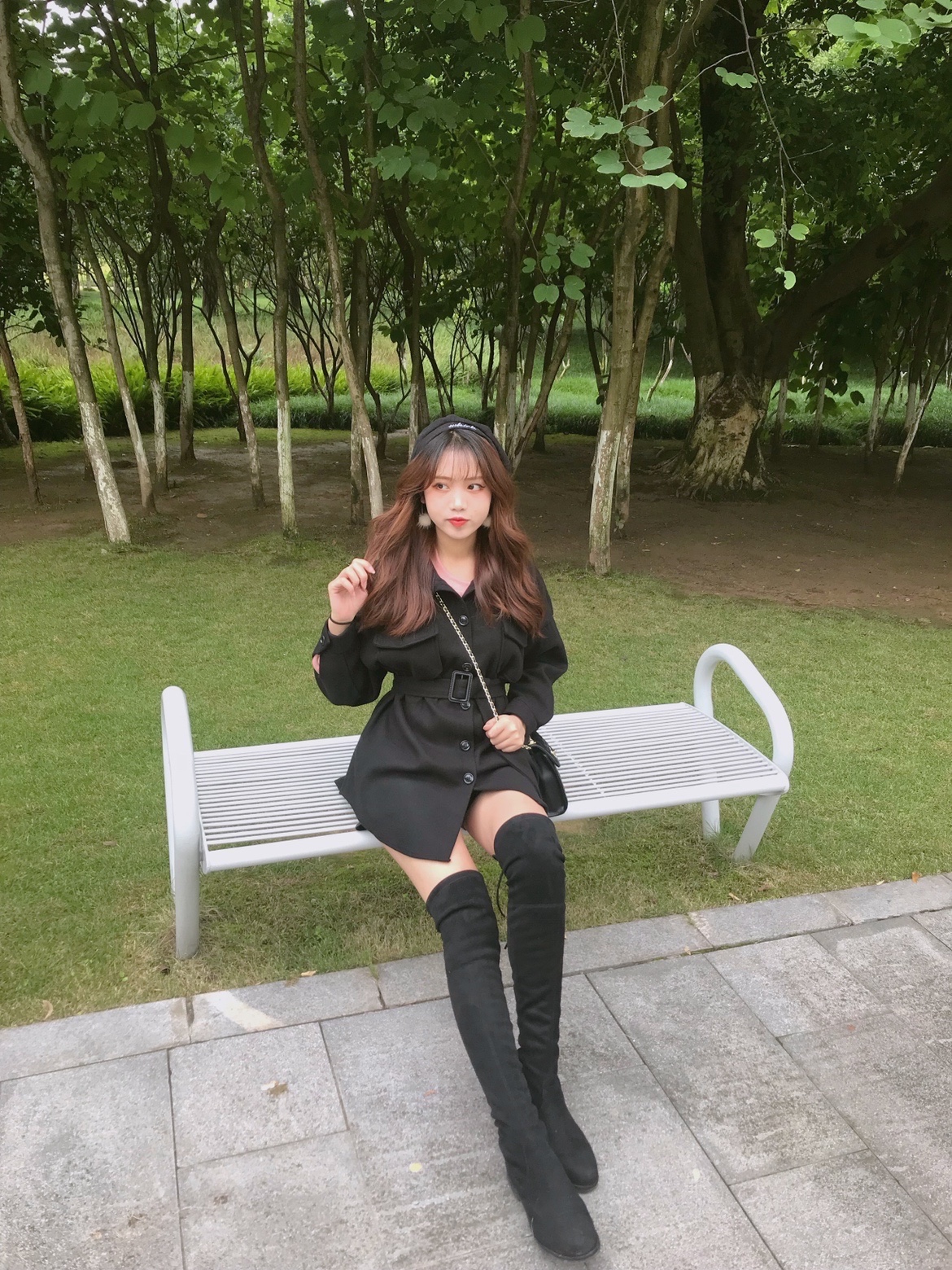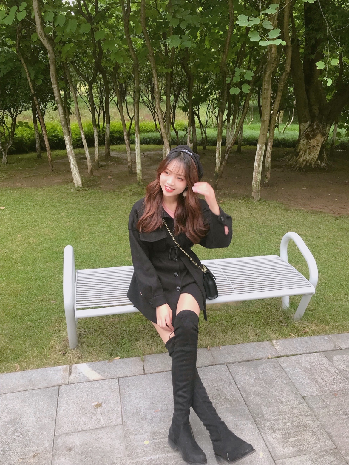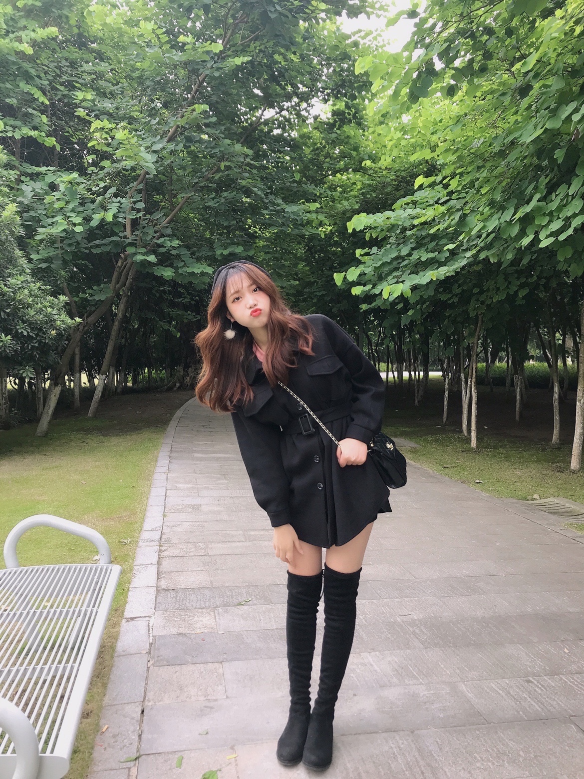 165cm49kg黑色呢子短款大衣➕黑色过膝长靴这套穿搭非常-美图社区-美图秀秀