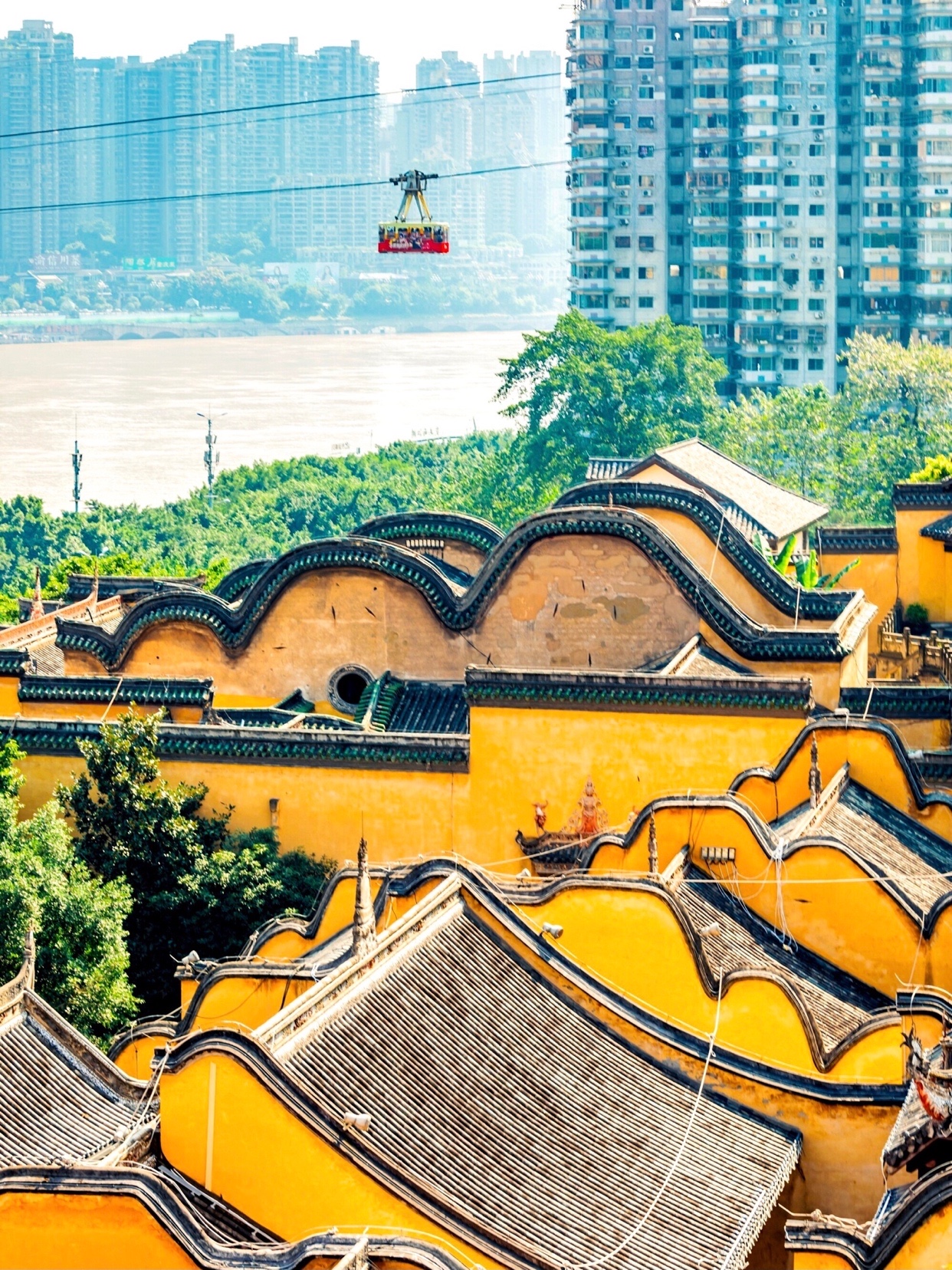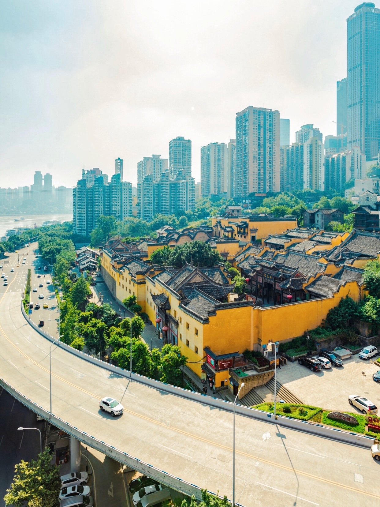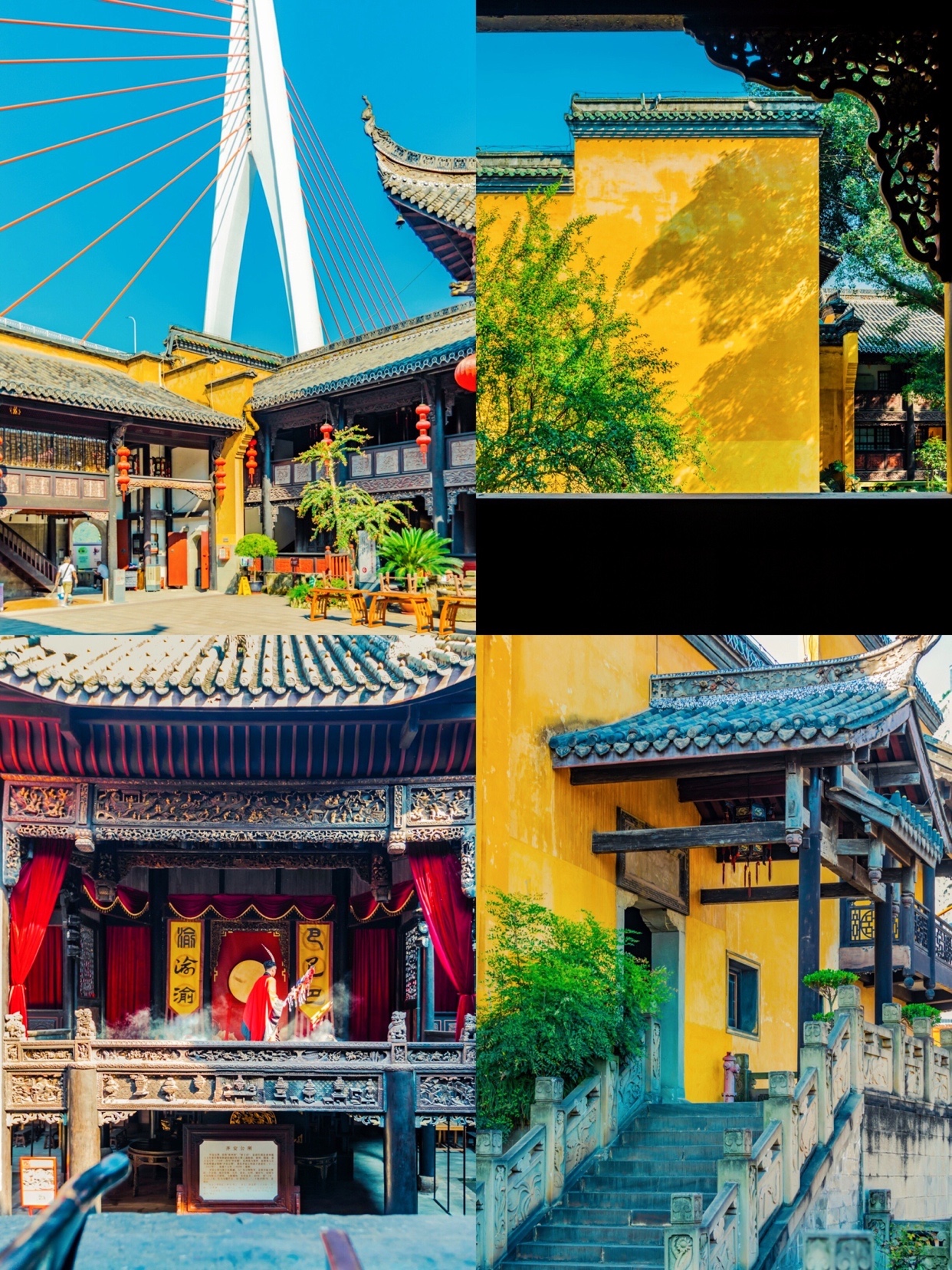 湖广会馆是明黄色色系,黄墙灰瓦,依山而建🌄,不论是在湖广会馆眺望东水门大桥,或是在东水门大桥上俯瞰湖广会馆都非常好看!🌉