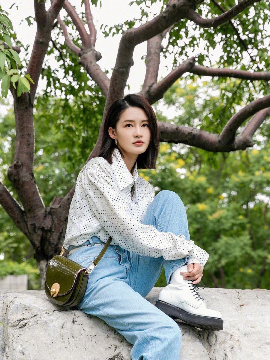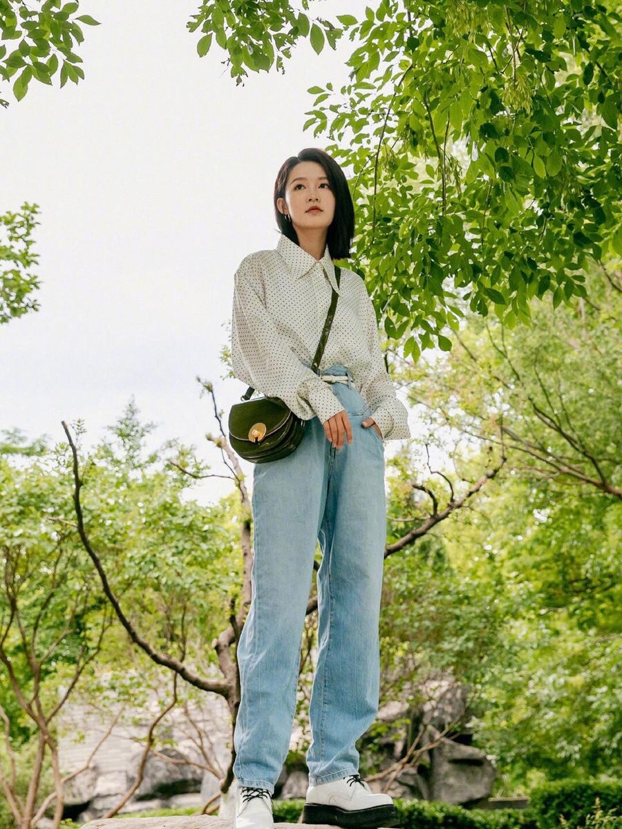衬衫的复古穿搭,来看李沁的这样搭配。