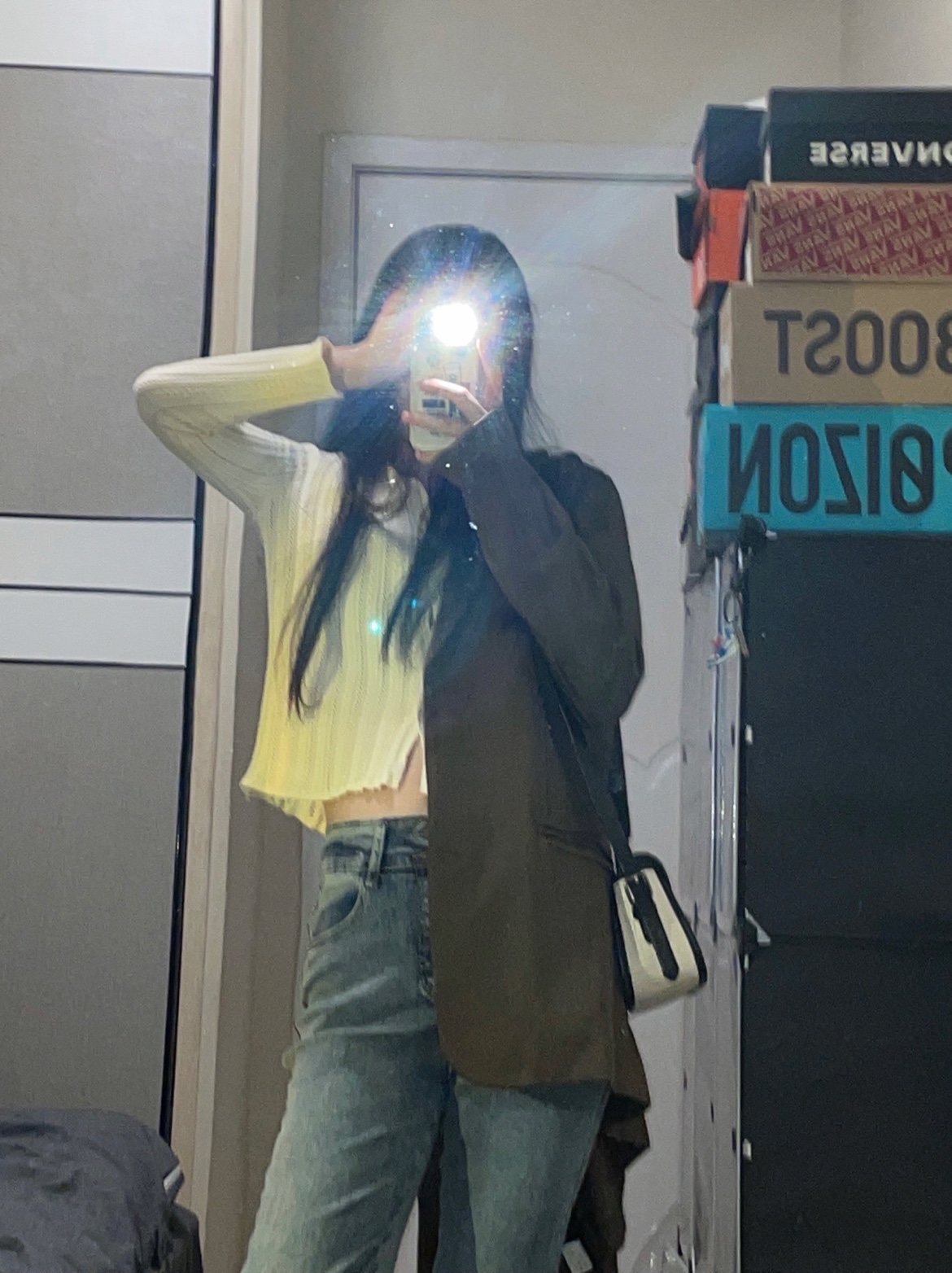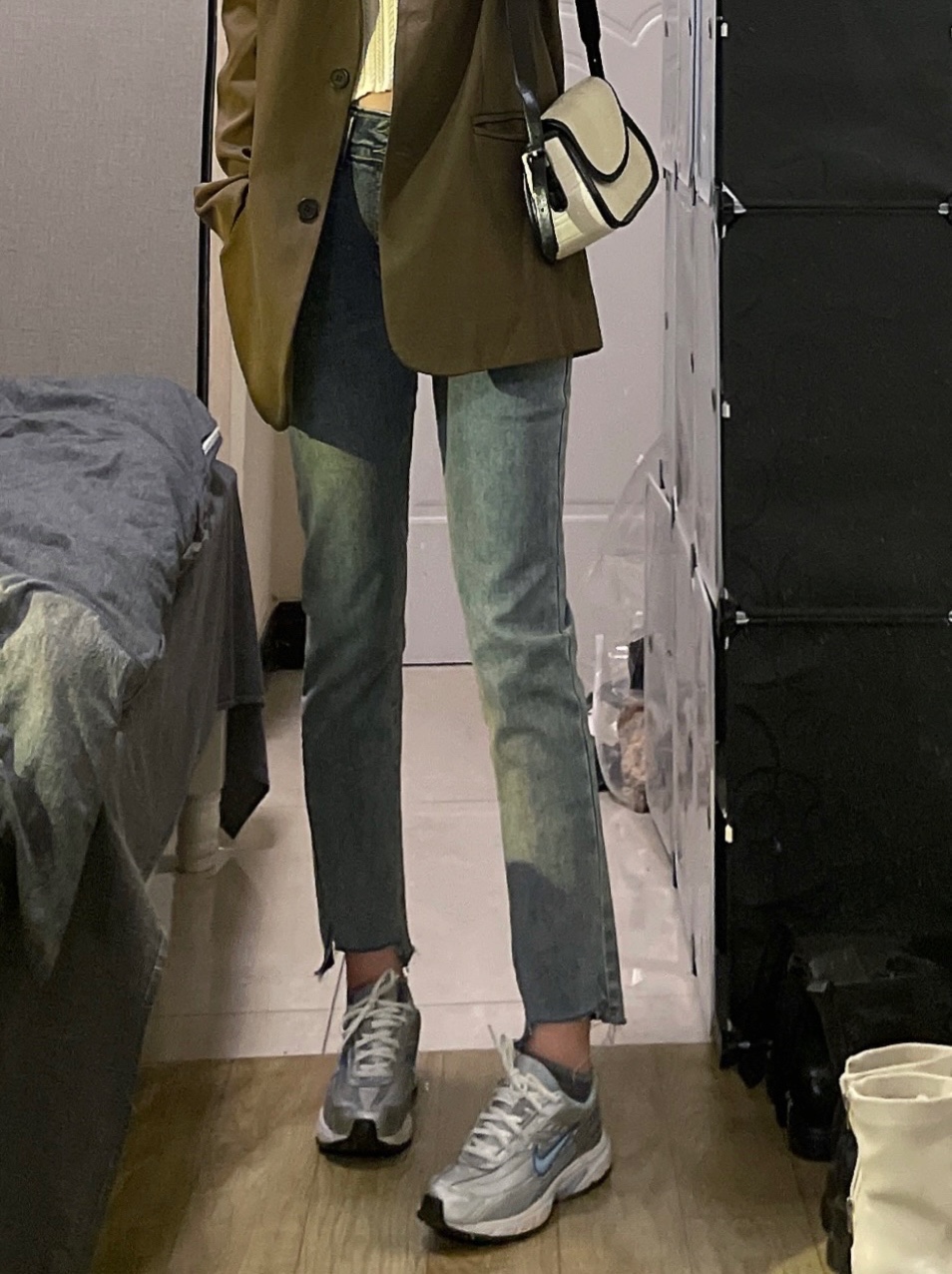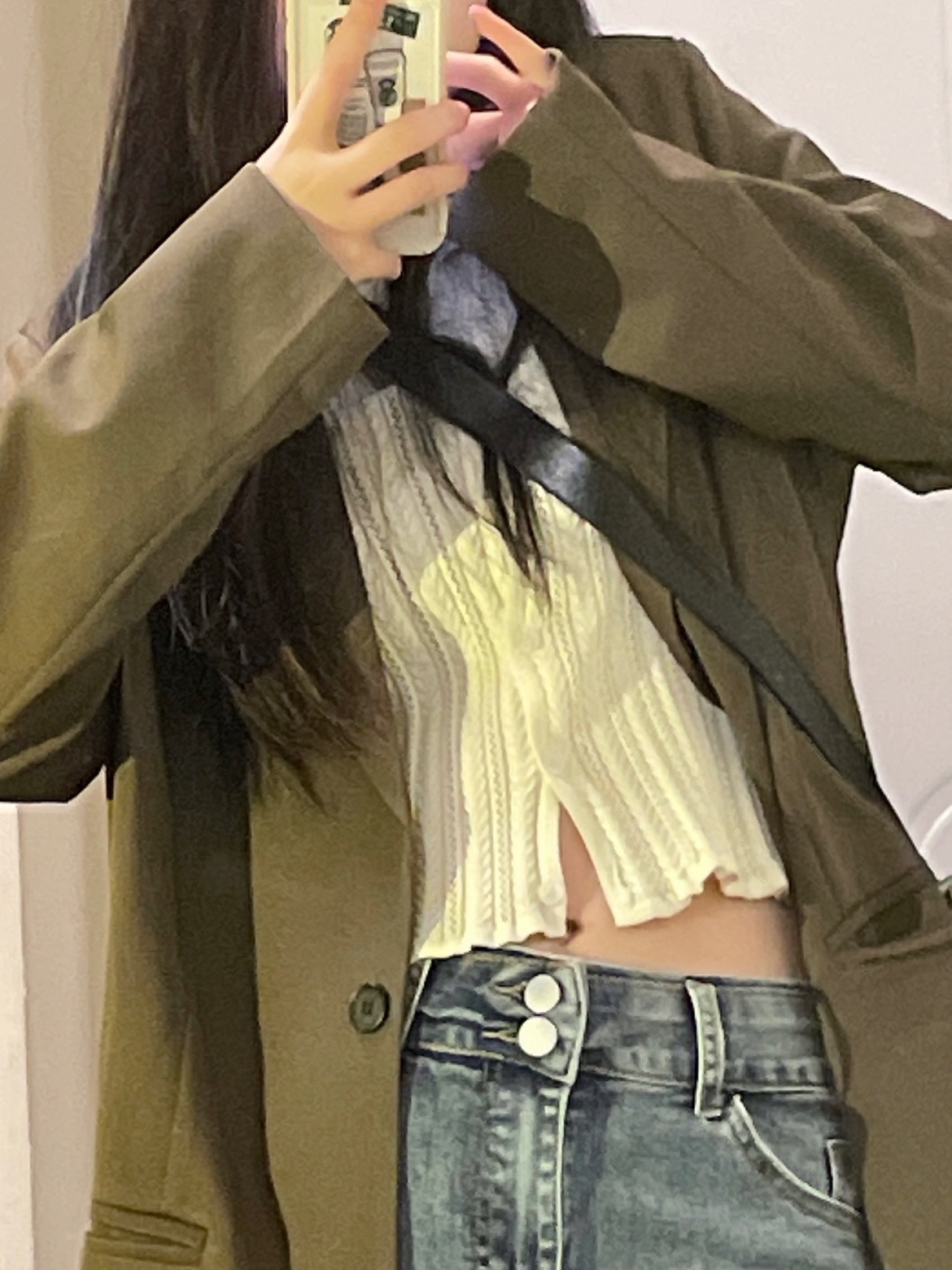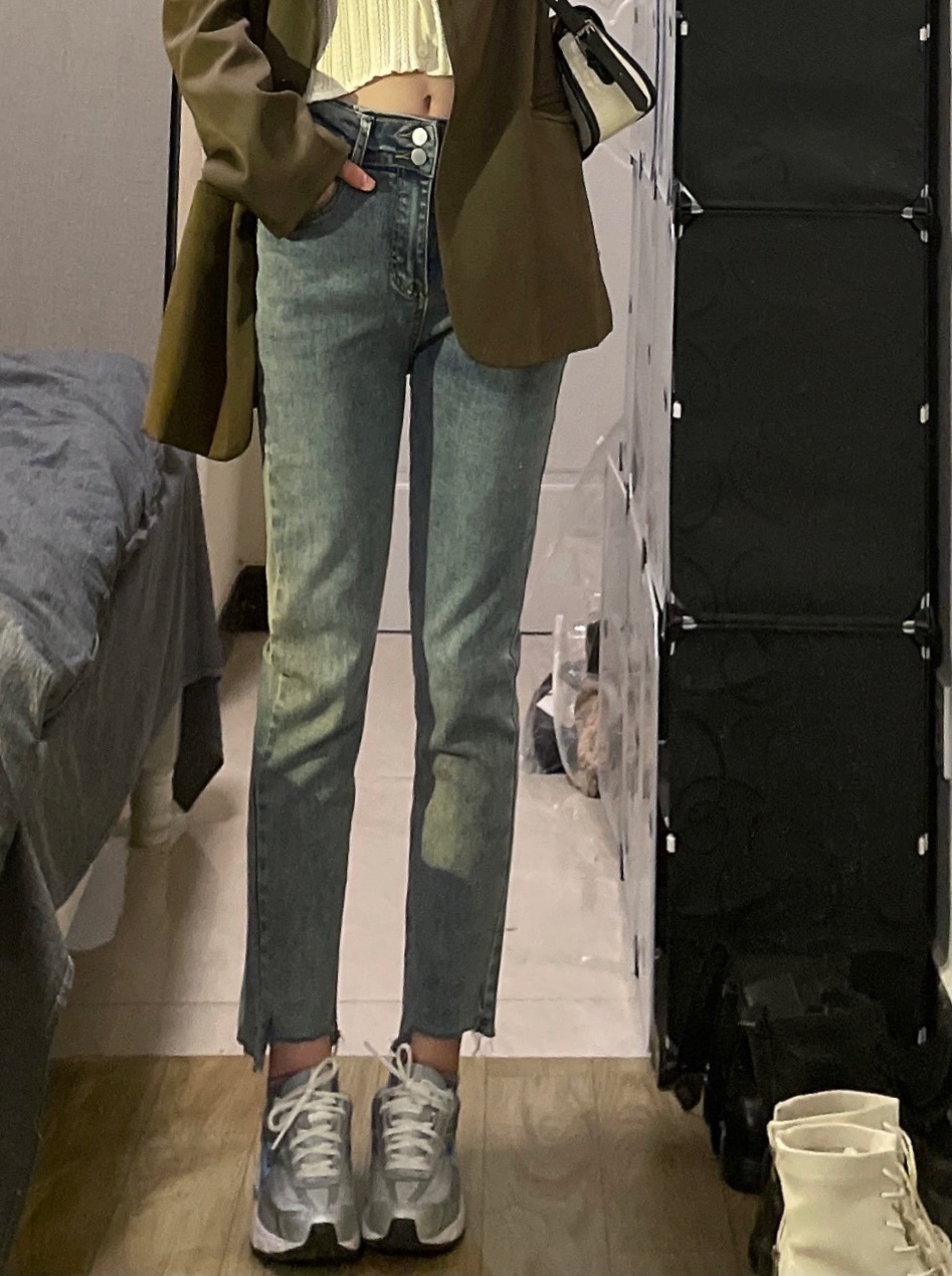 看韩剧👀女主们都是用来搭配西装/风衣之类的外套 果然好看🦋还有点复古的感觉!搭配卫衣穿也很不戳~下次拍一组🌈裤子有弹力上身非常舒服 面料不会生硬!!!很喜欢这种颜色的牛仔裤 颜色不浅不深 超🉑超百搭的还很显瘦🔷