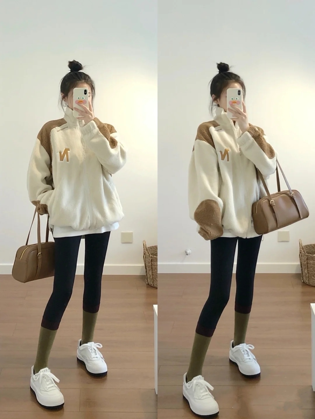 适合小个子女生的鲨鱼裤穿搭,冬季加大衣即可。