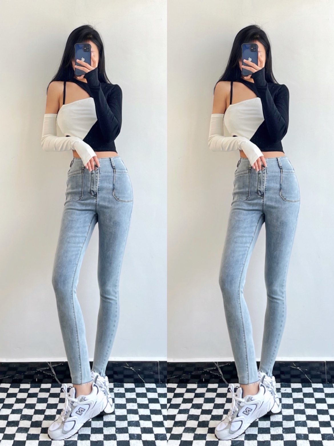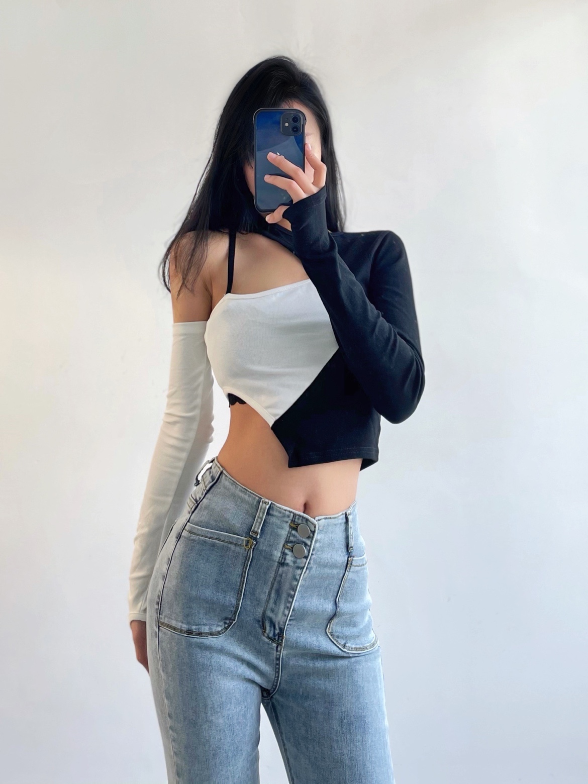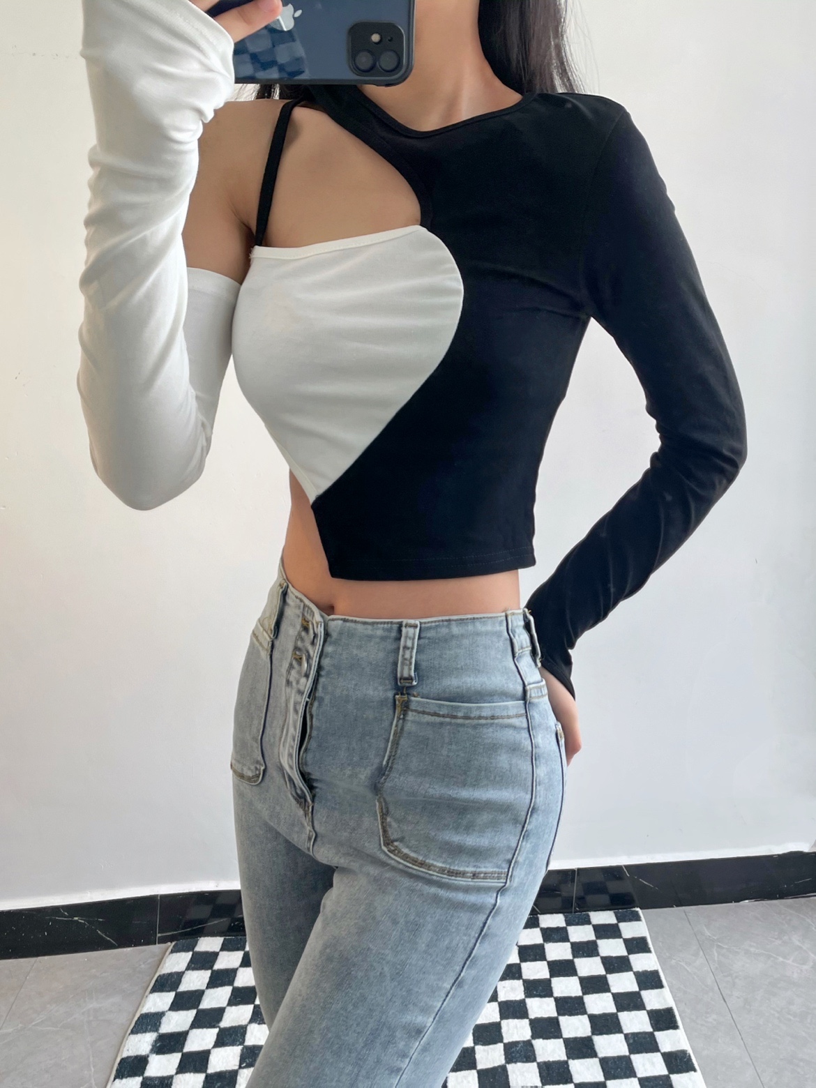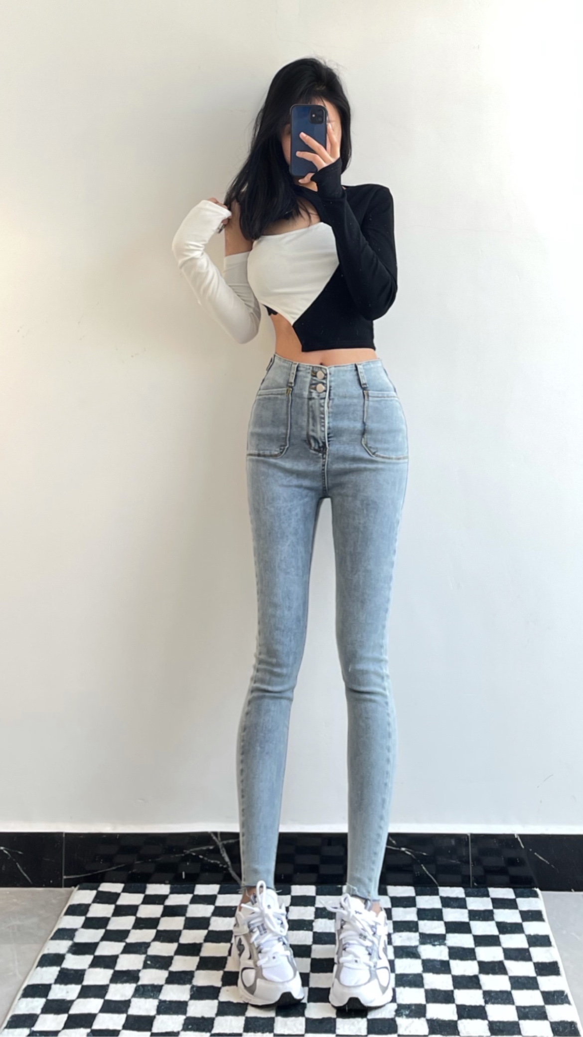 今天是辣妹穿搭,短款的上衣搭配紧身的牛仔裤真的绝了,巨显身材,好看好看!