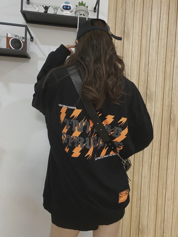 宽松的版型遮住粗手臂和大肚腩,秋天必备穿搭~