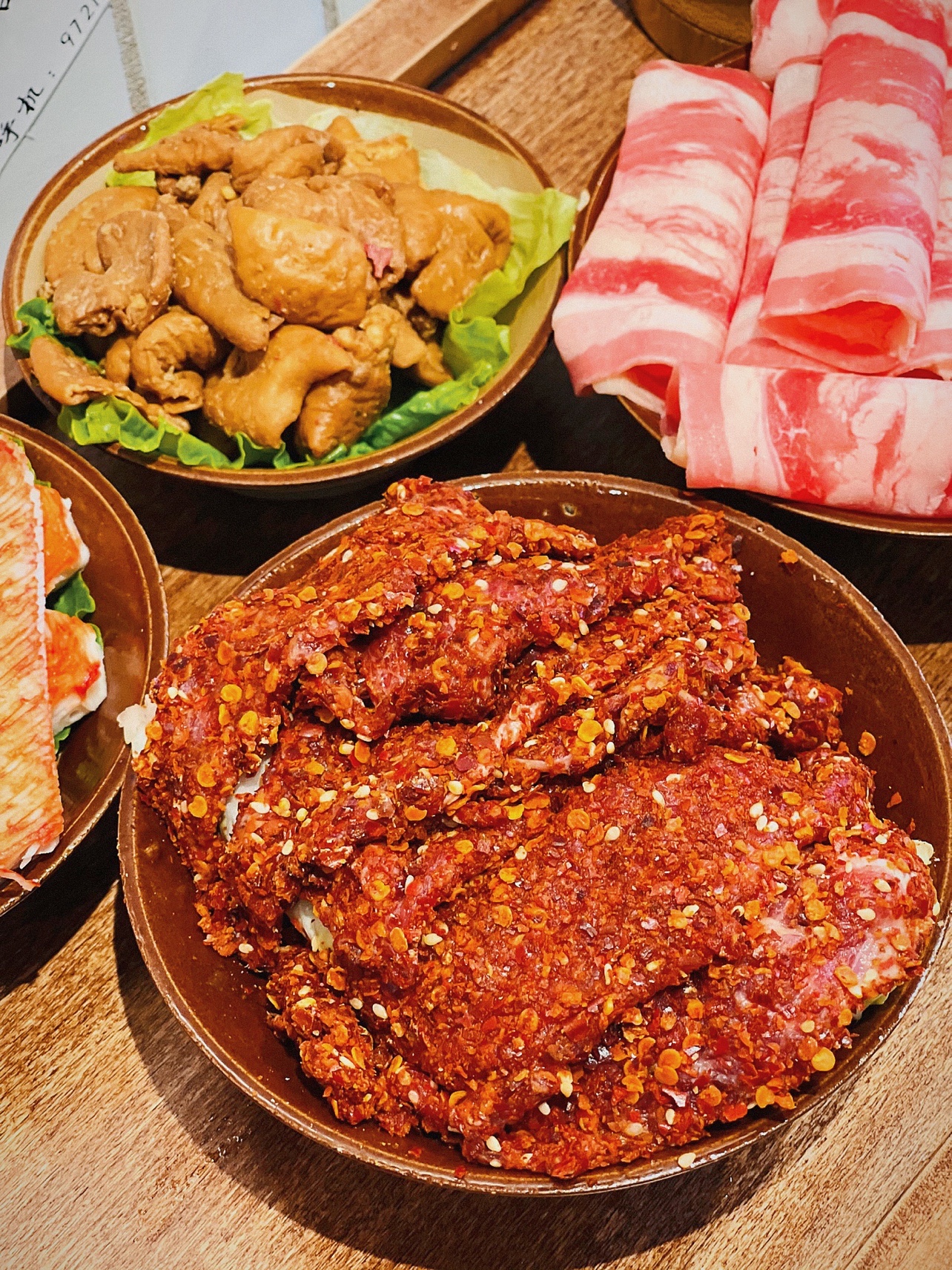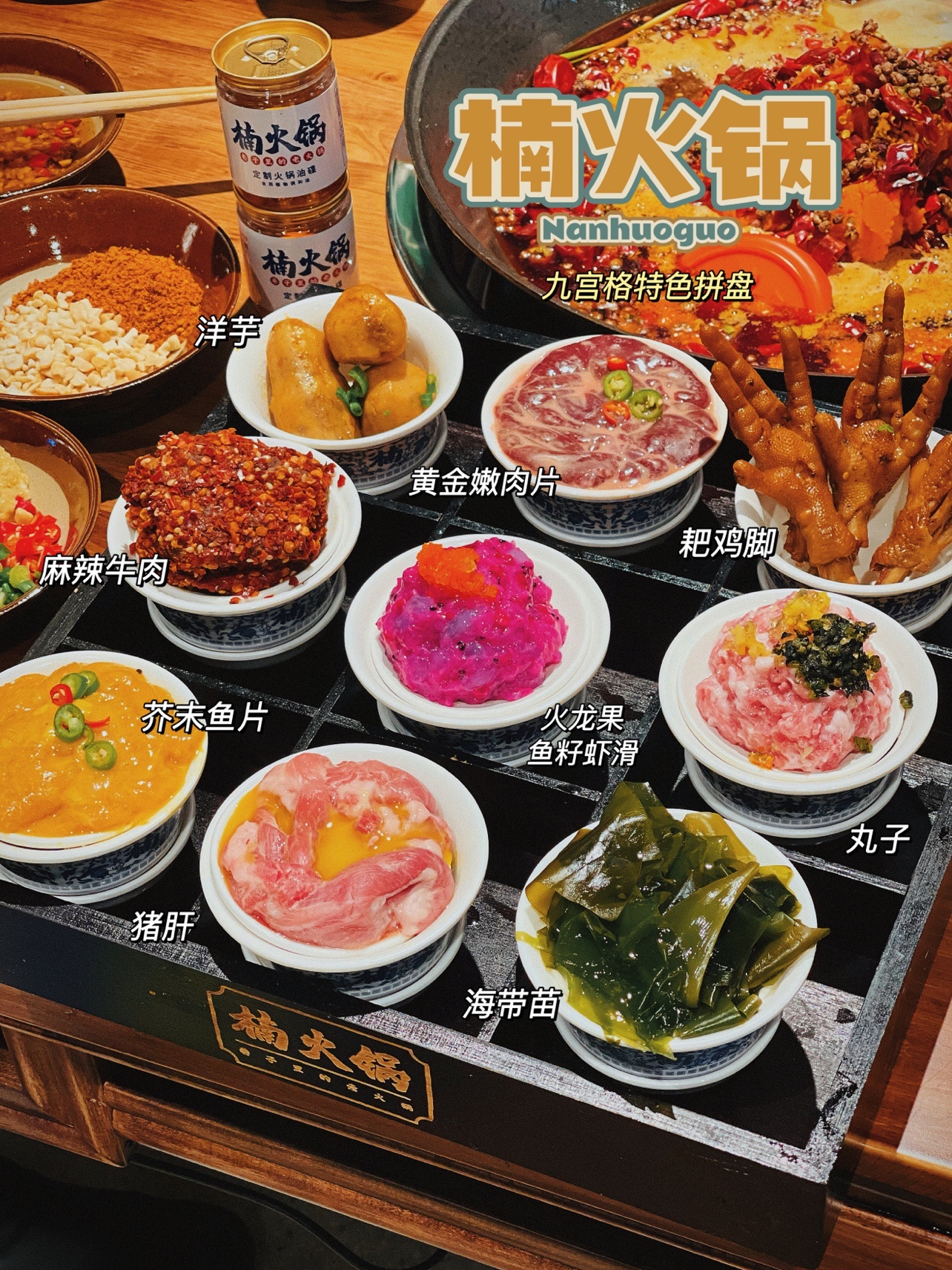 ✨【九宫格特色拼盘🌶️】👉一次可以吃到嫩滑软糯の耙鸡爪🐔&滑嫩Q弹の火龙果鱼籽虾滑🦐&.鲜嫩多汁的嫩牛肉🥩&软糯入味の洋芋等九种菜品,很满足哟