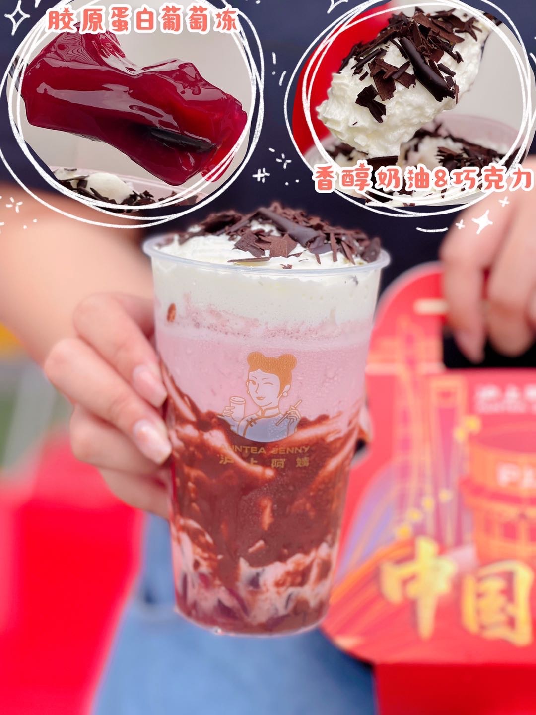 沪上阿姨新出了“中国有厘正当红”系列的新品,不得不说真是太会了!作为一个爱国小青年,这我必须支持啊~