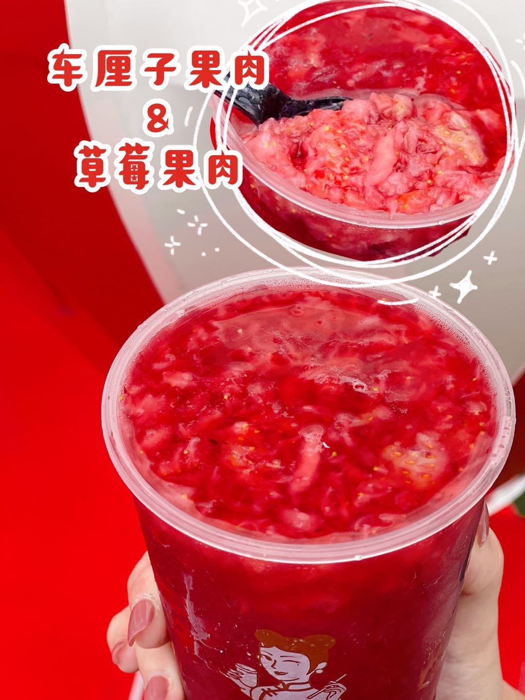 我巨爱这杯啊啊啊啊️用的是车厘子果肉和精选优质草莓果肉吃起来大块又新鲜,分量给的也超多!还有QQ弹弹的胶原蛋白葡萄冻,爽滑的葡萄冻增加口感层次,酸酸甜甜的,真滴大满足‼️