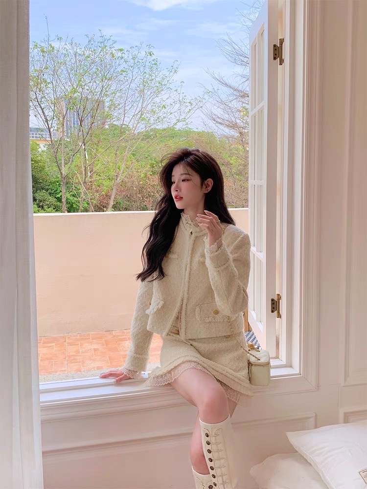 小香风外套,苏丽世蕾丝花边编织香风外套 兔毛+蕾丝嗲到不行的一整套,喜欢这种风格的小姐姐建议你们直接入,真的很好看,而且面料很柔软,非常舒服很贵气。