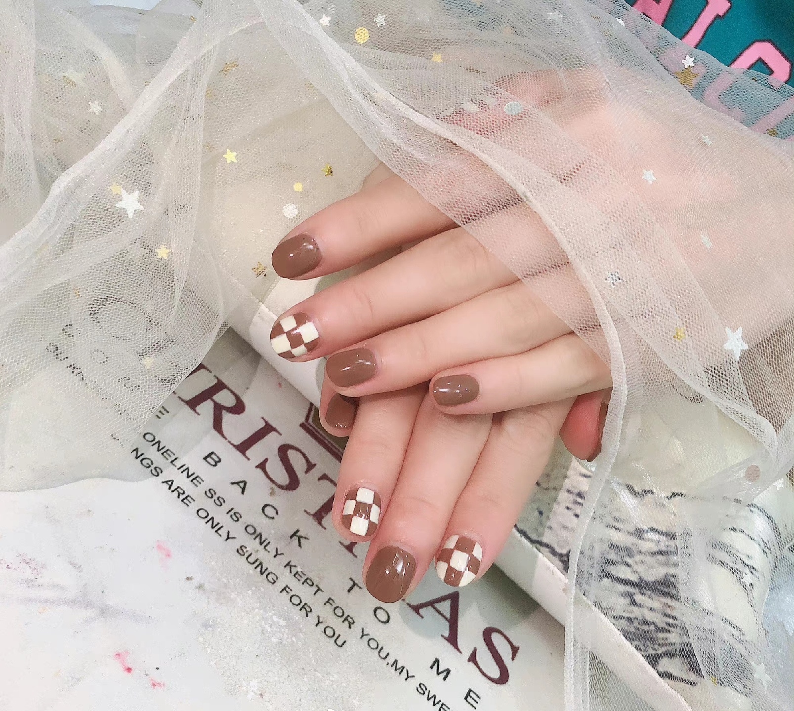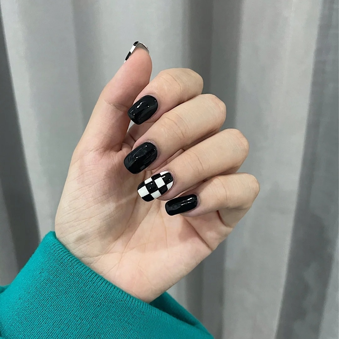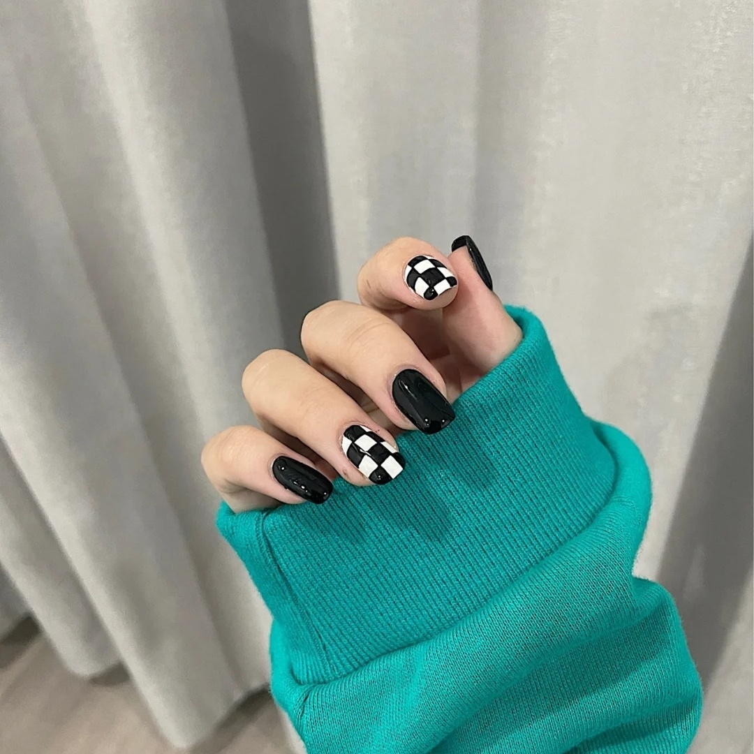 超级适合秋冬季节的棋盘格美甲,上手巨好看!各种款式风格都弄出效果,百搭棋盘格!
