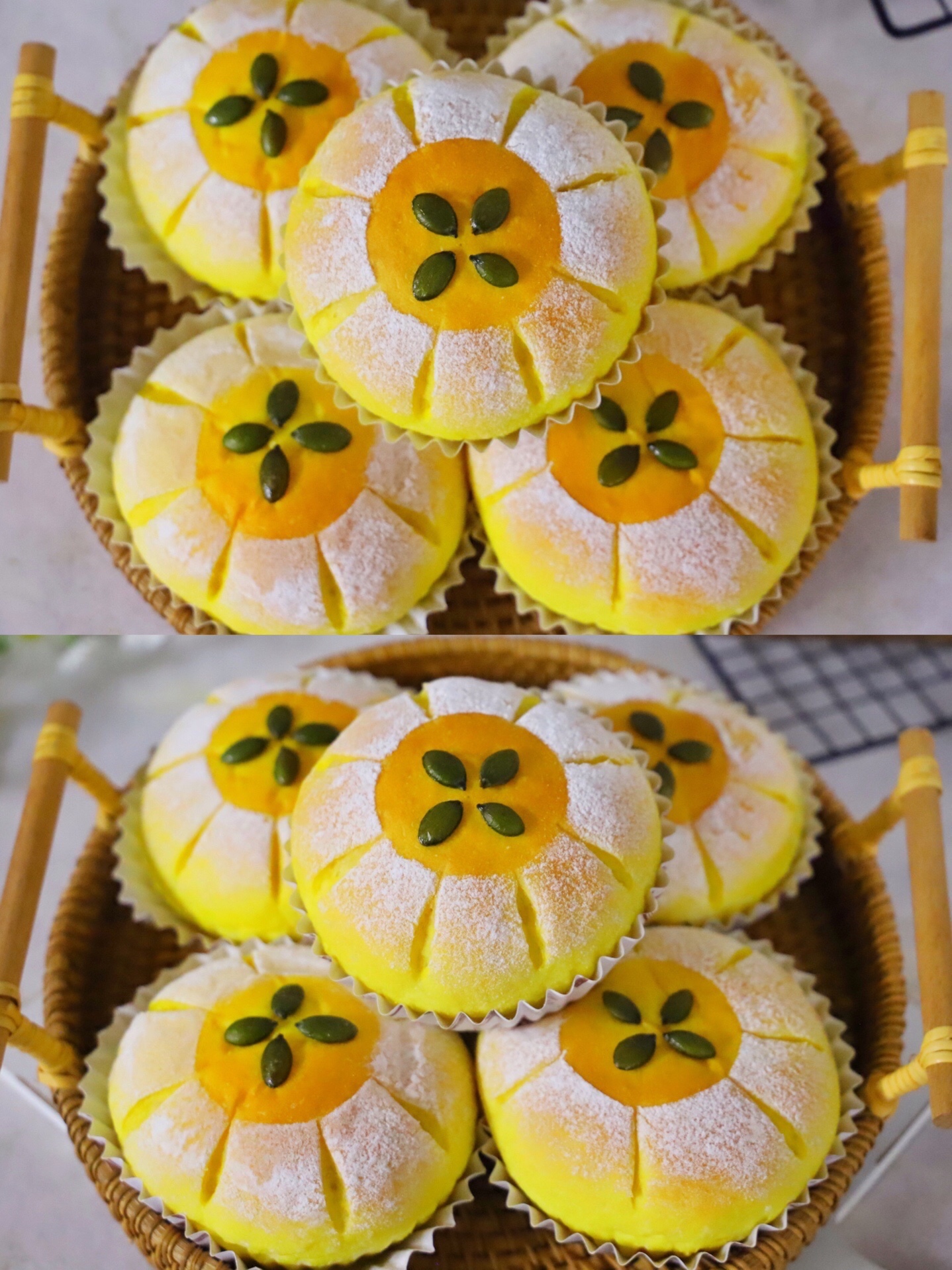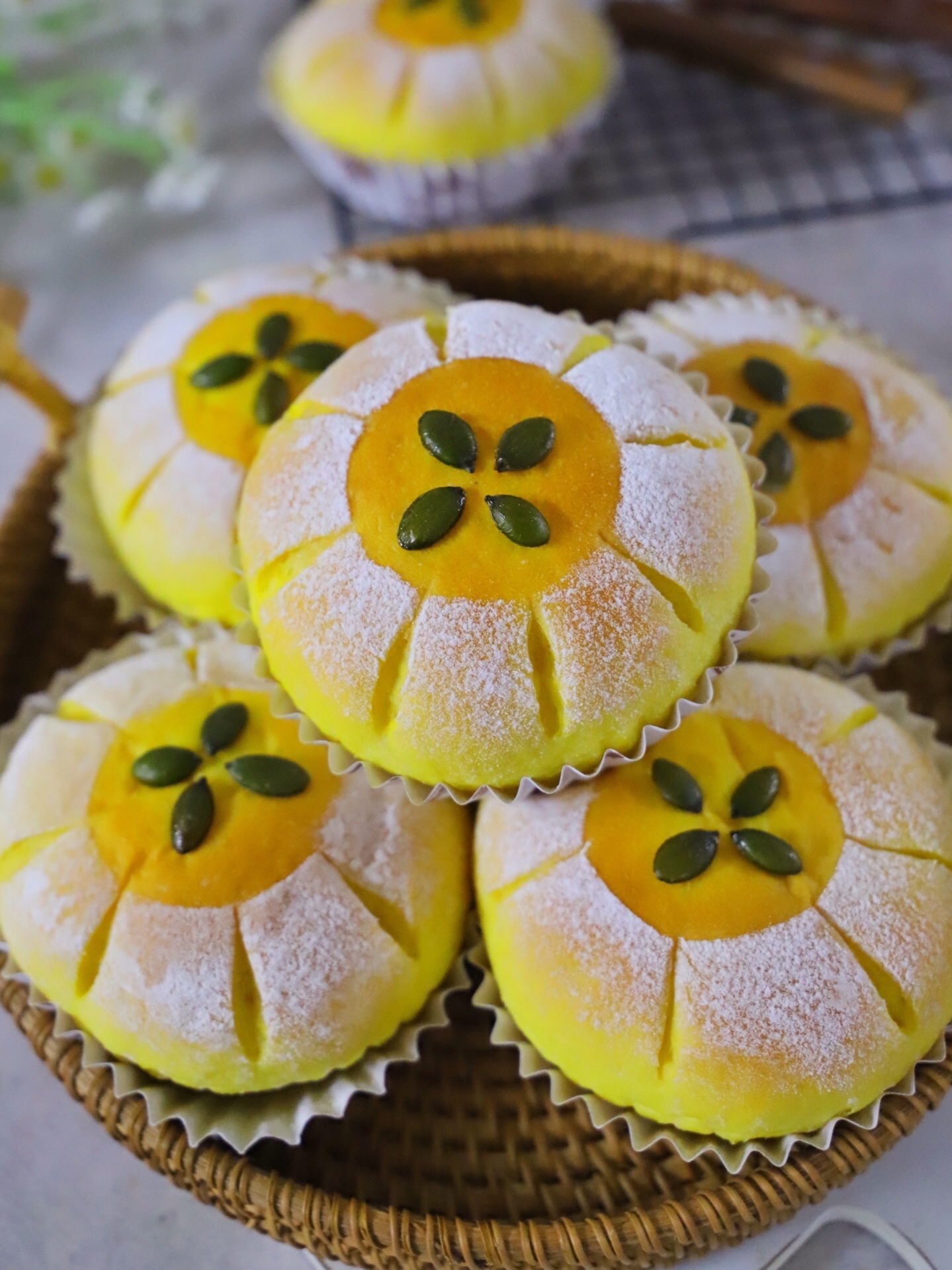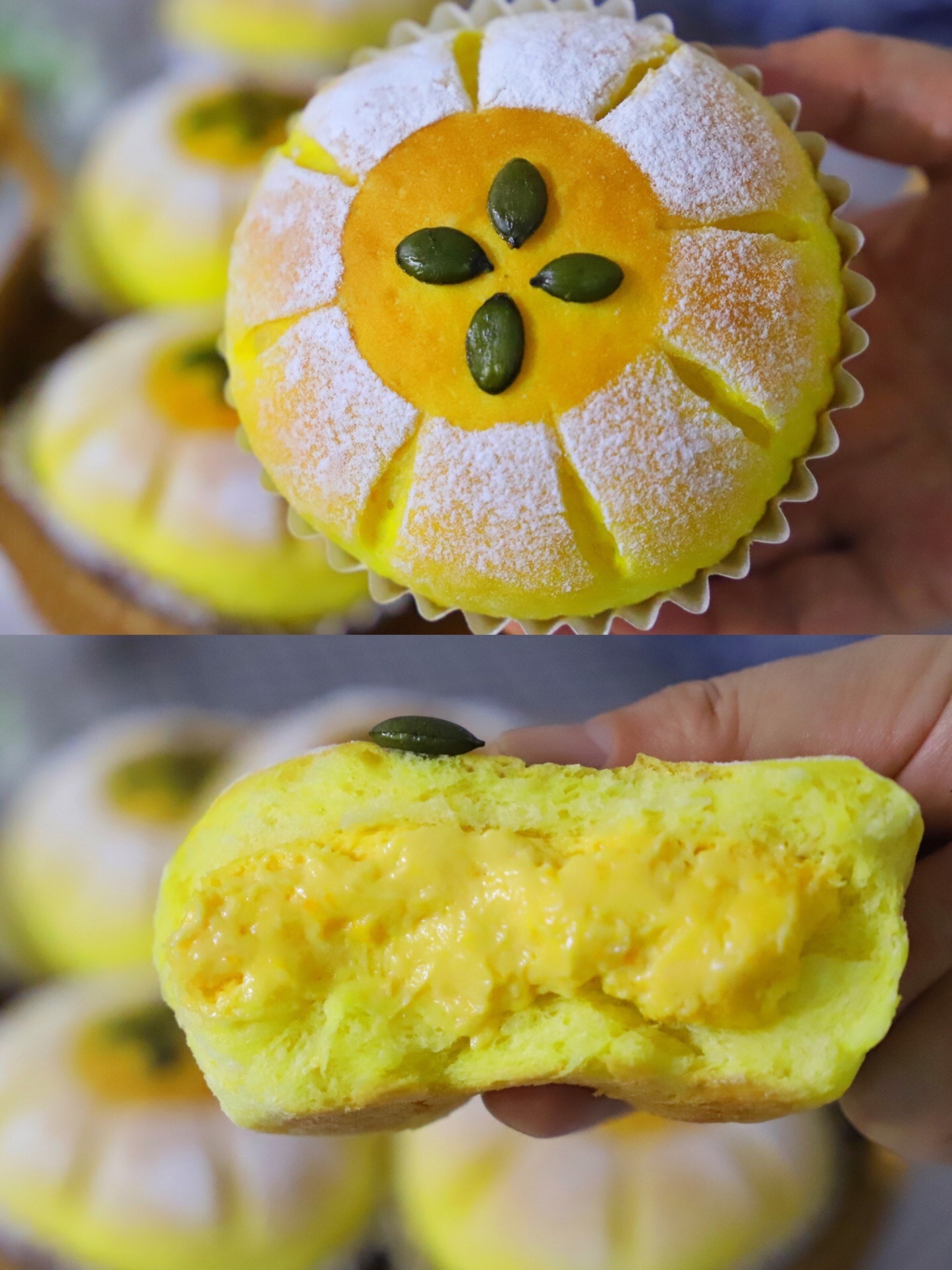 用南瓜做的面包,松软细腻,奶香浓郁还带着淡淡的南瓜清香,咬一口会爆浆,满满的馅料超级满足。