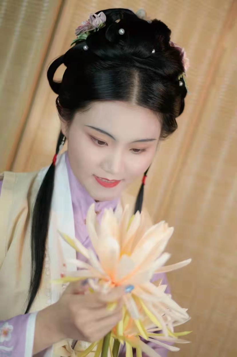 而说到明妆,与唐妆的夸张不同,它追求淡妆似无妆,秀气内敛,也是最接近现代的。