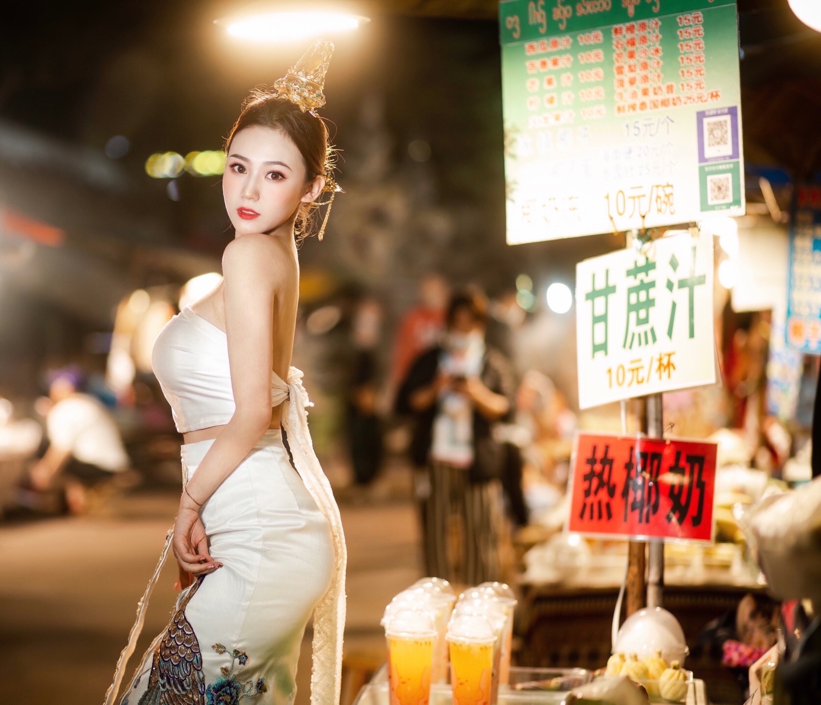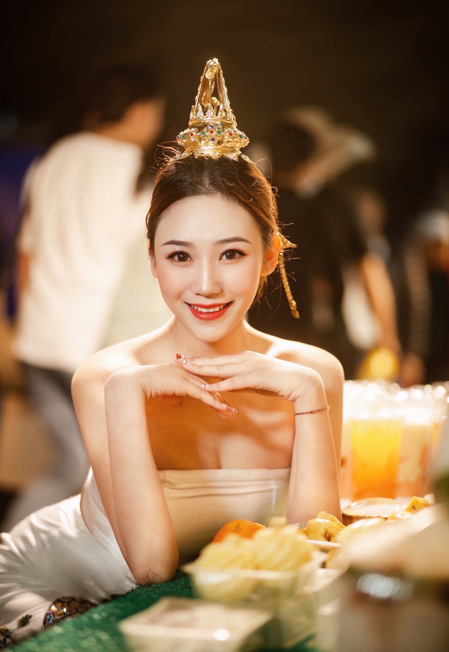 本组写真的关键就是服装和造型,眼妆需要稍微浓郁一点,眼线细长,温柔又有点妩媚感,衣服最突出的就是这种抹胸上衣+突出迷人腰臀线的长裙,眼神一定要配合这种造型和感觉,想象自己就是那个最美的傣族妹子。