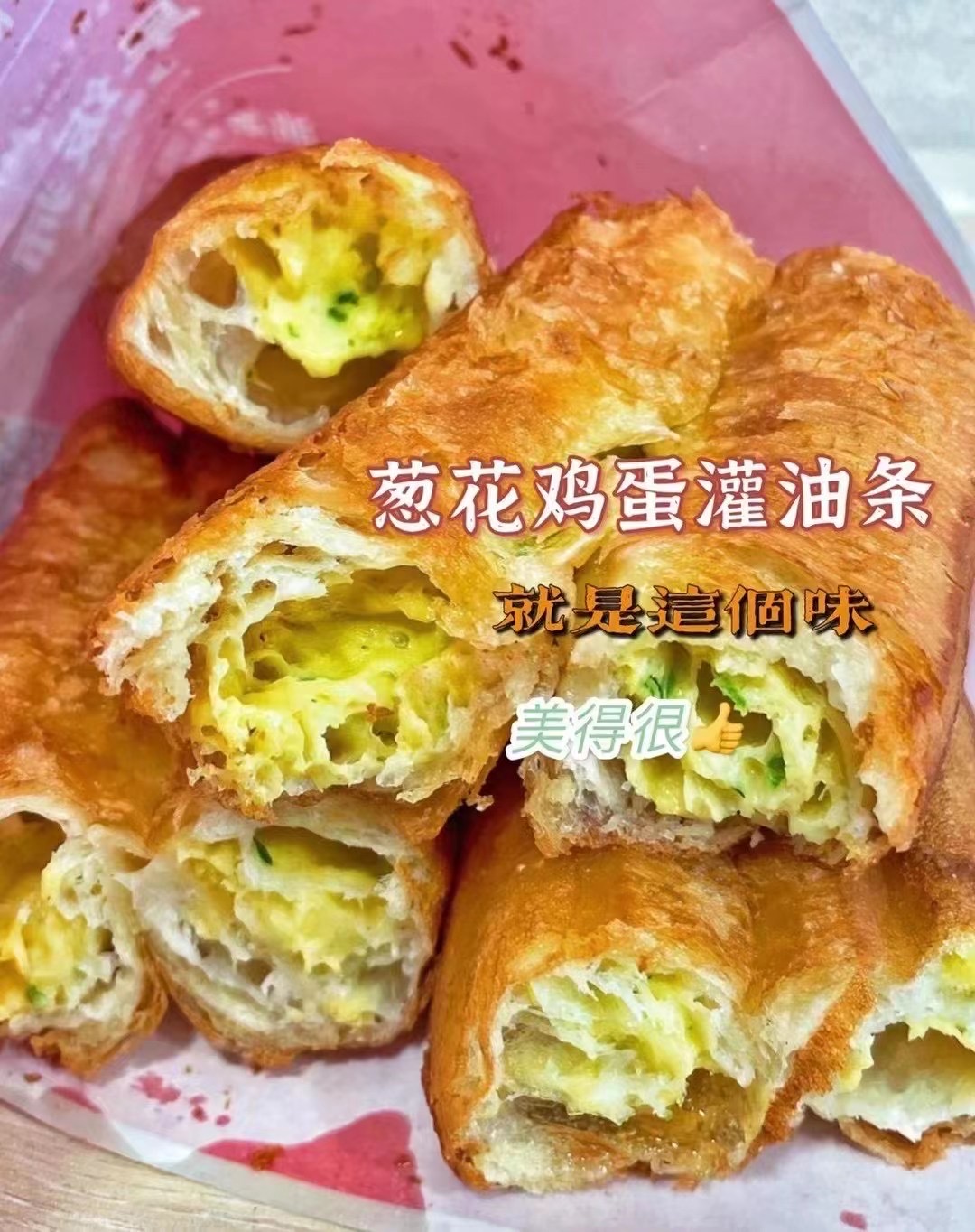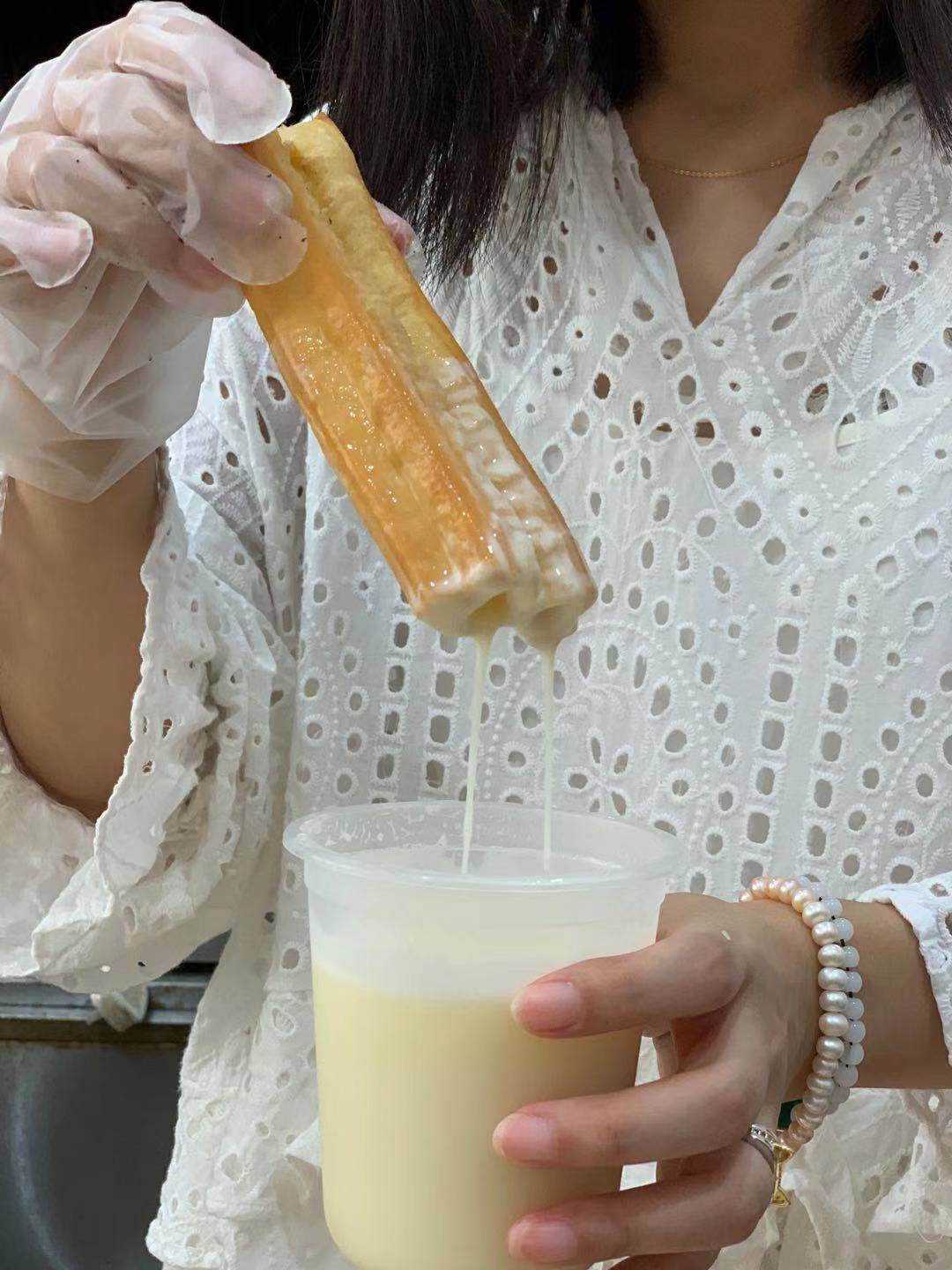 2⃣️鸡蛋灌油条:原味的油条,炸的时候就把鸡蛋灌进去,喷香!配上店里自己磨的豆浆,是小时候的味道!