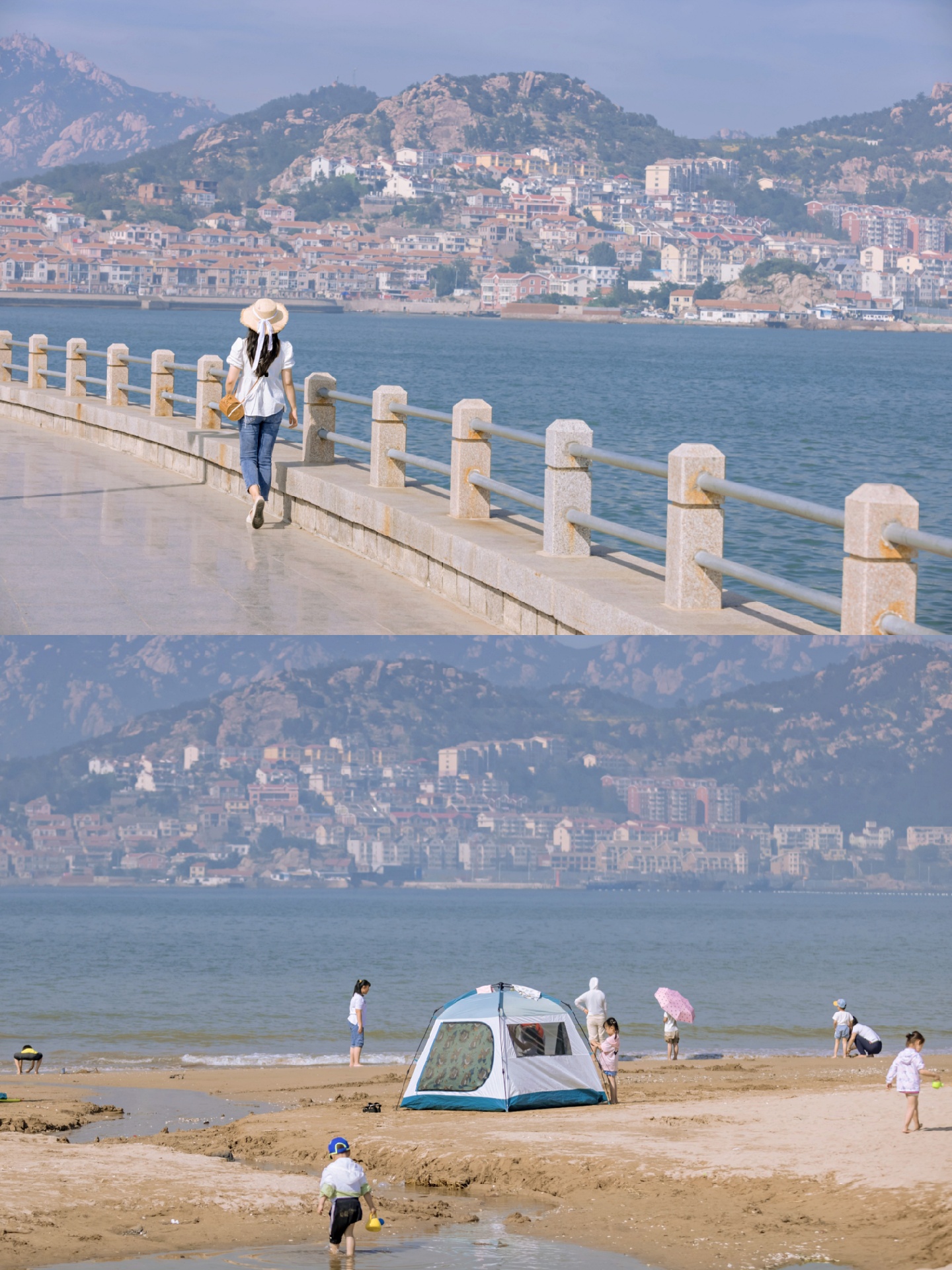 比起青岛的一浴二浴,沙子口人很少,一家人支起帐篷待上一整天,远处的渔村做背景,令大海画面多了一丝温柔的人文气息。渔船来来往往,海鸥飞翔,沙子口的海鲜远近闻名,