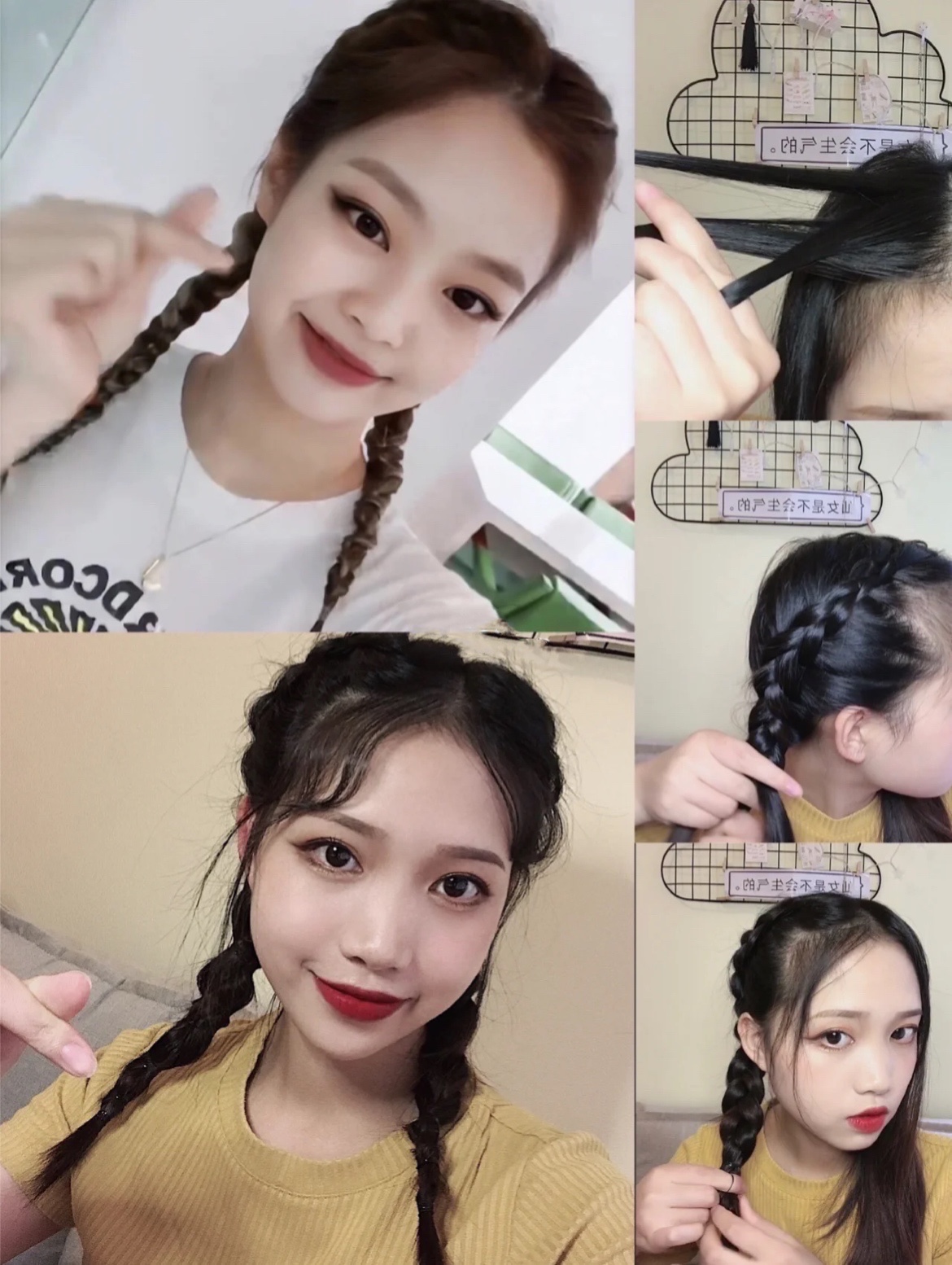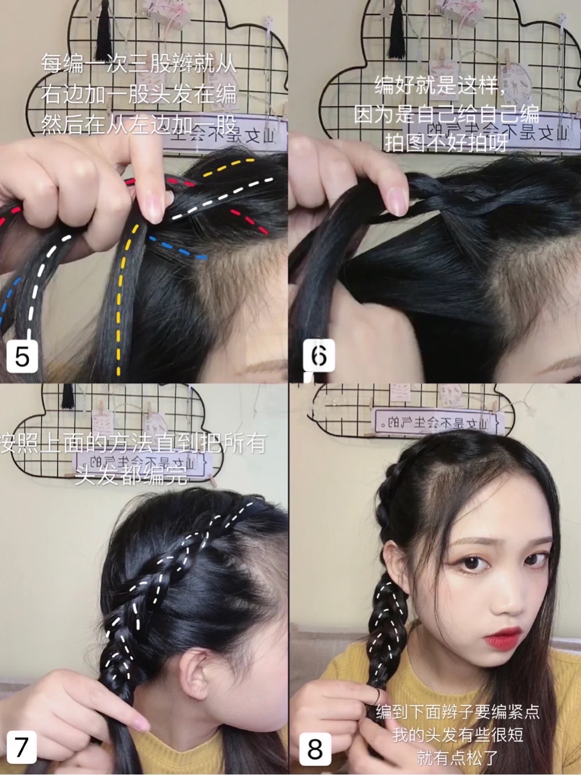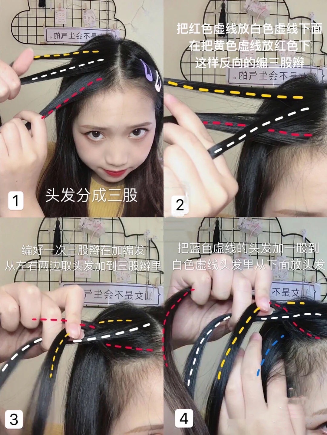 就是三股辫加编发的方式编,平时三股辫是从上面放头发,拳击辫是从下边放头发,如果是新手可能会有点难操作,多练习几次就好了