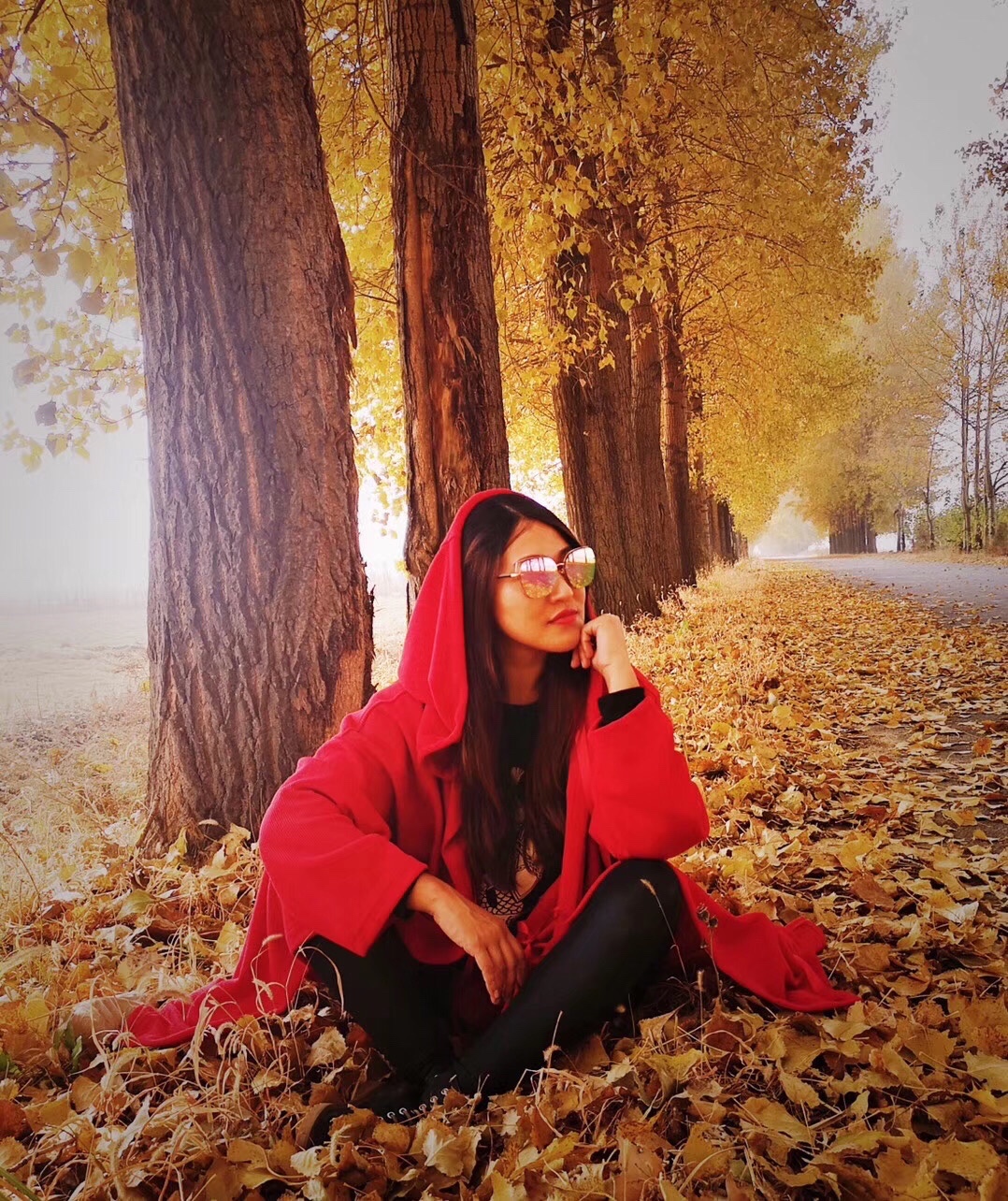 🍁3、坐地上拍照,可以盘腿,手放下脸侧左右两侧看。可以手持一片叶子之类的物品看着。可以双人背靠背坐着举起一只手。