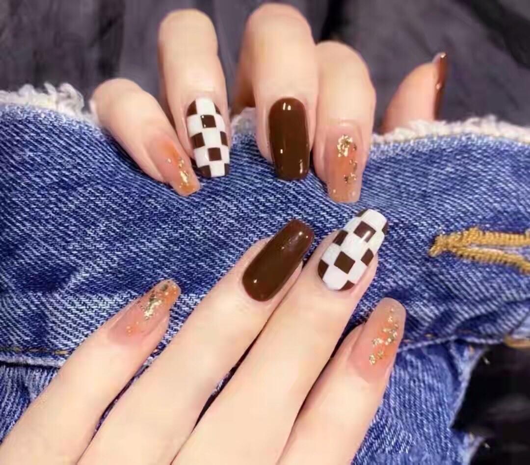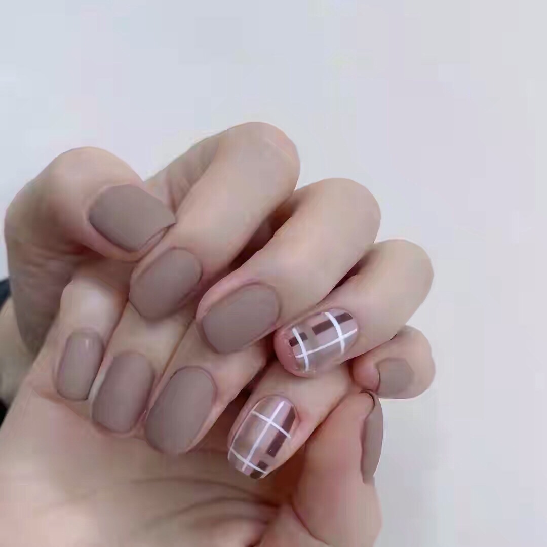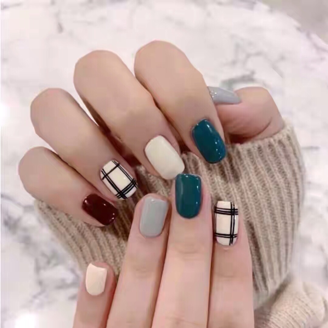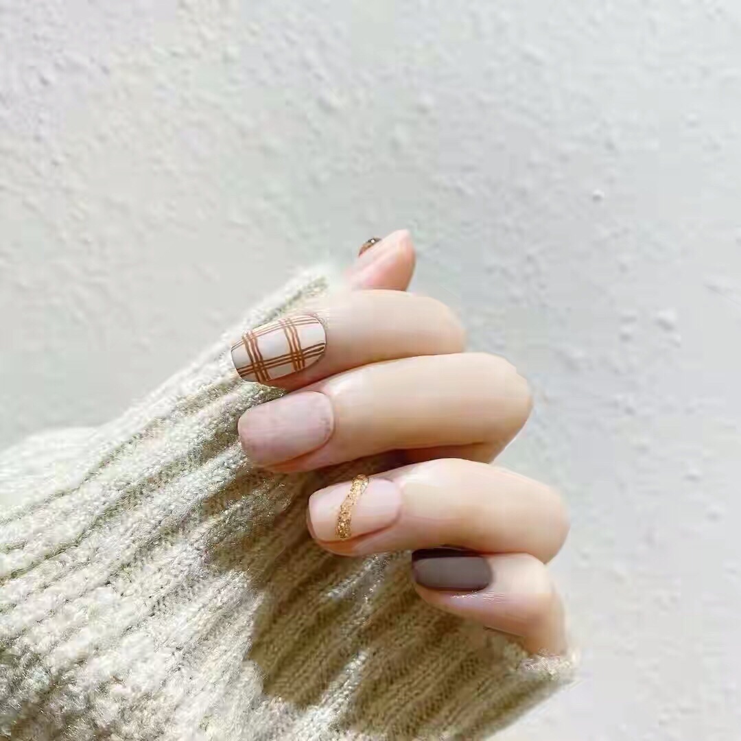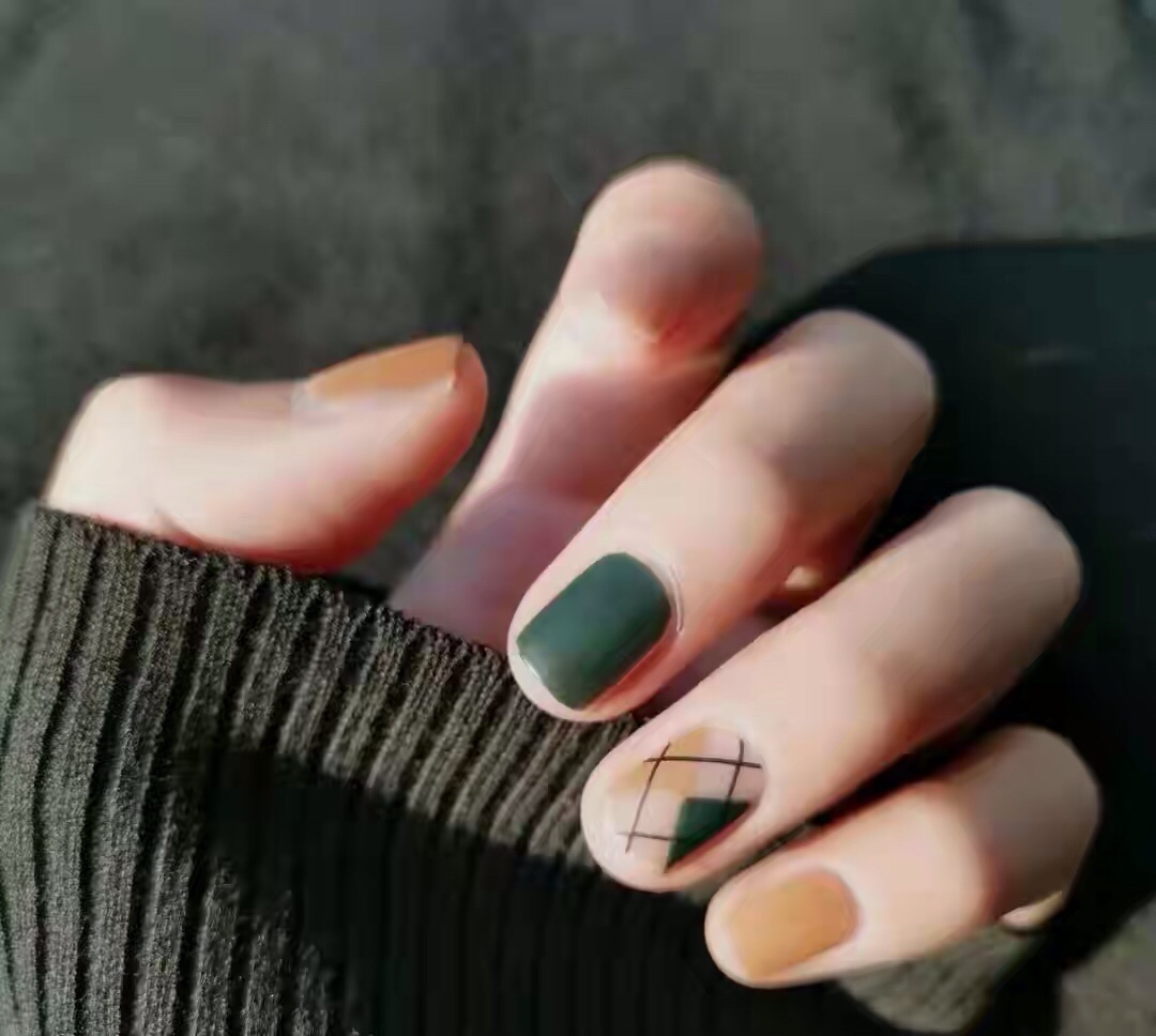 格子系的美甲款式,低饱和度、莫兰迪配色,显白不挑皮,高级又温暖,最适合秋冬季节了~