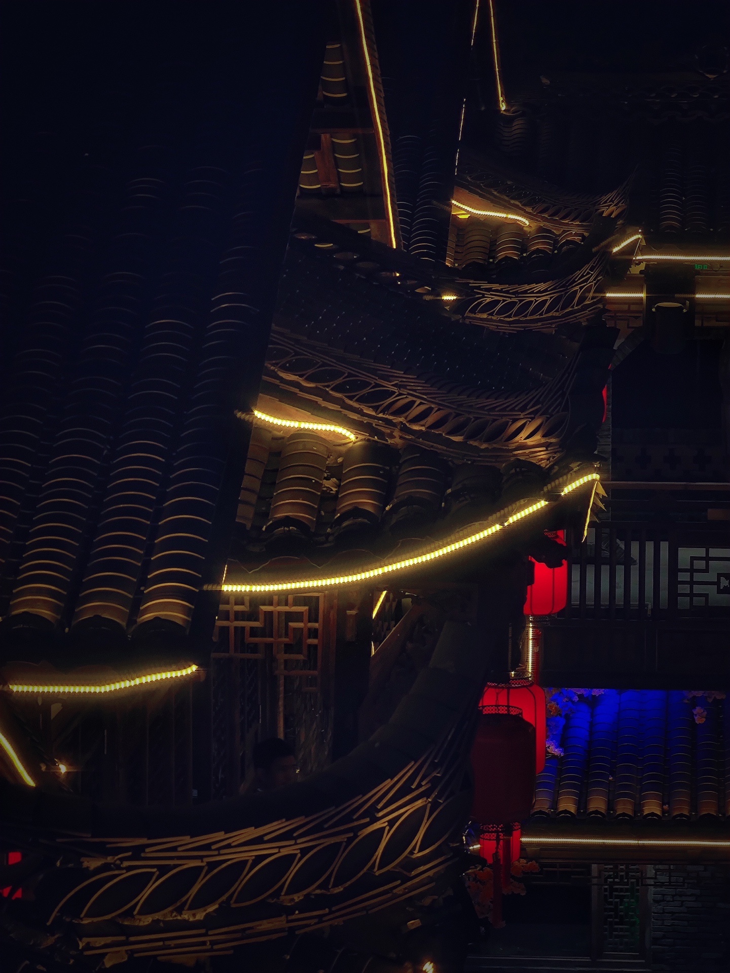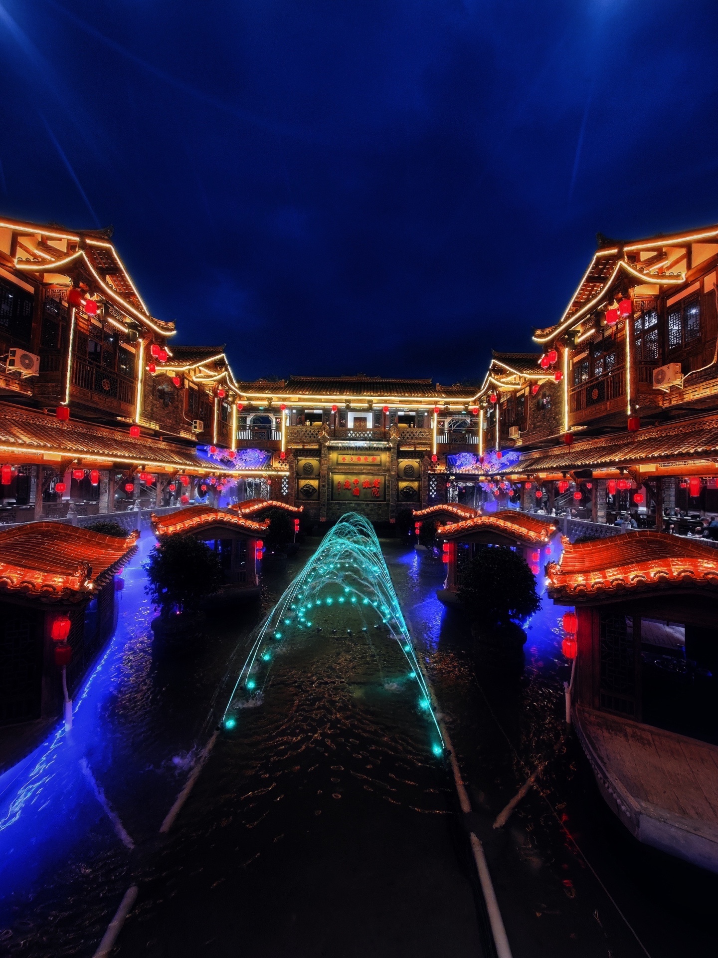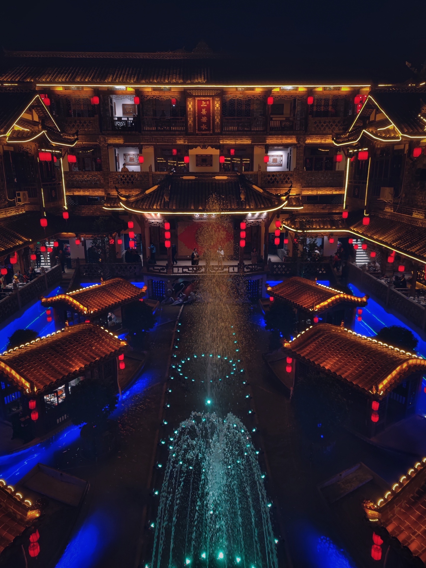 夜晚,喷泉与水幕交织中,伴随有灯光秀演出,琴曲悠扬,仙乐飘飘,水里看花雾中望月中,有一种飘然出尘的感觉。