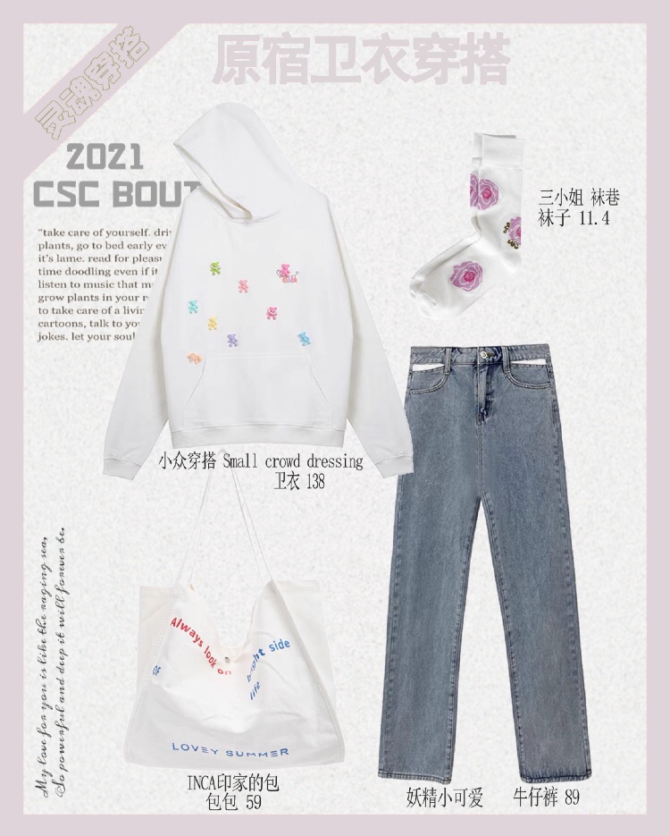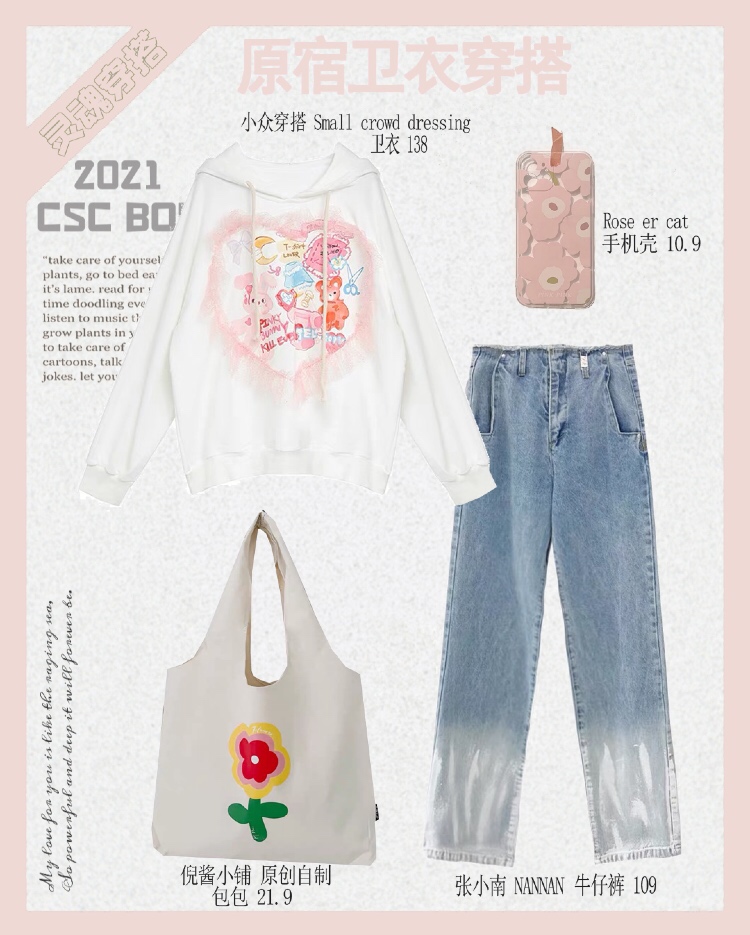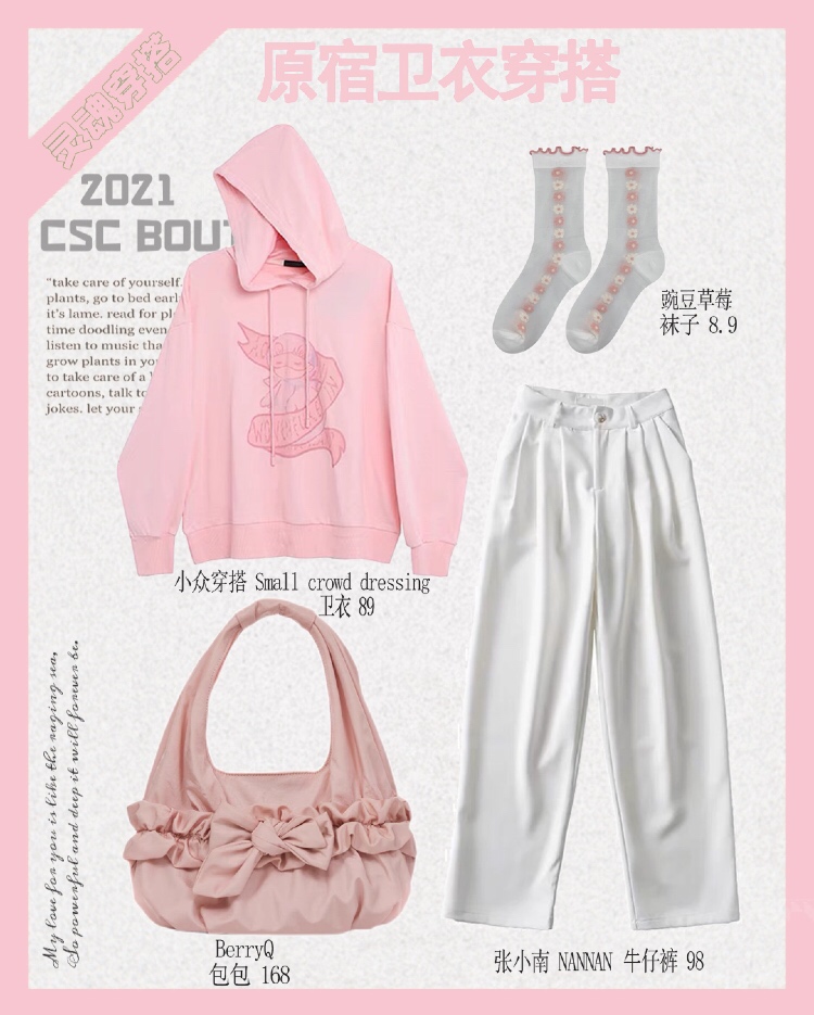 ▪️很好看的粉色卫衣💗搭配白色牛仔裤给人很舒服的感觉~