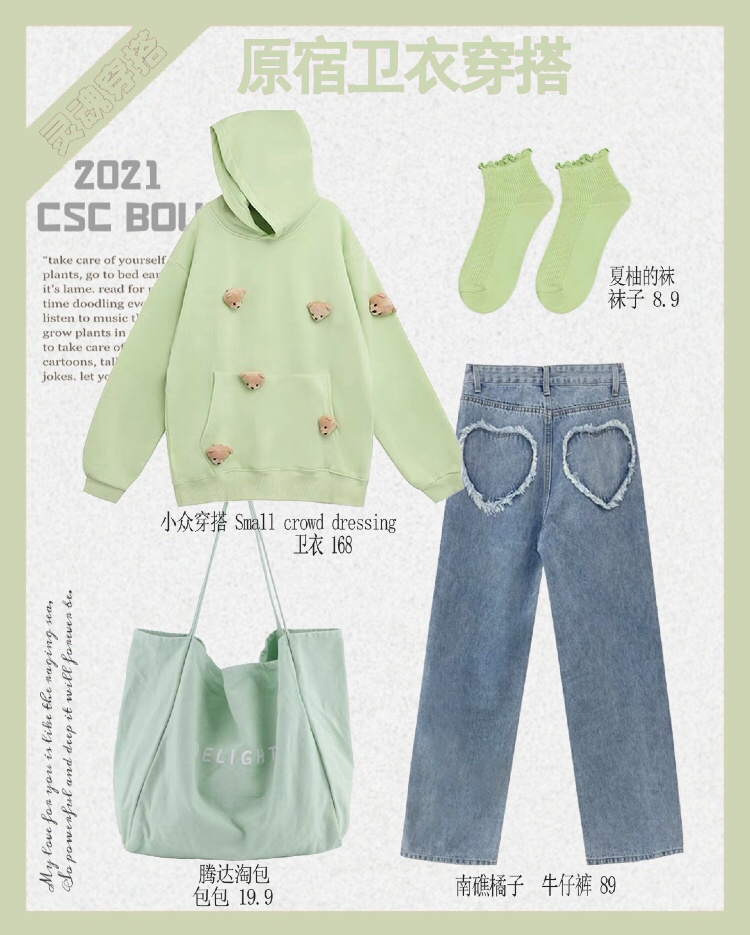 ▪️谁能拒绝牛油果绿呢🥑搭配牛仔裤休闲又不失可爱~