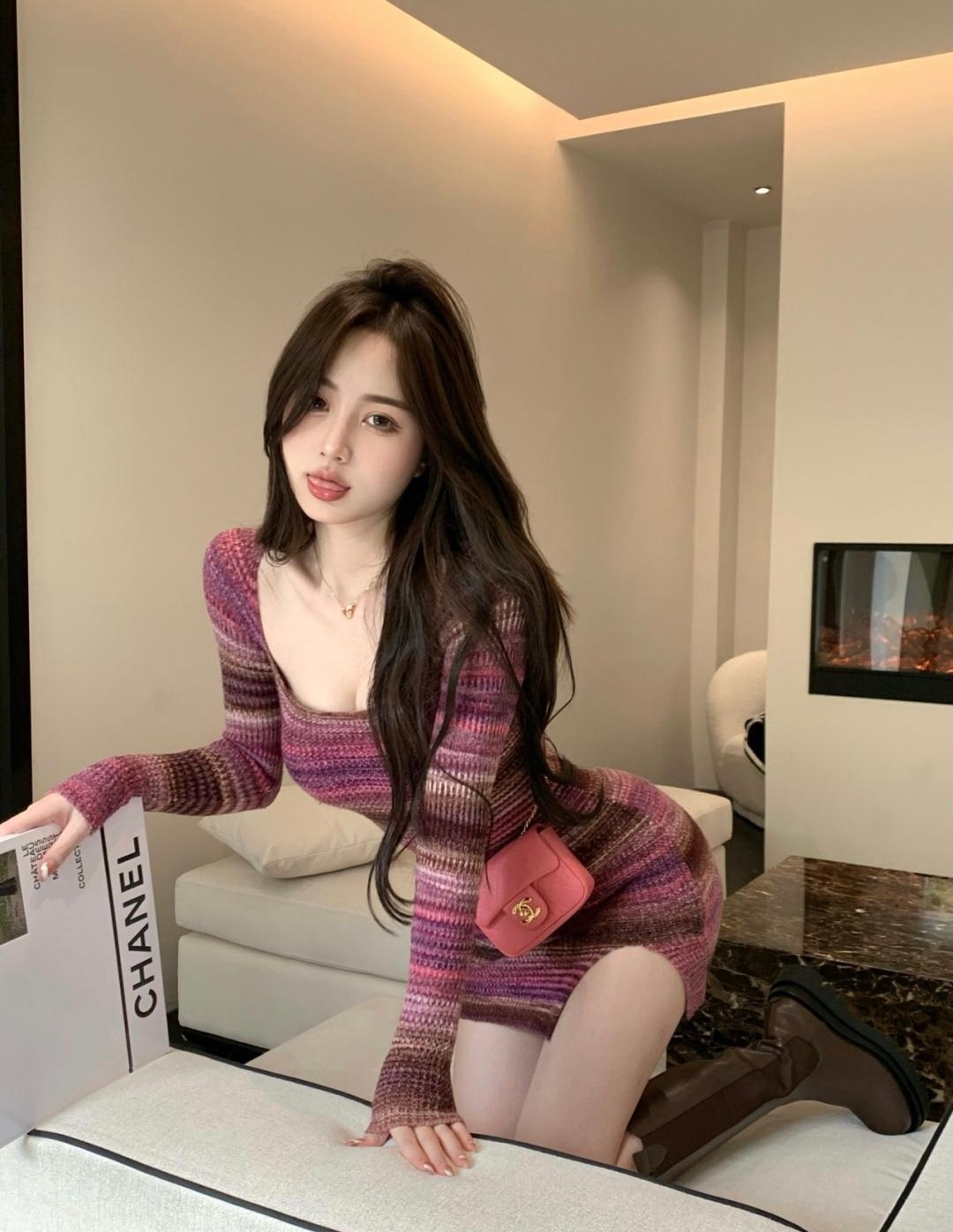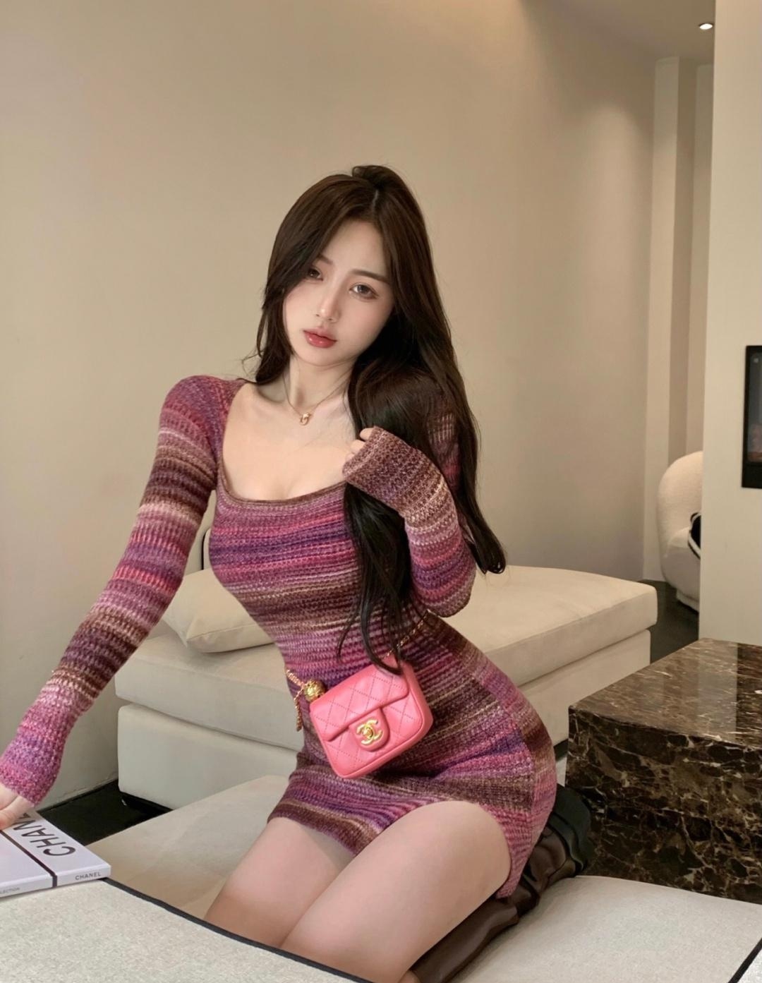 彩色毛衣裙真的好上镜,高弹的属性更是完美,超显身材,女人味十足。