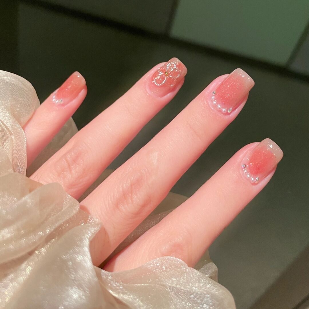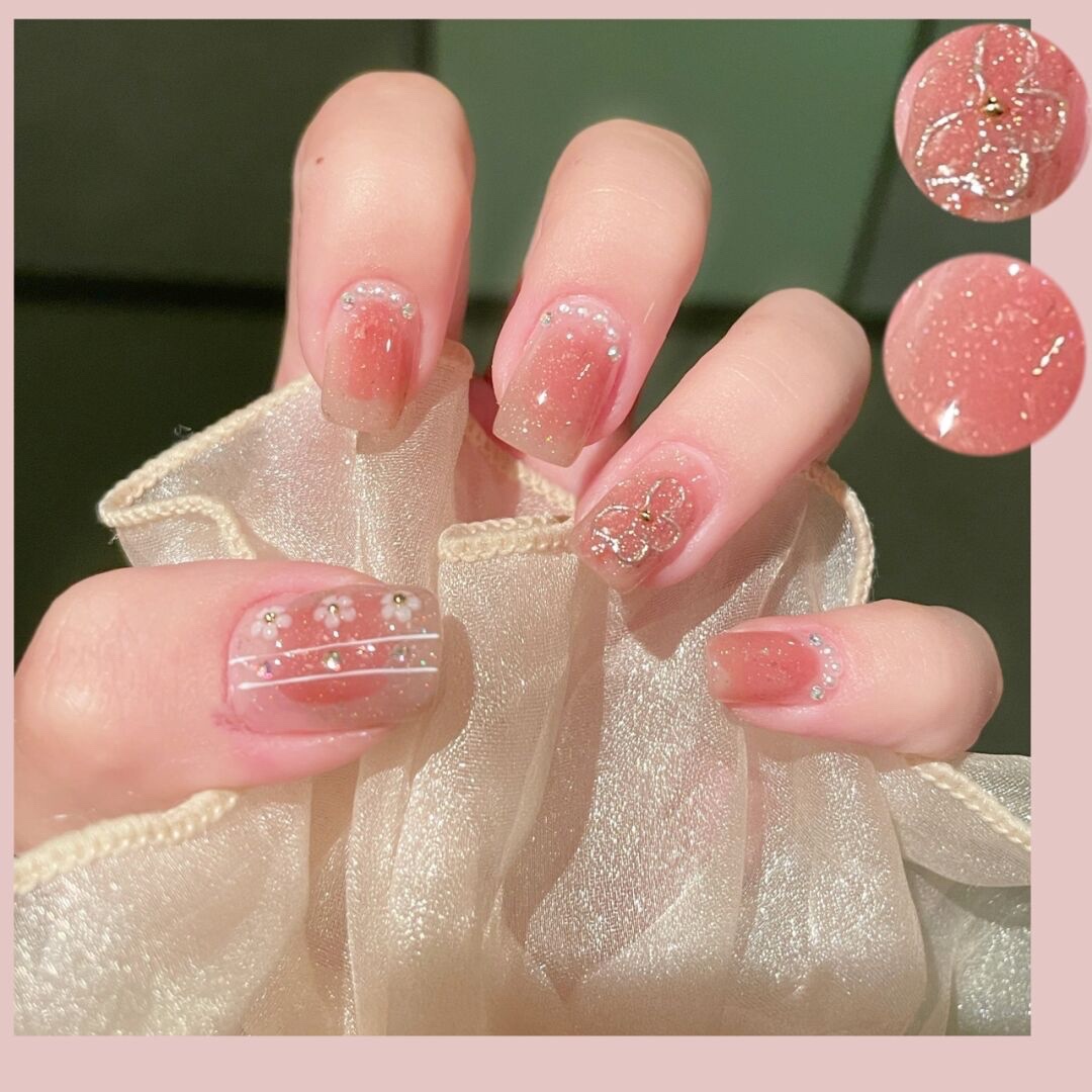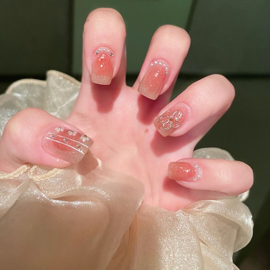 临阵脱桃🍑|蜜桃色晕染美甲|小花美甲|||嗨喽呀宝宝们今天-美图社区-美图秀秀