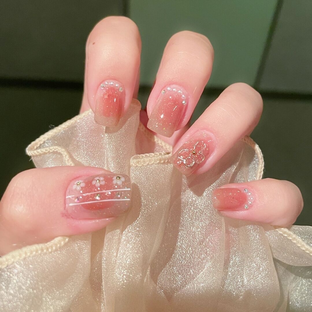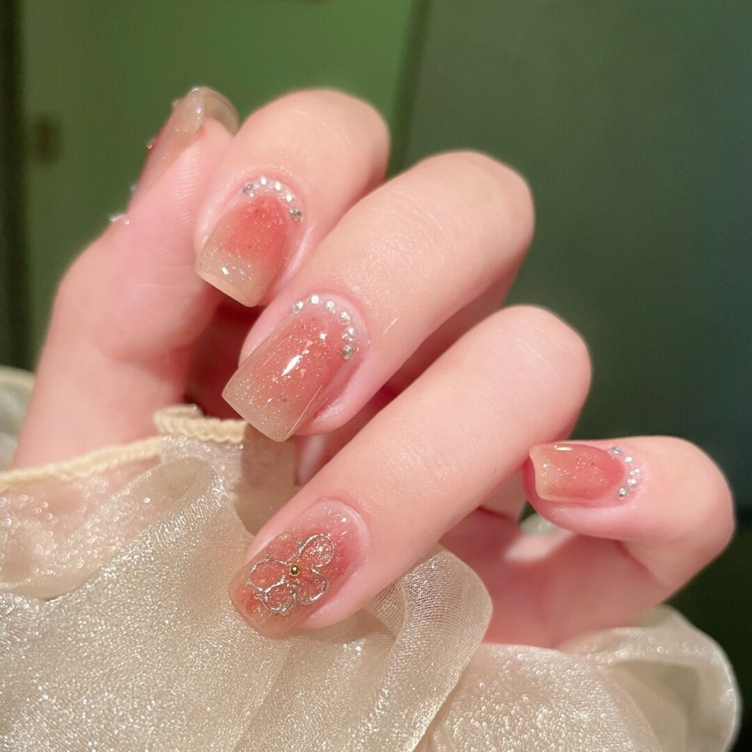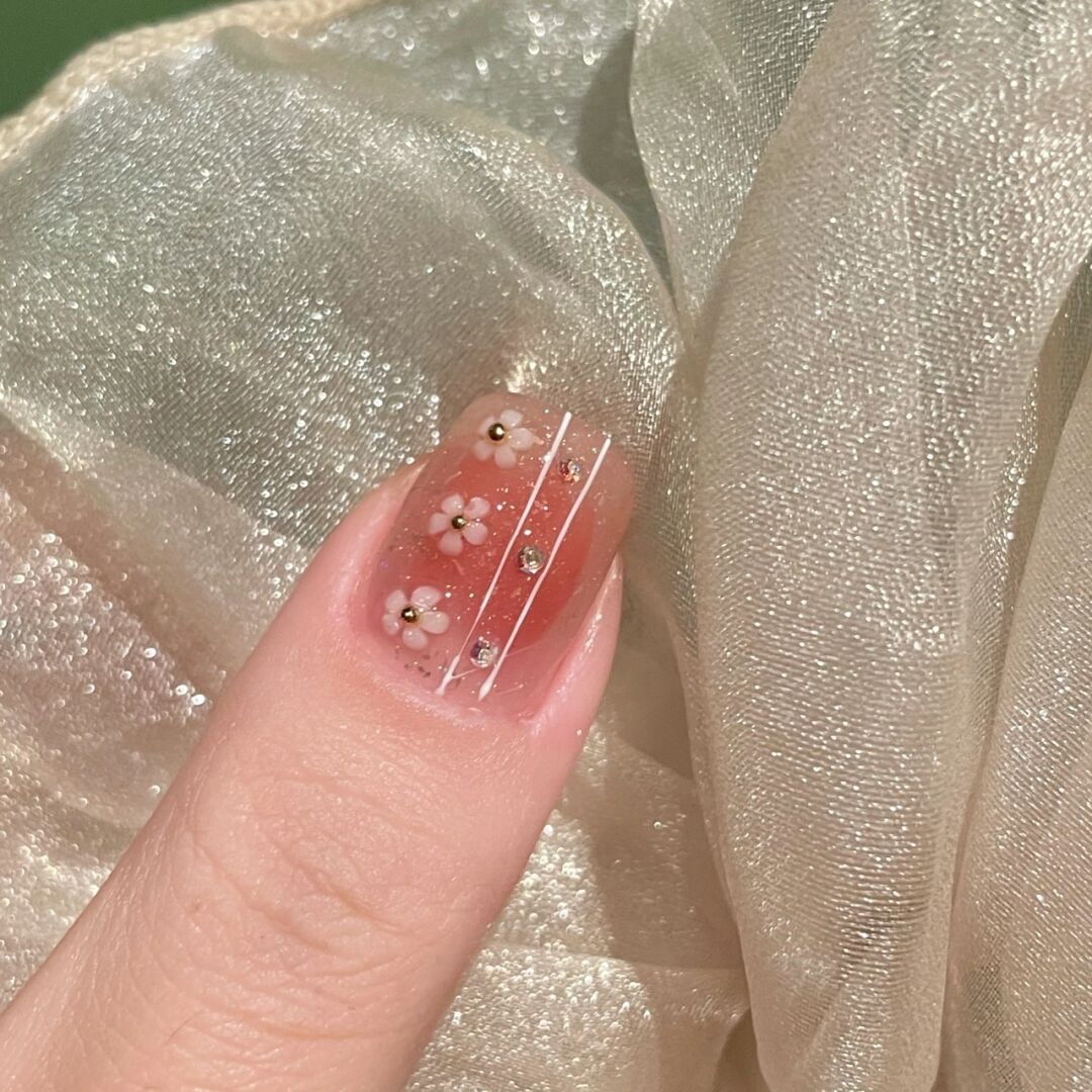 临阵脱桃🍑|蜜桃色晕染美甲|小花美甲|||嗨喽呀宝宝们今天-美图社区-美图秀秀