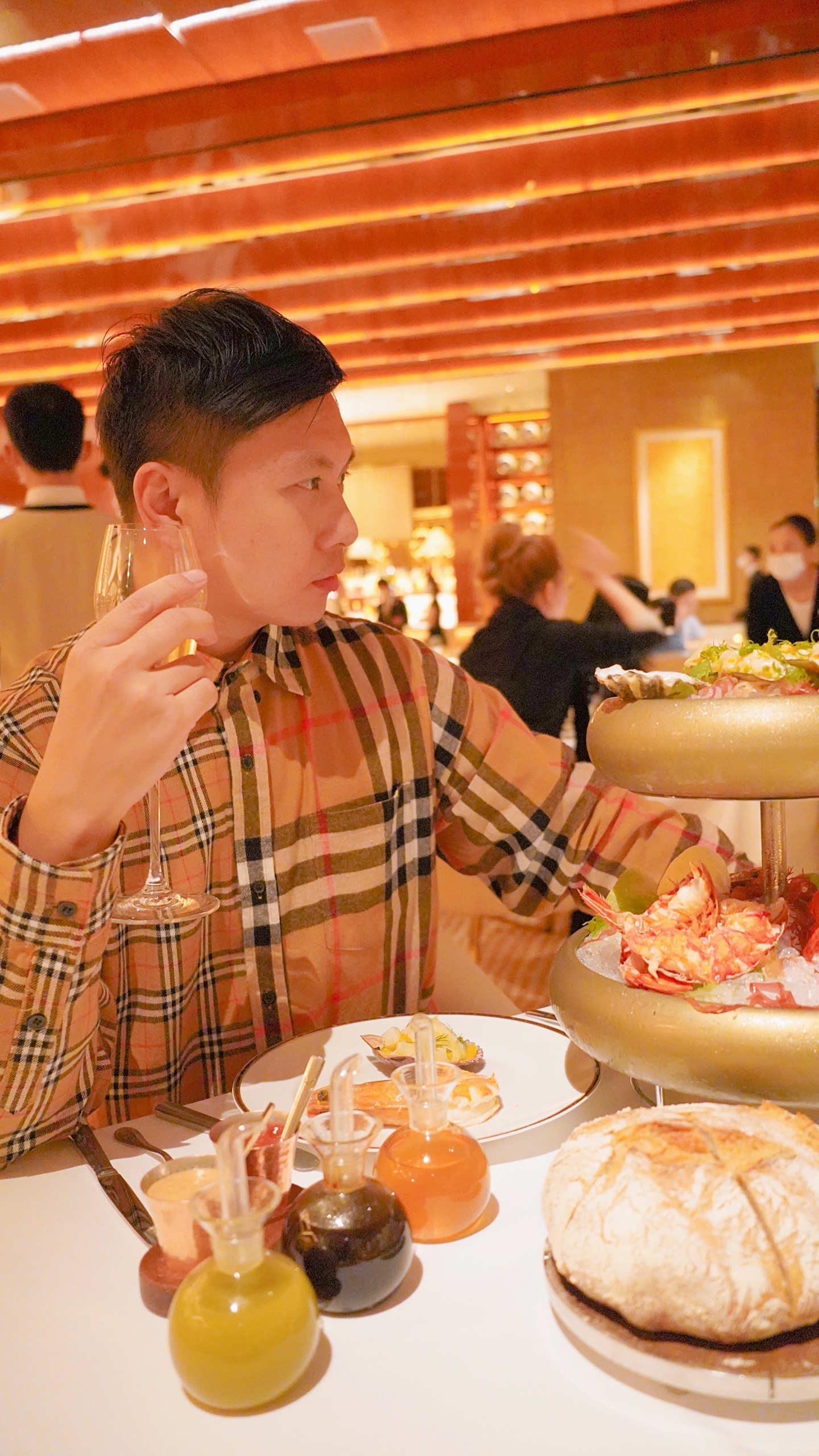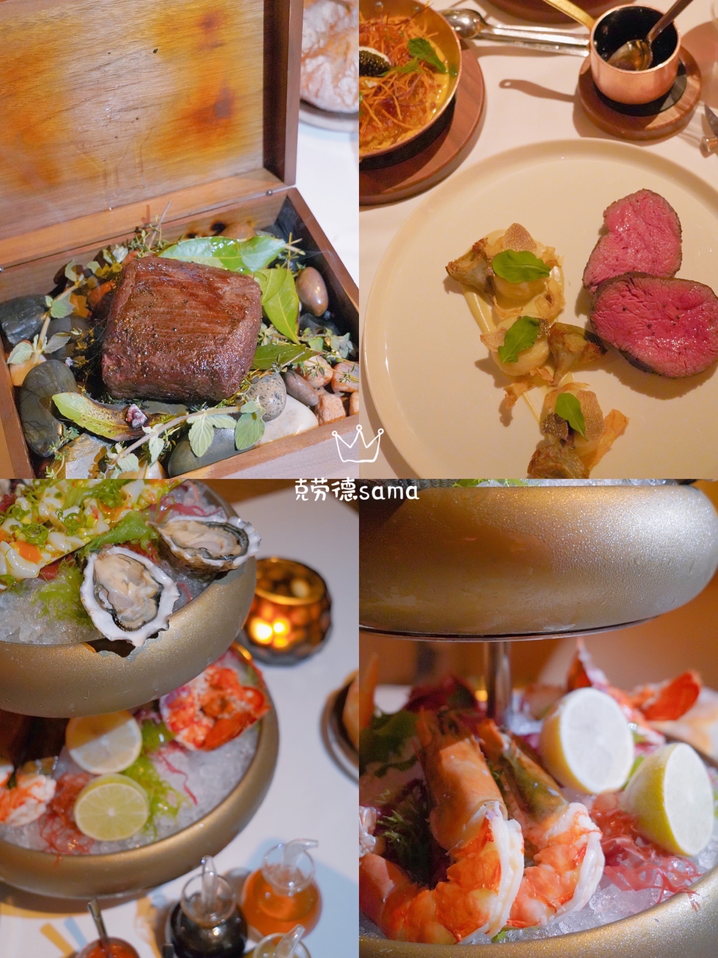 🍫进入正题。我们赏味的是SW主厨定制菜单。SW精选渔获(海鲜拼盘)及SW大溪地云呢拿火焰雪山(甜品),给我留下深刻印象,前者都是精选好货,龙虾、珍宝大虾、帝王蟹脚、生蚝等又大又新鲜,供食客调味的蘸酱都好几款,但我们都觉得海鲜不蘸酱都好吃;后者有个点火仪式,而火焰消失后,甜品仍有热度,趁热吃口感层次都很足🔥🔥🔥