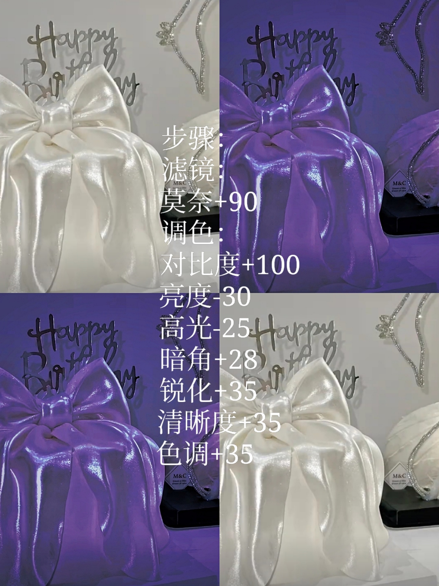 万物发光调色技巧步骤:滤镜:莫奈+90调色:对比度+100亮-美图社区-美图秀秀