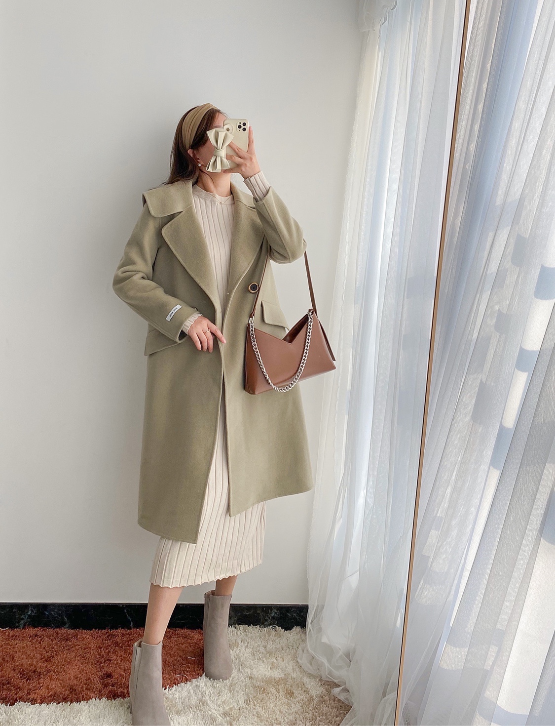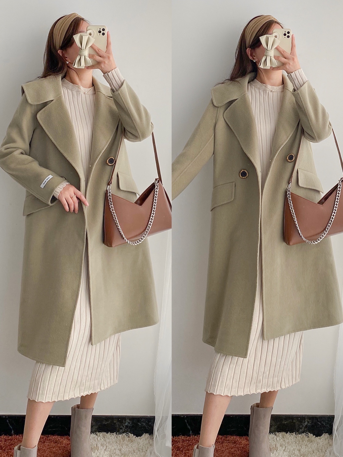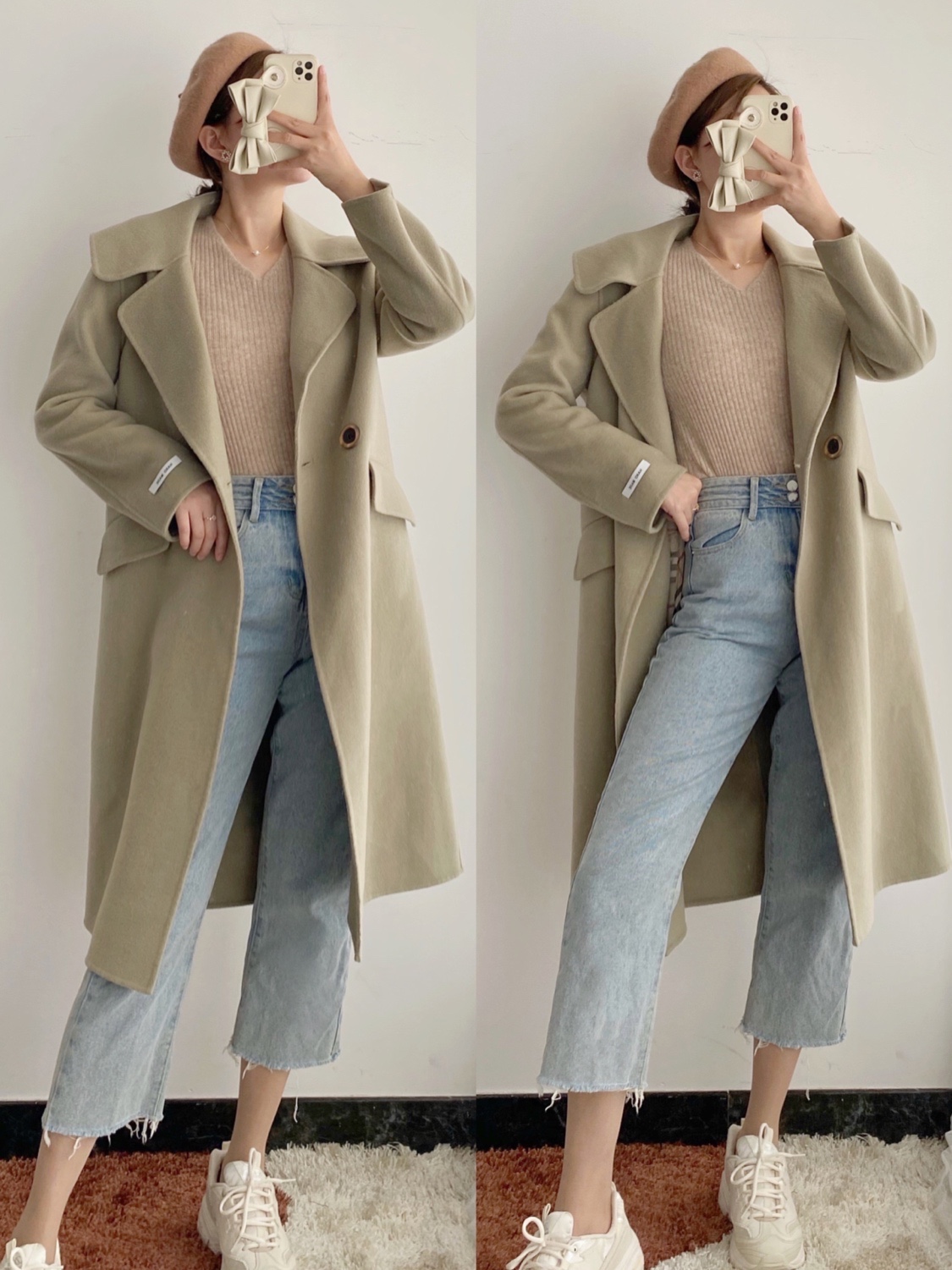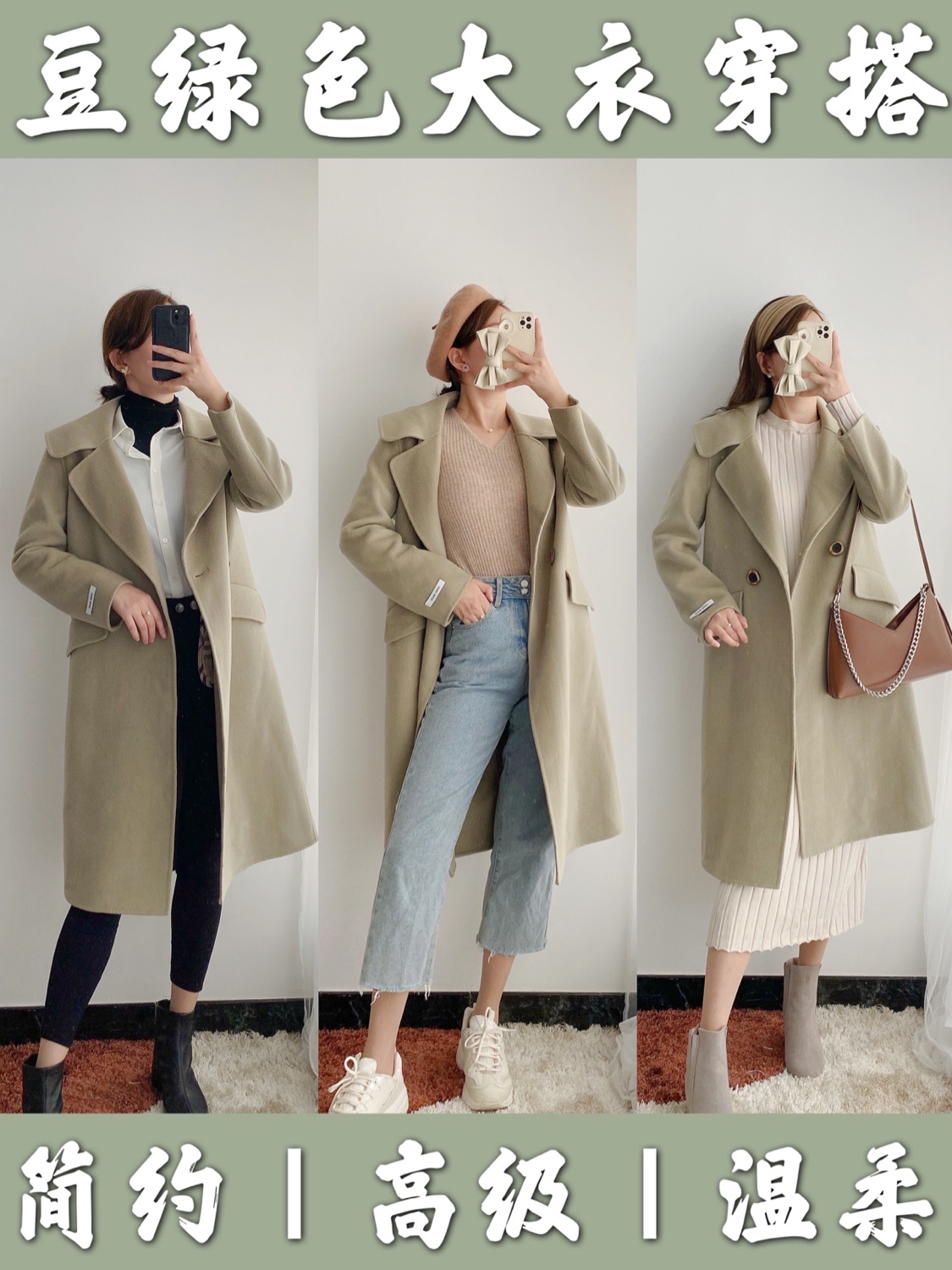 降温啦终于可以穿大衣啦💨这个颜色太好看啦!!!豆绿色大衣在-美图社区-美图秀秀