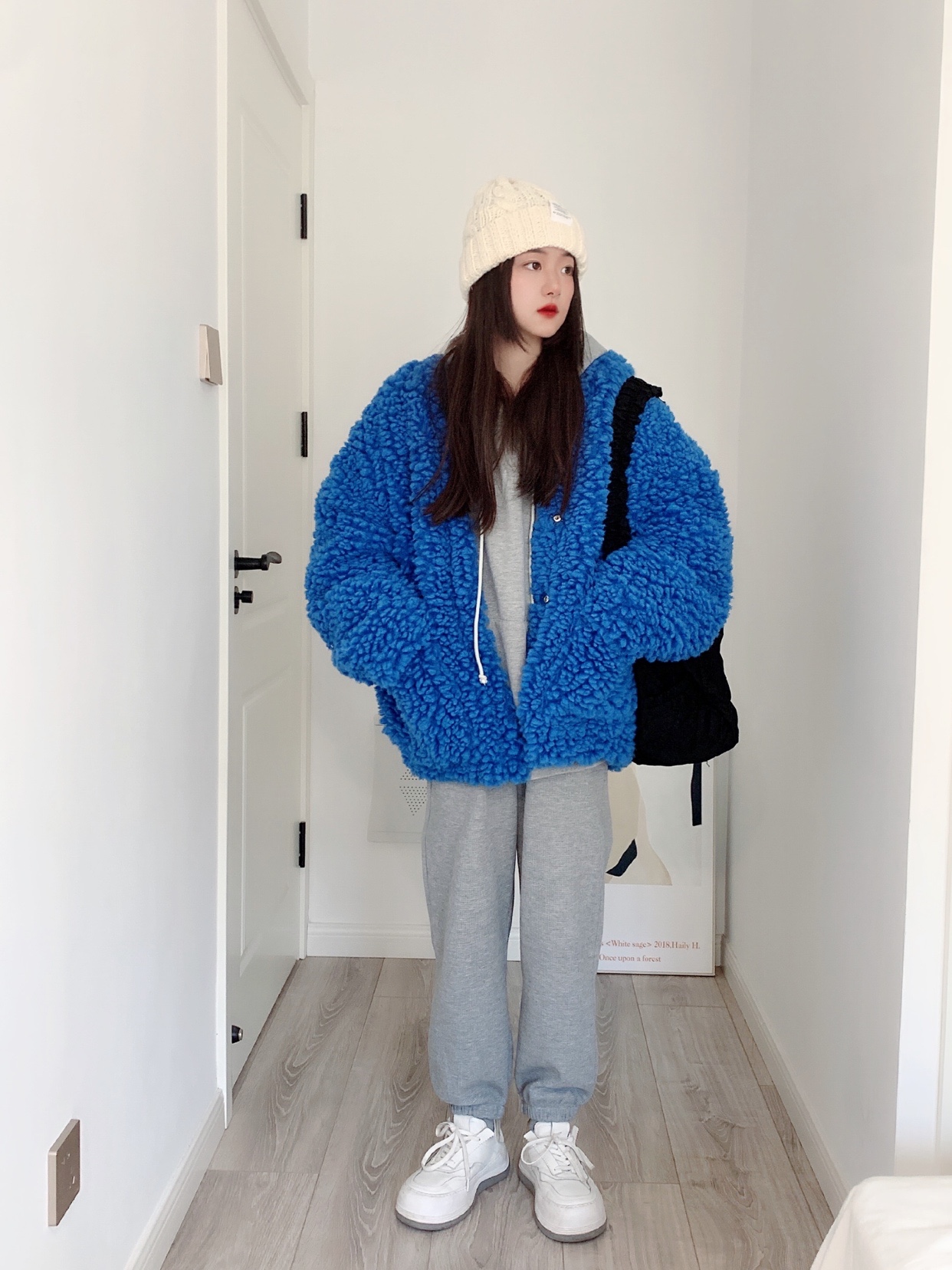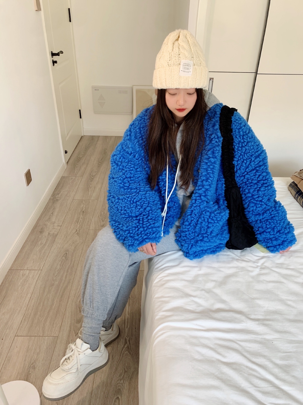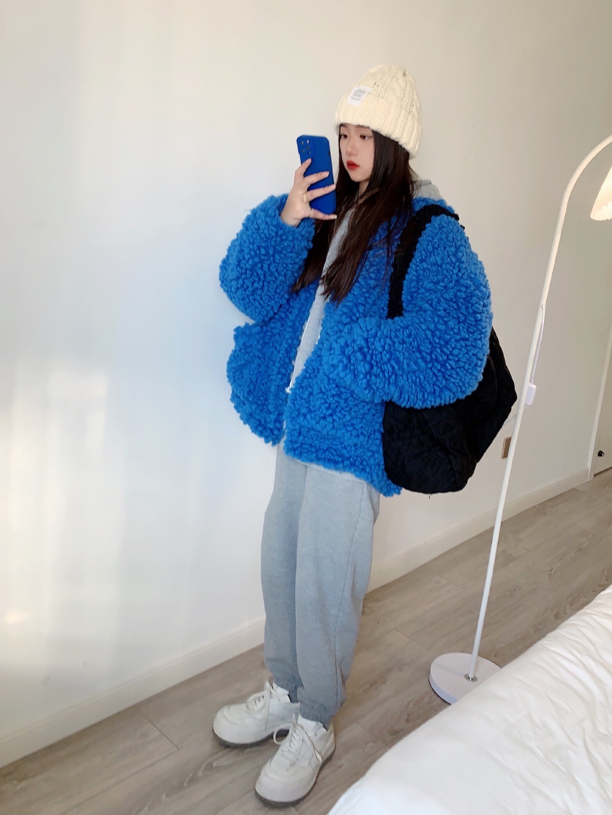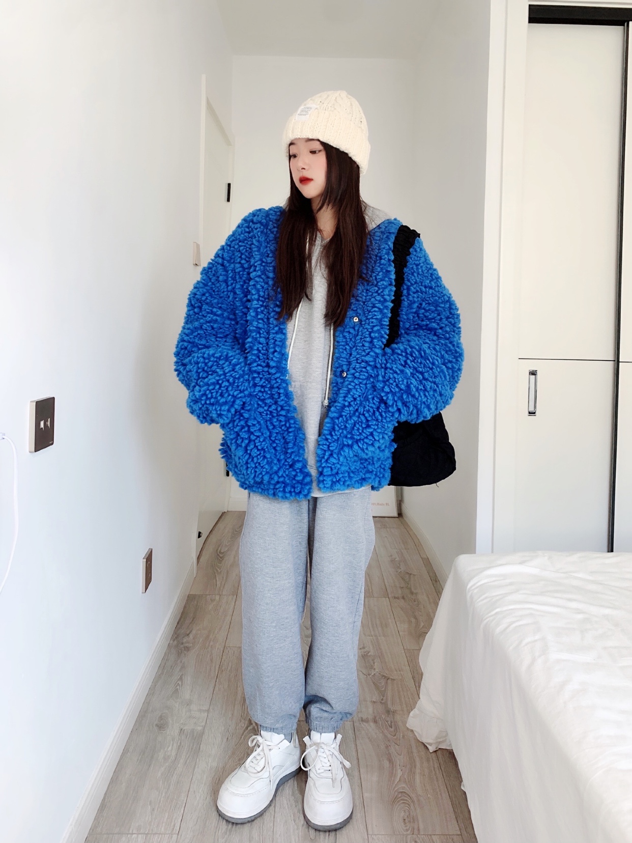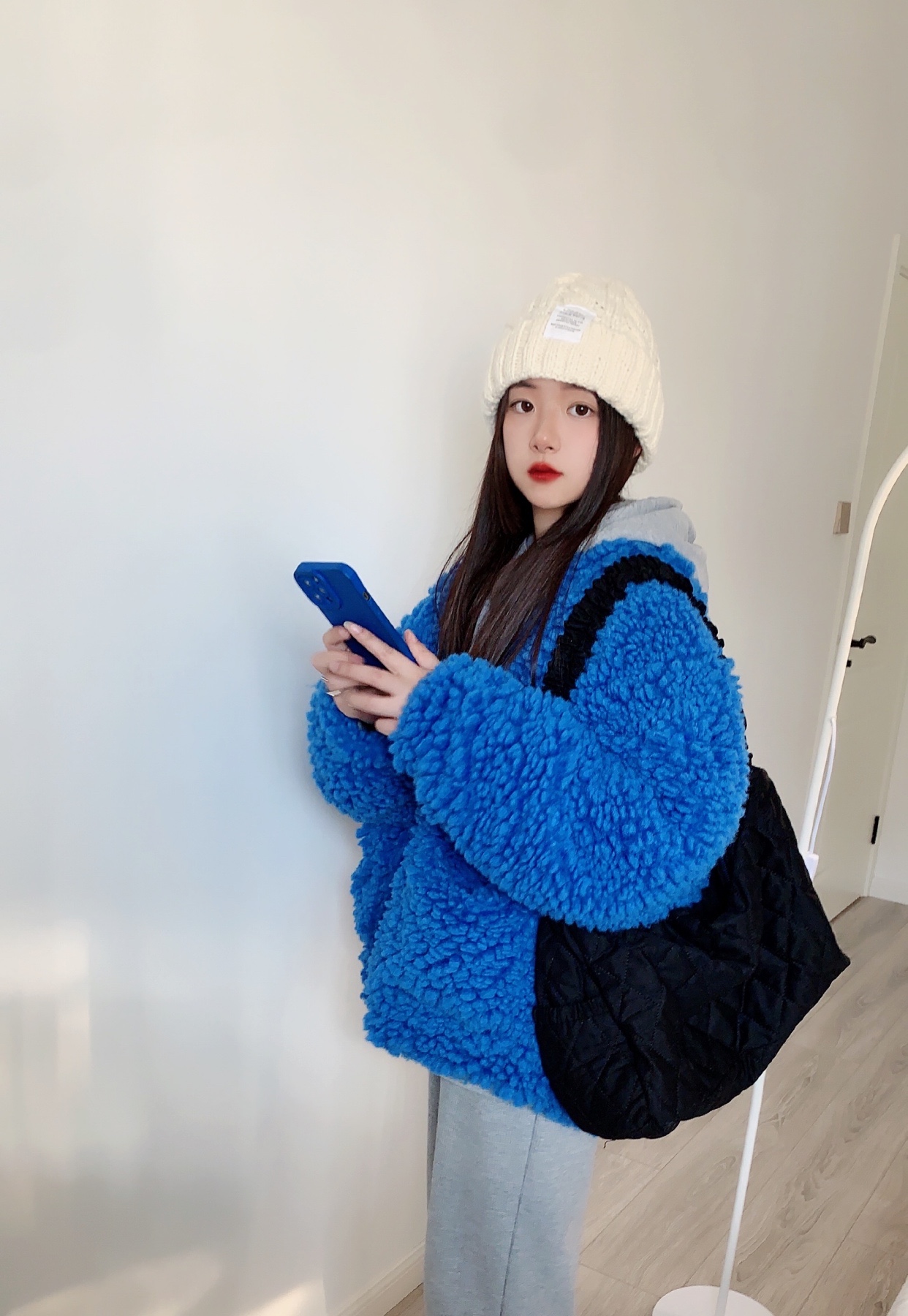 羊羔毛外套大衣 蓝色巨显白