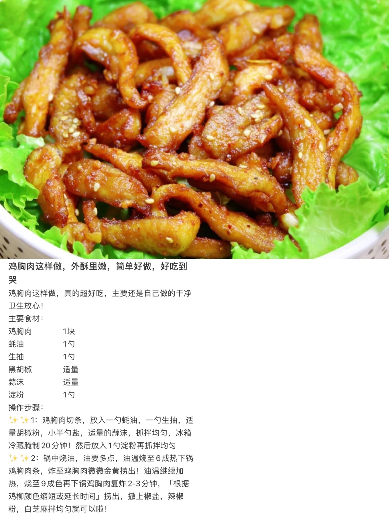 鸡胸肉的花样吃法,营养低脂高蛋白,减肥必收|||都知道减肥要吃鸡胸肉,低脂高蛋白,可是总是水煮鸡胸肉难免枯燥无味,推荐几款鸡胸肉的创意吃法,搭配不同的蔬菜,低脂的的情况下还能营养更全面,吃饱了才能好好减肥对不对[偷笑R][偷笑R]减肥的的路上也要好好吃饭呦!