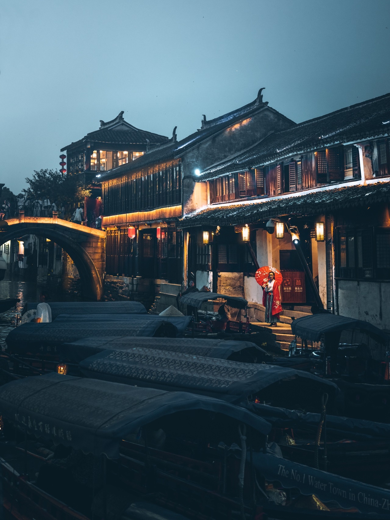 “水乡小巷多,人家尽枕河。”周庄,因水而有鲜活的生命。在这里,全镇依河成街,过街骑楼,潺潺流水与两岸的临河水阁完美地结合在一起。船桨吱呀,小桥流水,充满诗情画意。