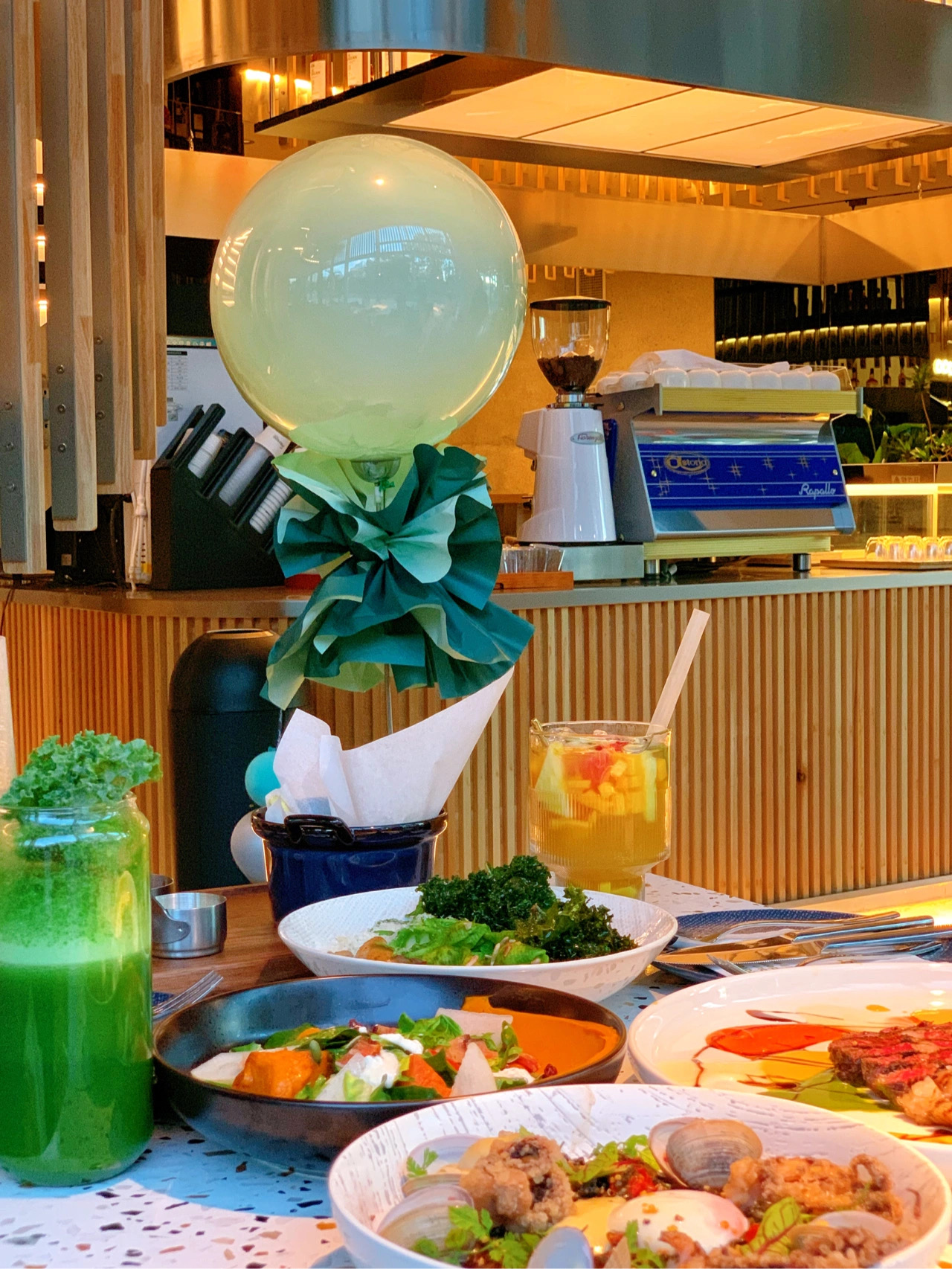 他家一共有三层,一进店就看到很醒目的旋转楼梯,还有一个超大的展示酒架,很有格调!店内还有很多绿色植物🌳拍照也太好看了吧~