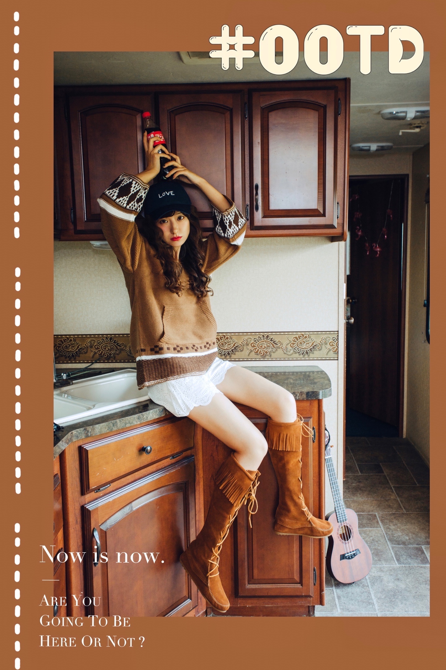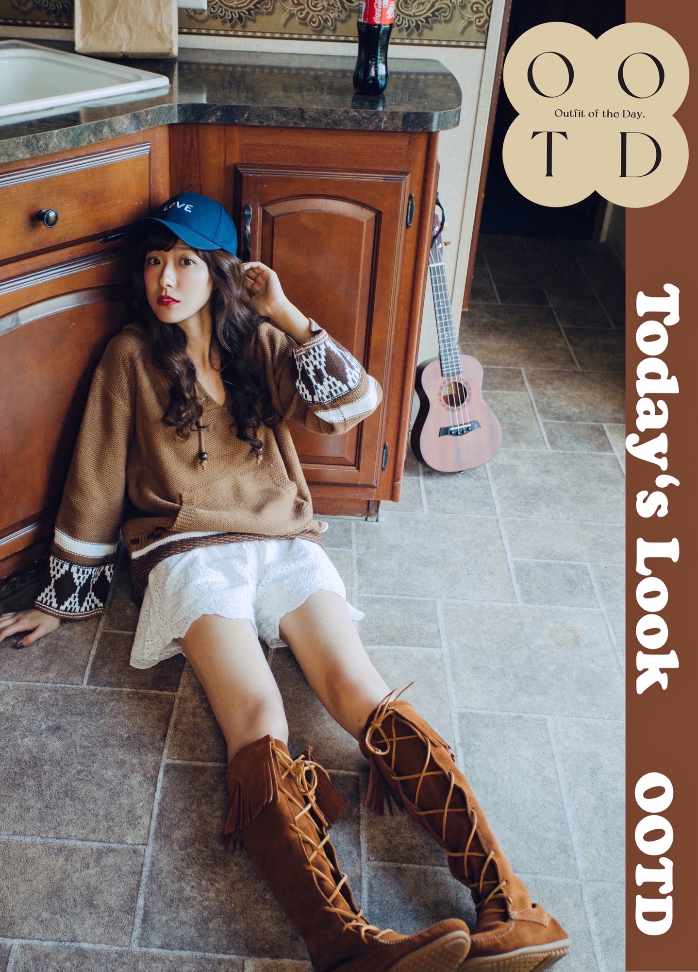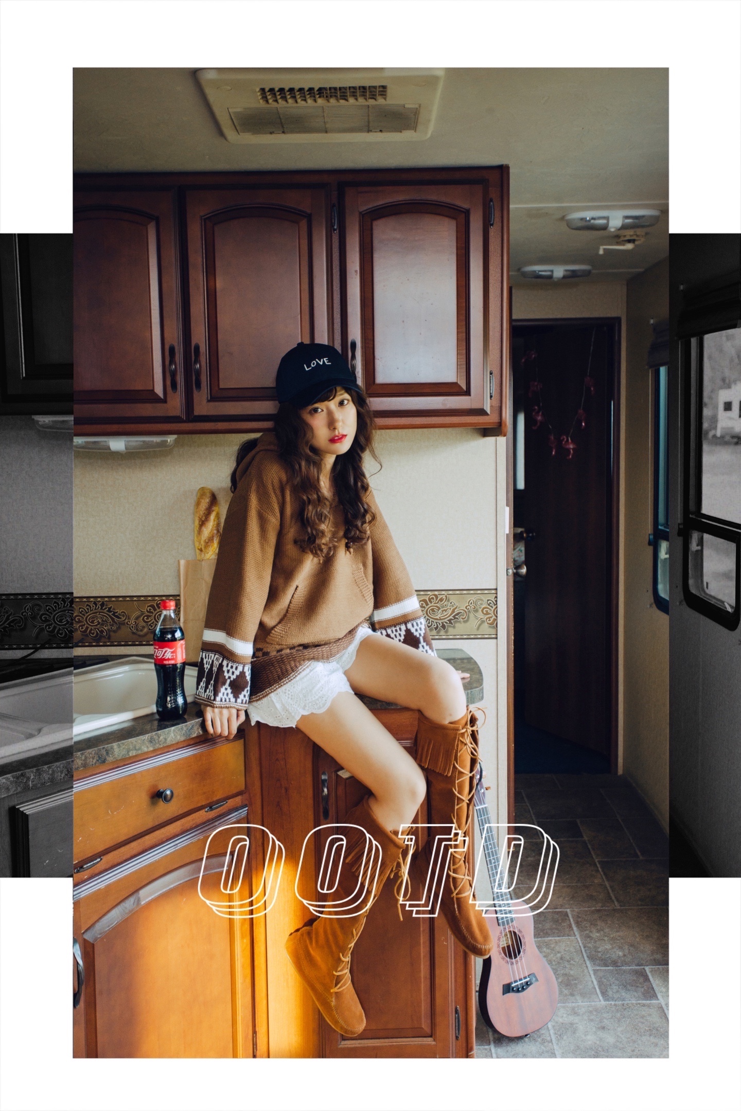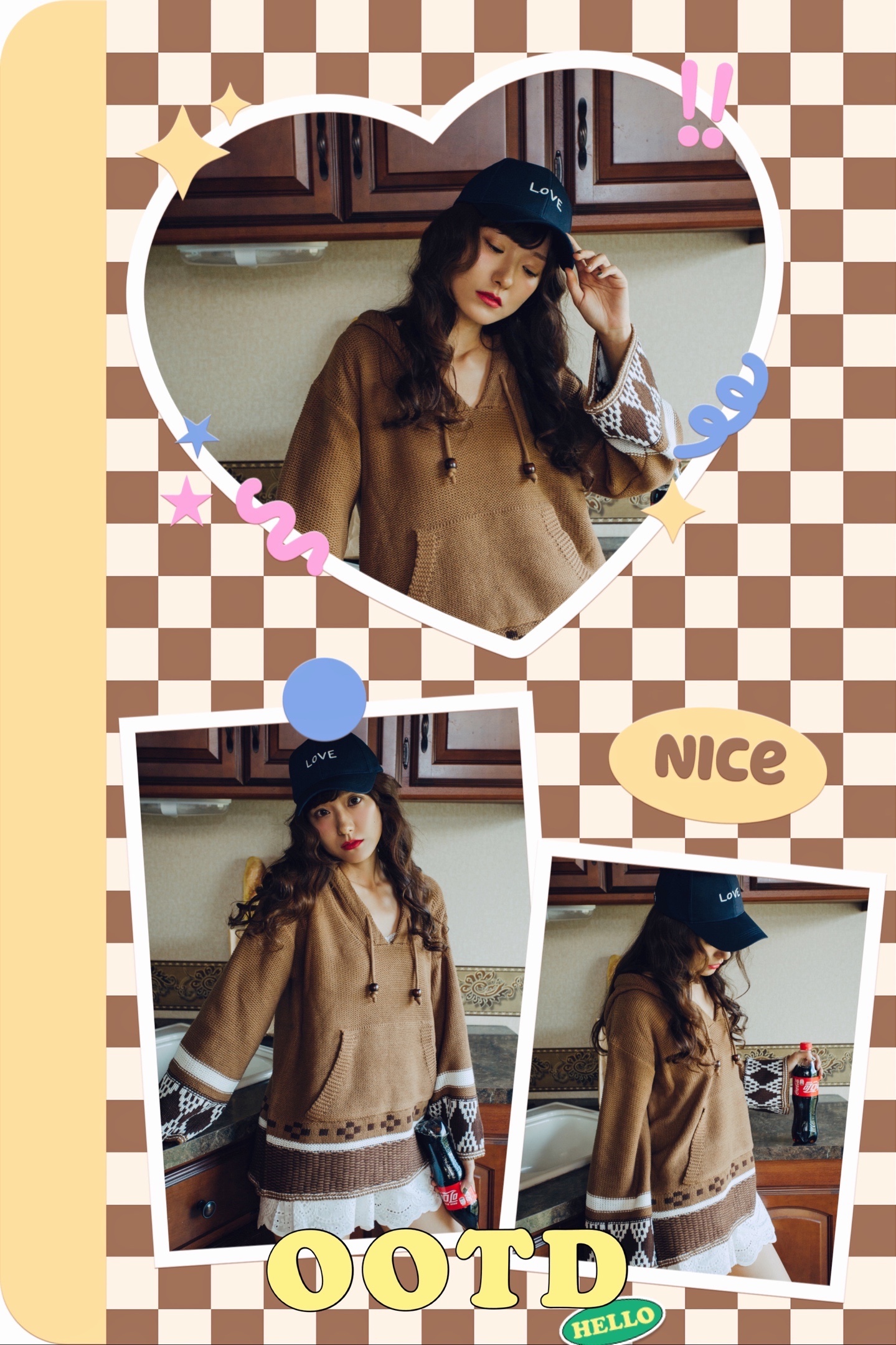 棕色针织毛衣➕棒球帽,再搭配短裤超显腿长哦!妥妥的美式复古feel。