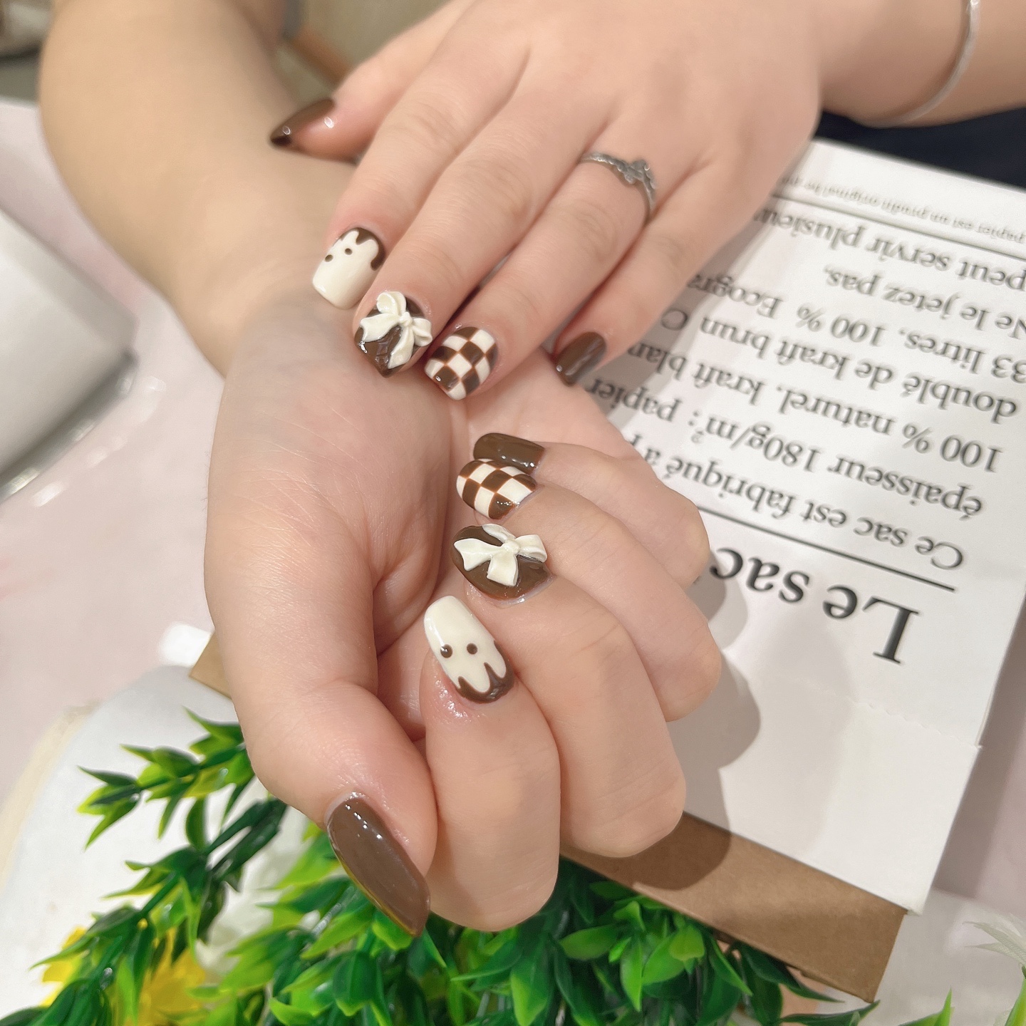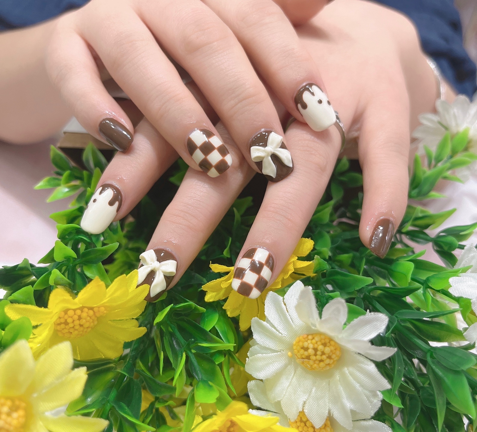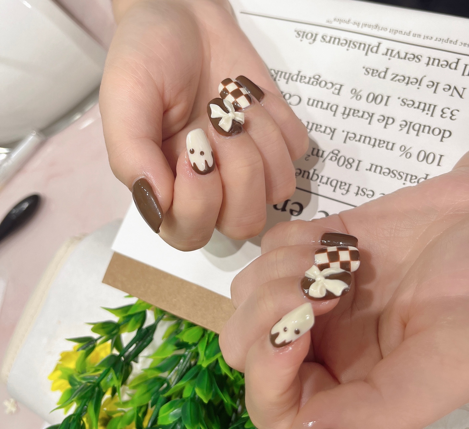 巧克力色棋盘格,秋冬天百搭美甲💅🏻