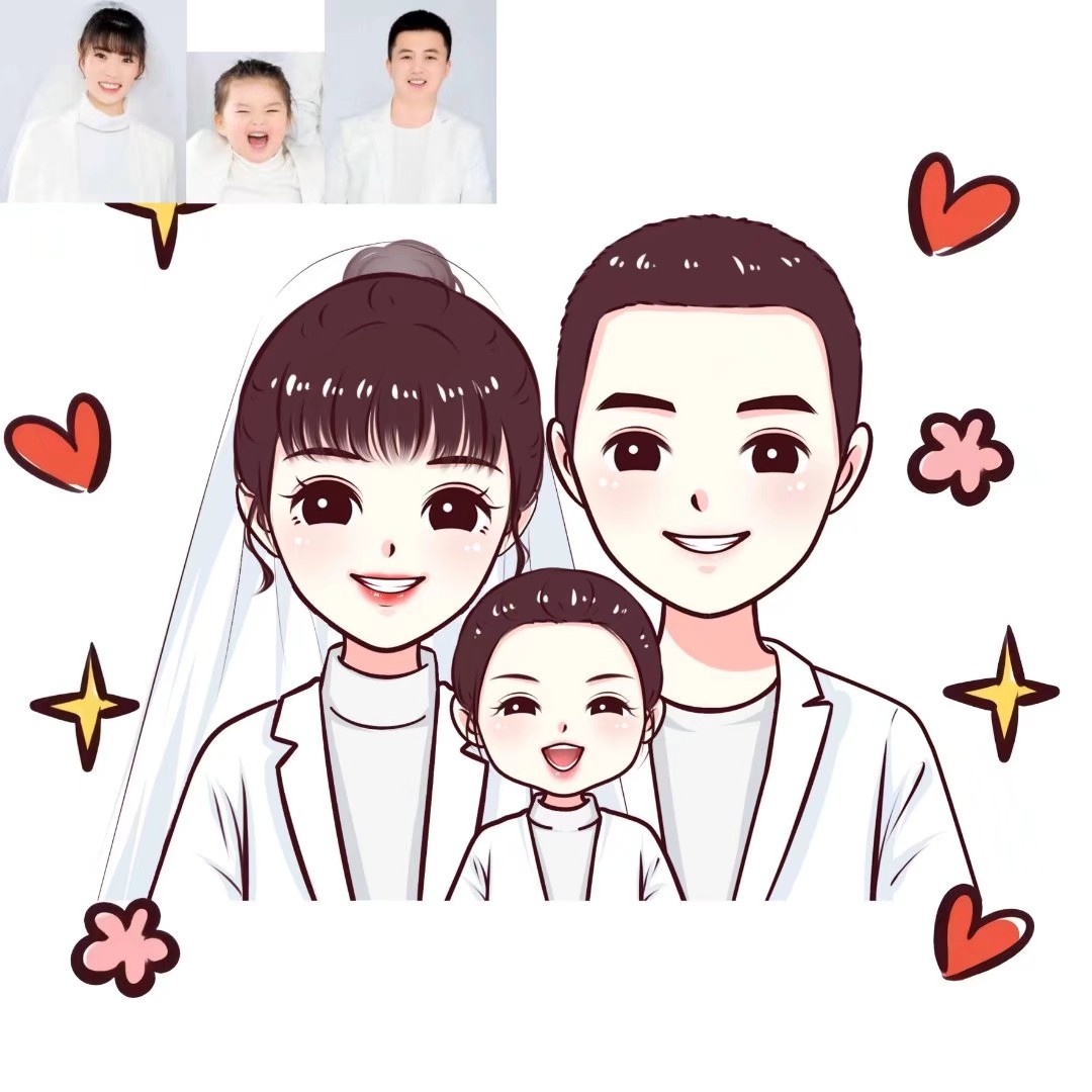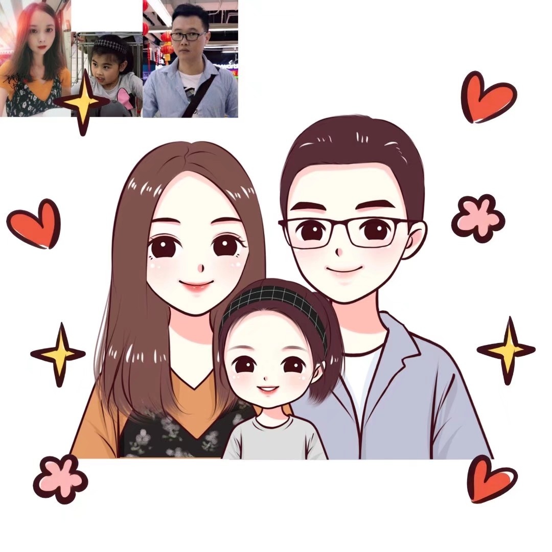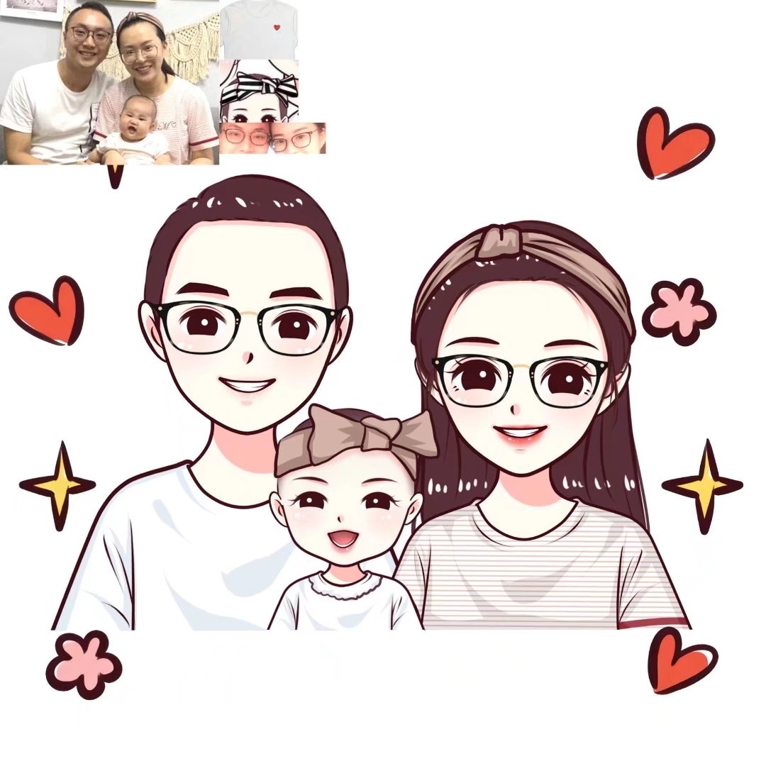 🌻超可爱一家三口手绘卡通头像|你发照片我来画