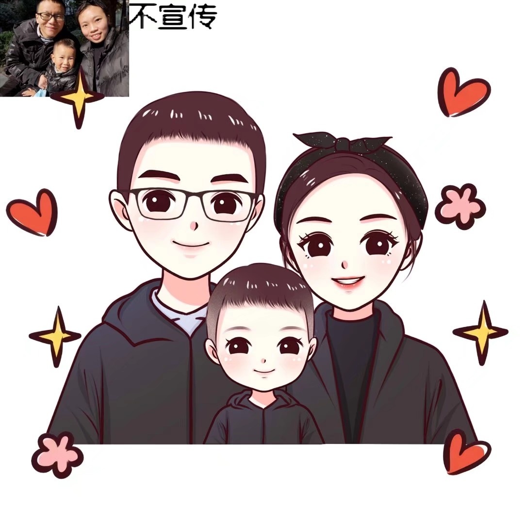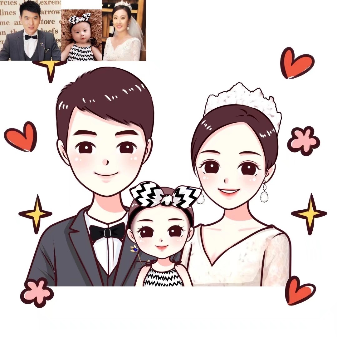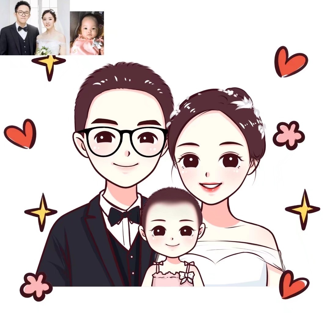 🌻超可爱一家三口手绘卡通头像|你发照片我来画
