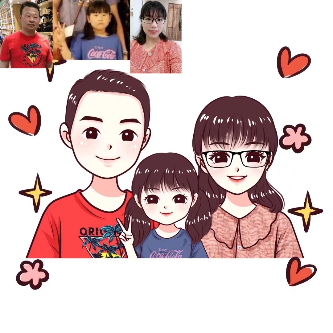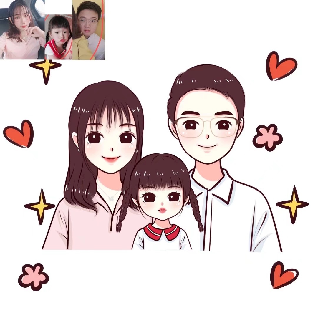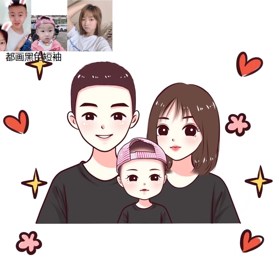 🌻超可爱的一家三口手绘卡通头像|你发照片我来画