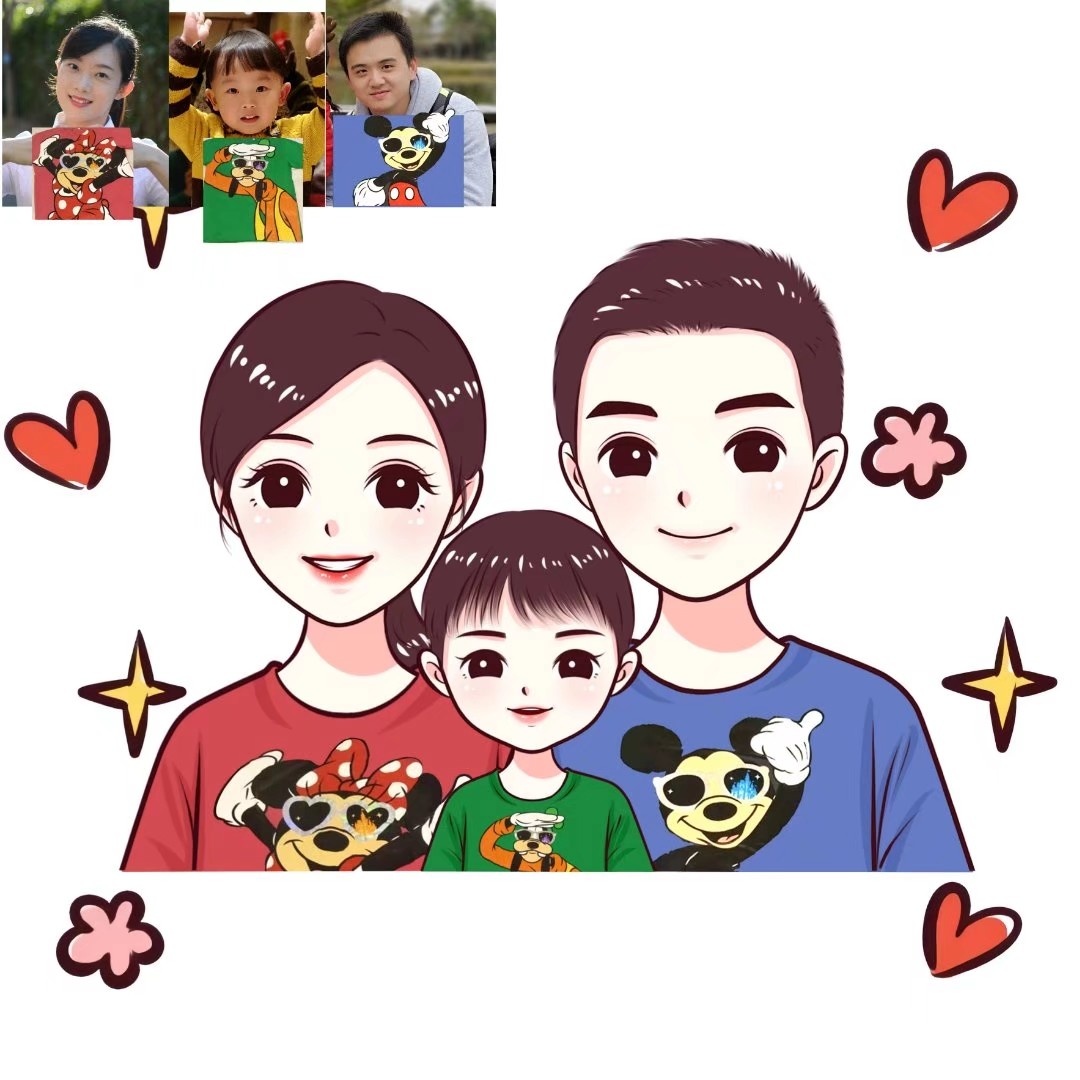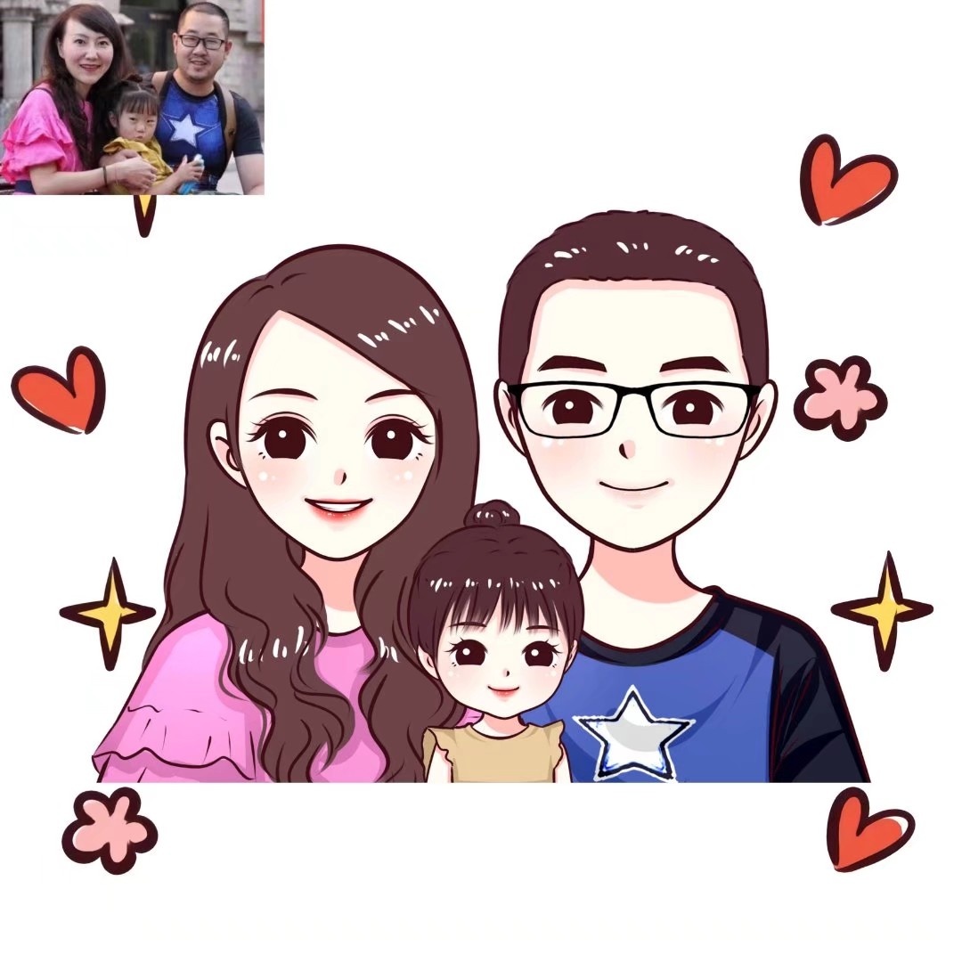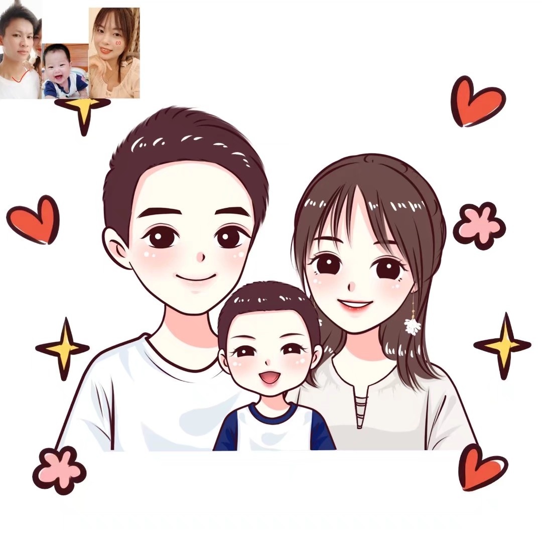 🌻超可爱的一家三口手绘卡通头像|你发照片我来画